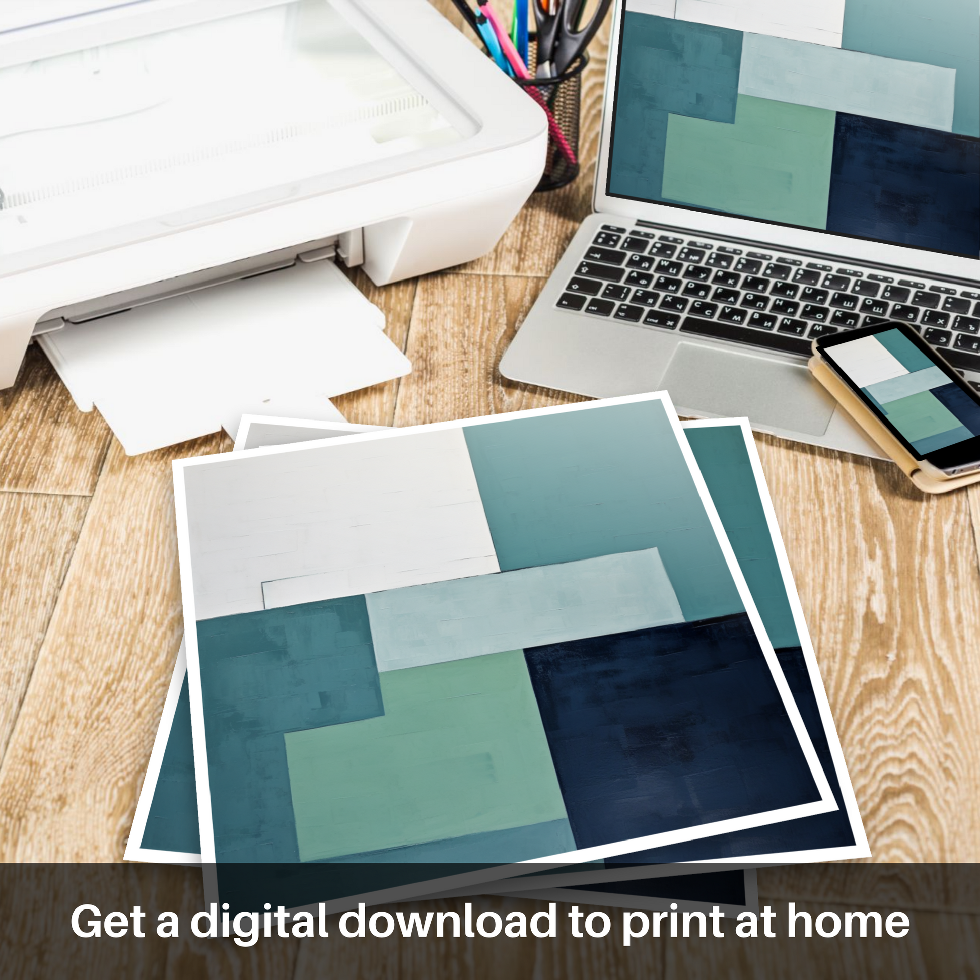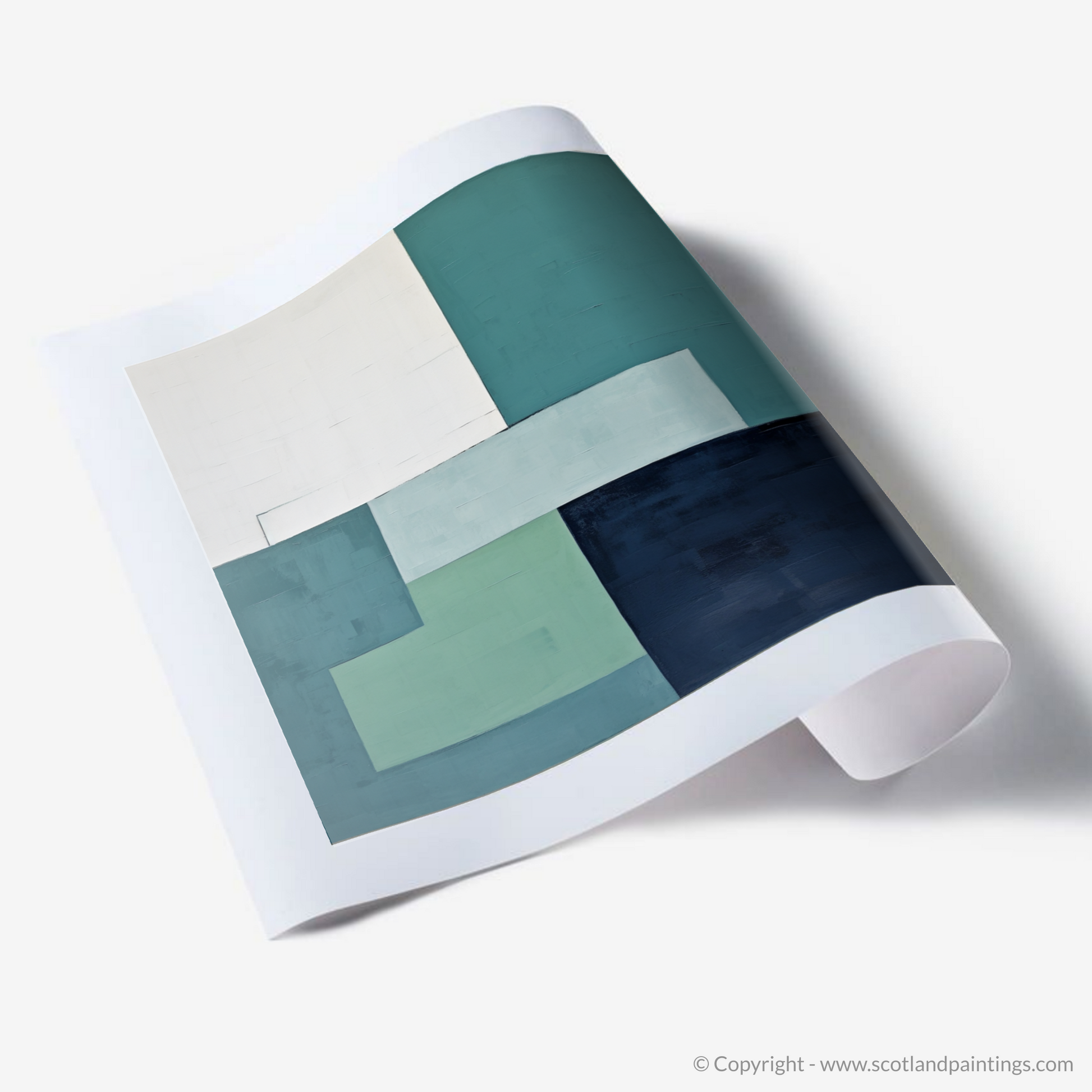 Envision the serene and untouched landscapes of Shetland, captured in a harmonious symphony of colour and form. This evocative print invites contemplation, its minimalist aesthetic offering a tranquil reinterpretation of the rugged, natural beauty that typifies the archipelago. Tranquil blocks of muted greens and blues blend seamlessly across the canvas, reflecting the vastness of the Shetland skies and seas.