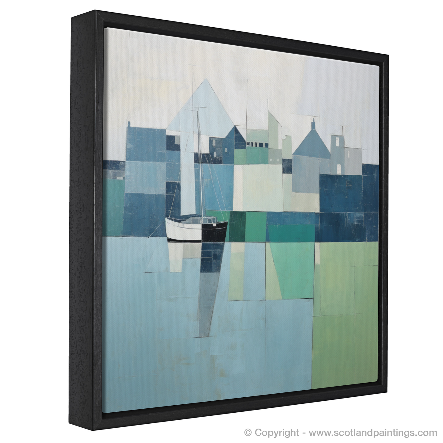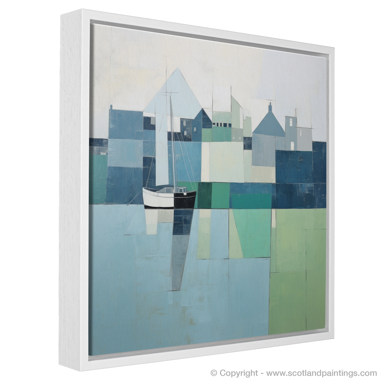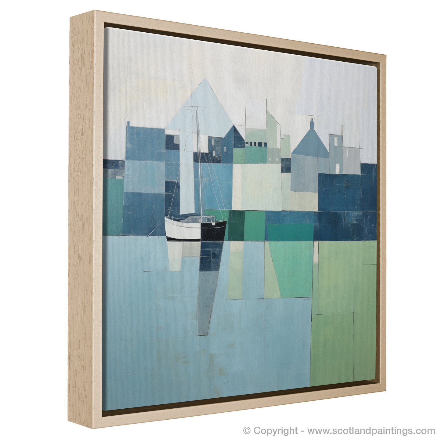 Step into serenity with the evocative hues and geometric abstraction captured in this tranquil harbourside scene. This minimalistic portrayal of Kirkwall Harbour invites the viewer to experience the essence of a coastal landscape stripped down to its purest form. A symphony of soft blues, greens, and neutral tones converge to create a soothing palette that reflects the calmness of the sea and sky, balanced by the structured shapes that hint at the harbour’s architecture.