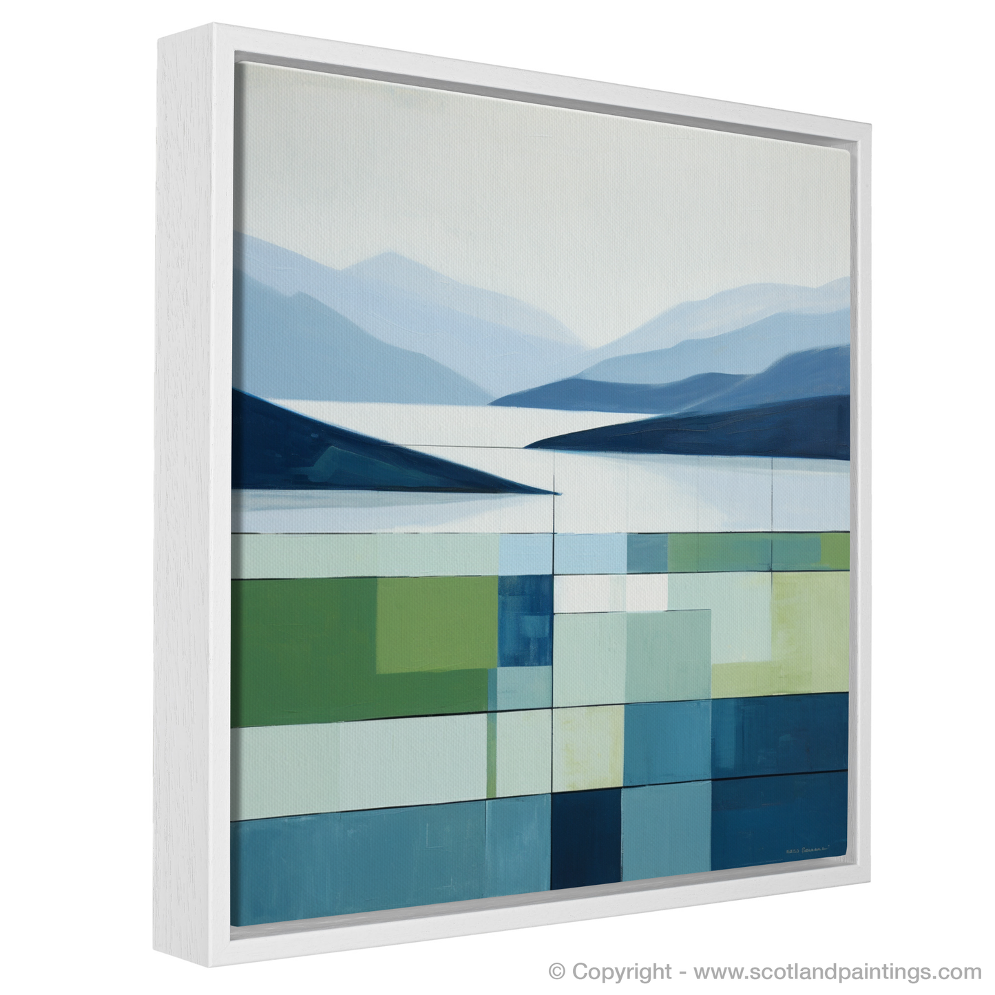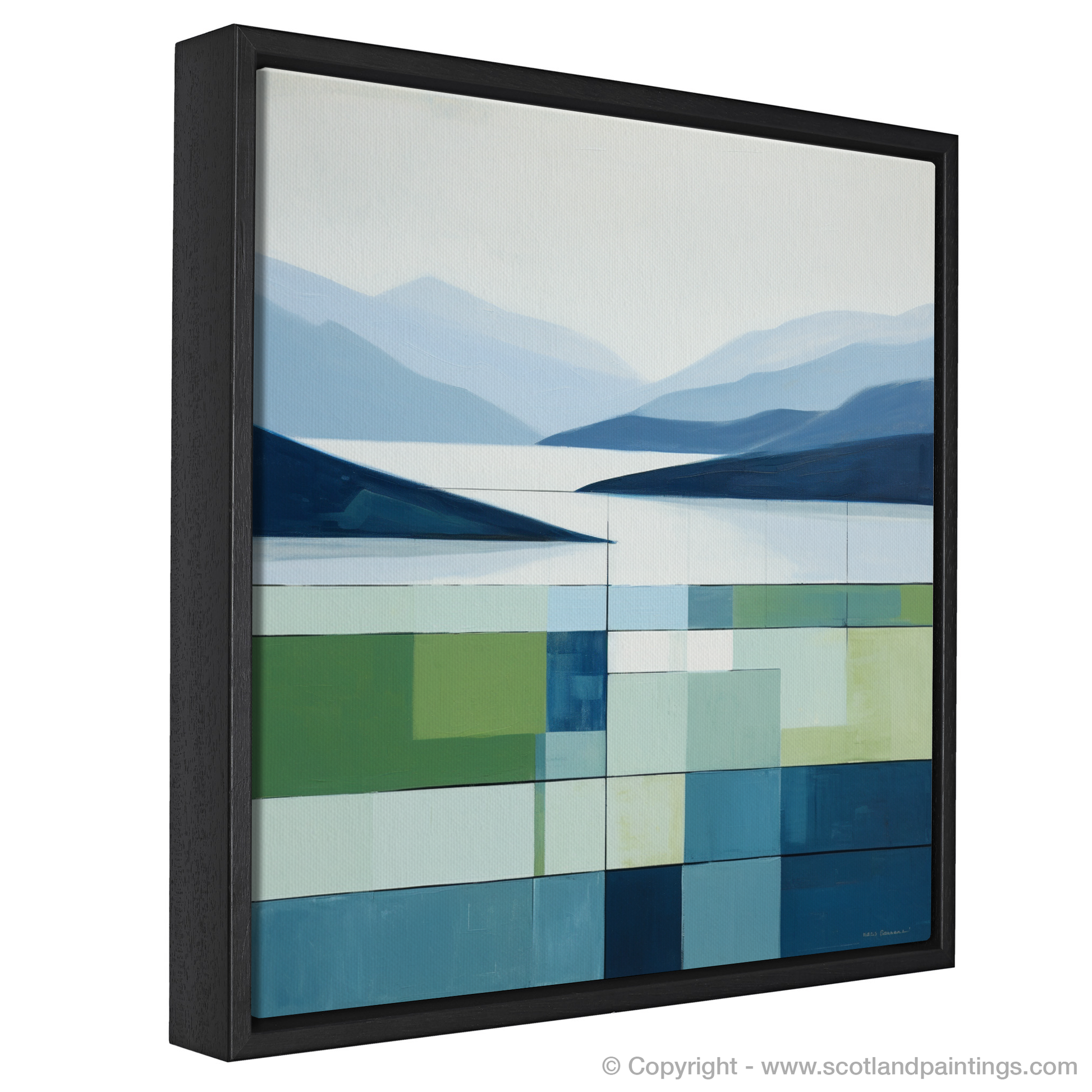 Against the backdrop of serenity, this evocative print captures the ethereal beauty of Loch Awe in Argyll and Bute during the balmier days of summer. Employing a minimalist aesthetic, the artwork divides the landscape into a harmonious array of geometric segments, each piece a testament to the enchanting tranquility found in the Scottish Highlands.