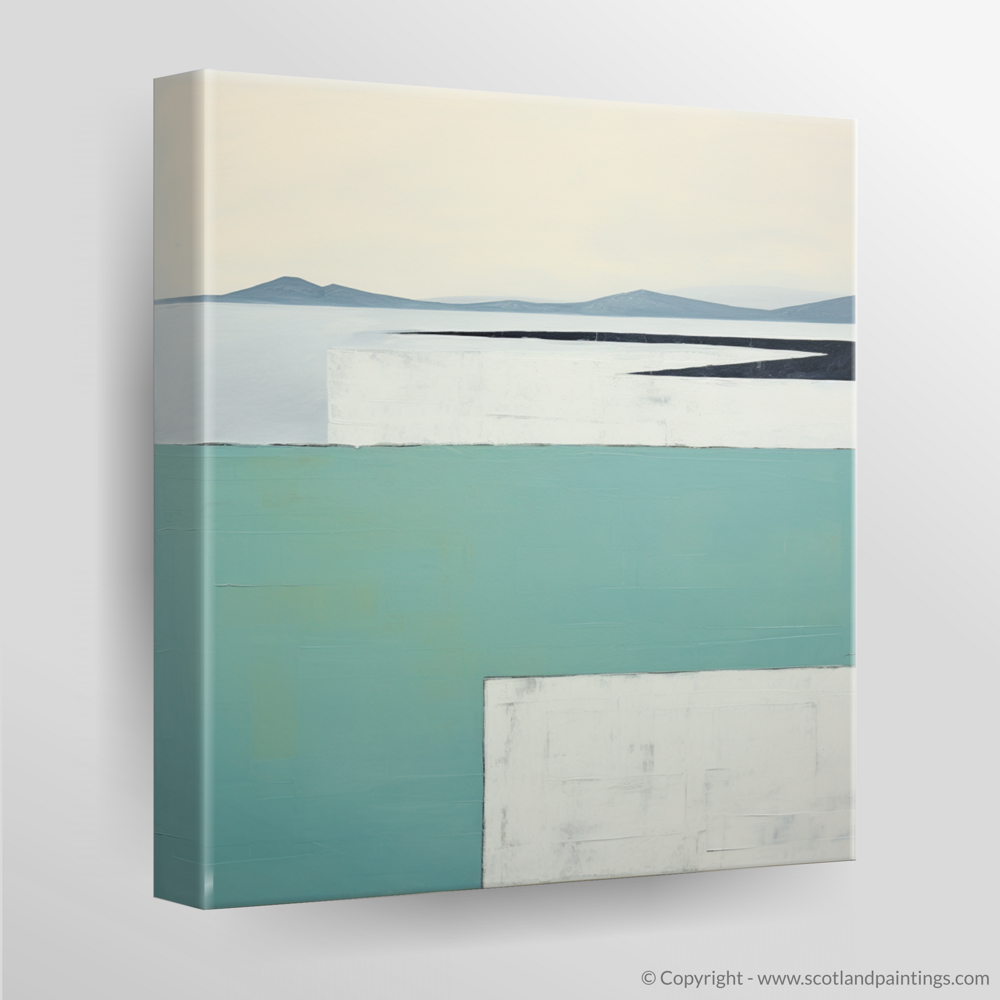 Evocative of the serene and unspoiled landscape of the Isle of Barra, this minimalistic piece captures the soul of the Outer Hebrides in a composition that revels in simplicity and harmony. The tranquillity of the scene is encapsulated through a vision of layered horizontality, inviting contemplation and calm into any space.
