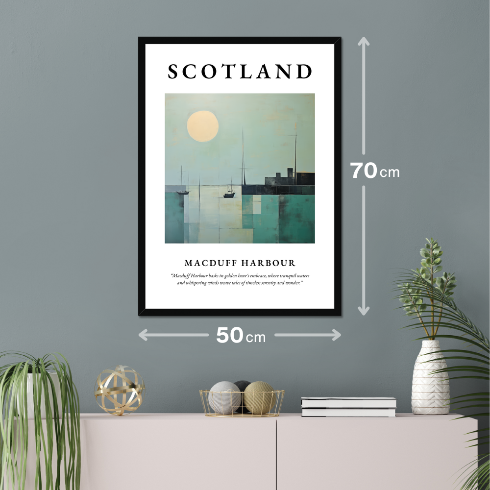 Immerse yourself in the serene beauty of Scotland with this captivating 50cm x 70cm framed poster print, a perfect homage to the timeless charm of Macduff Harbour. Available in a choice of black, white, or natural wood-effect frames, this piece is designed to suit any decor, whether you have a modern or classic style.