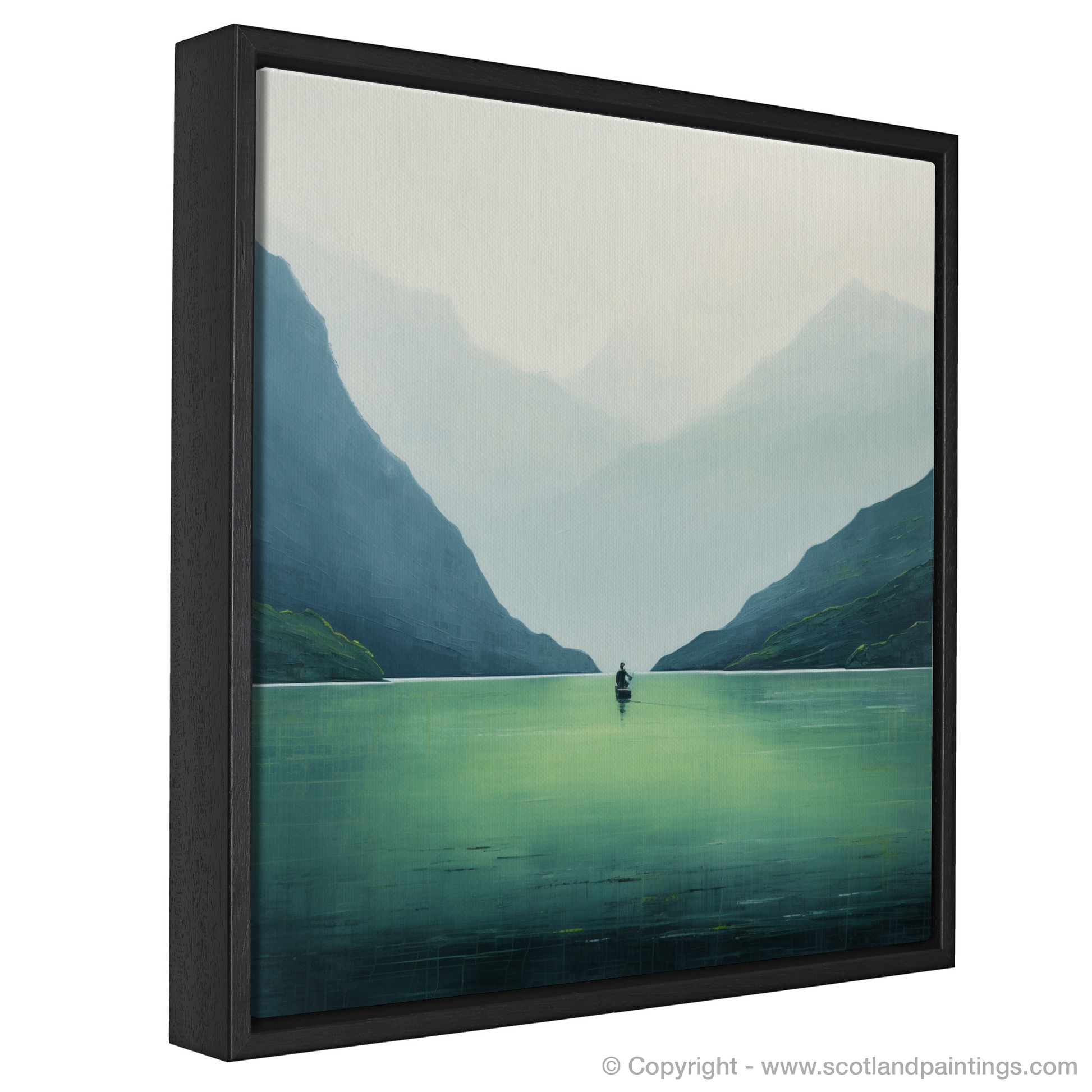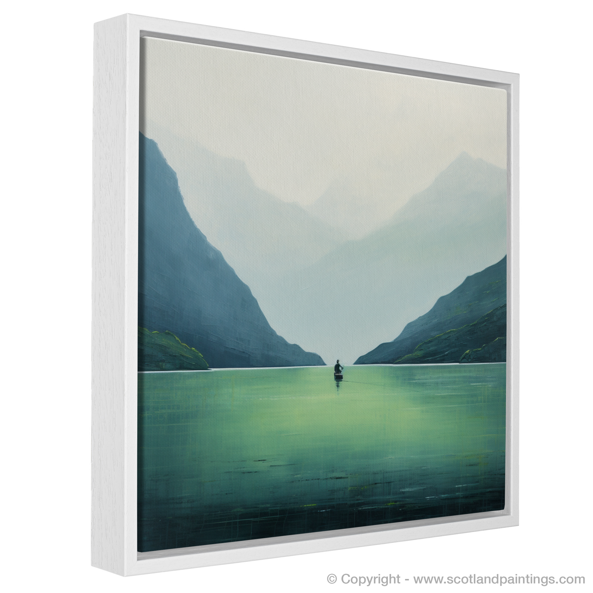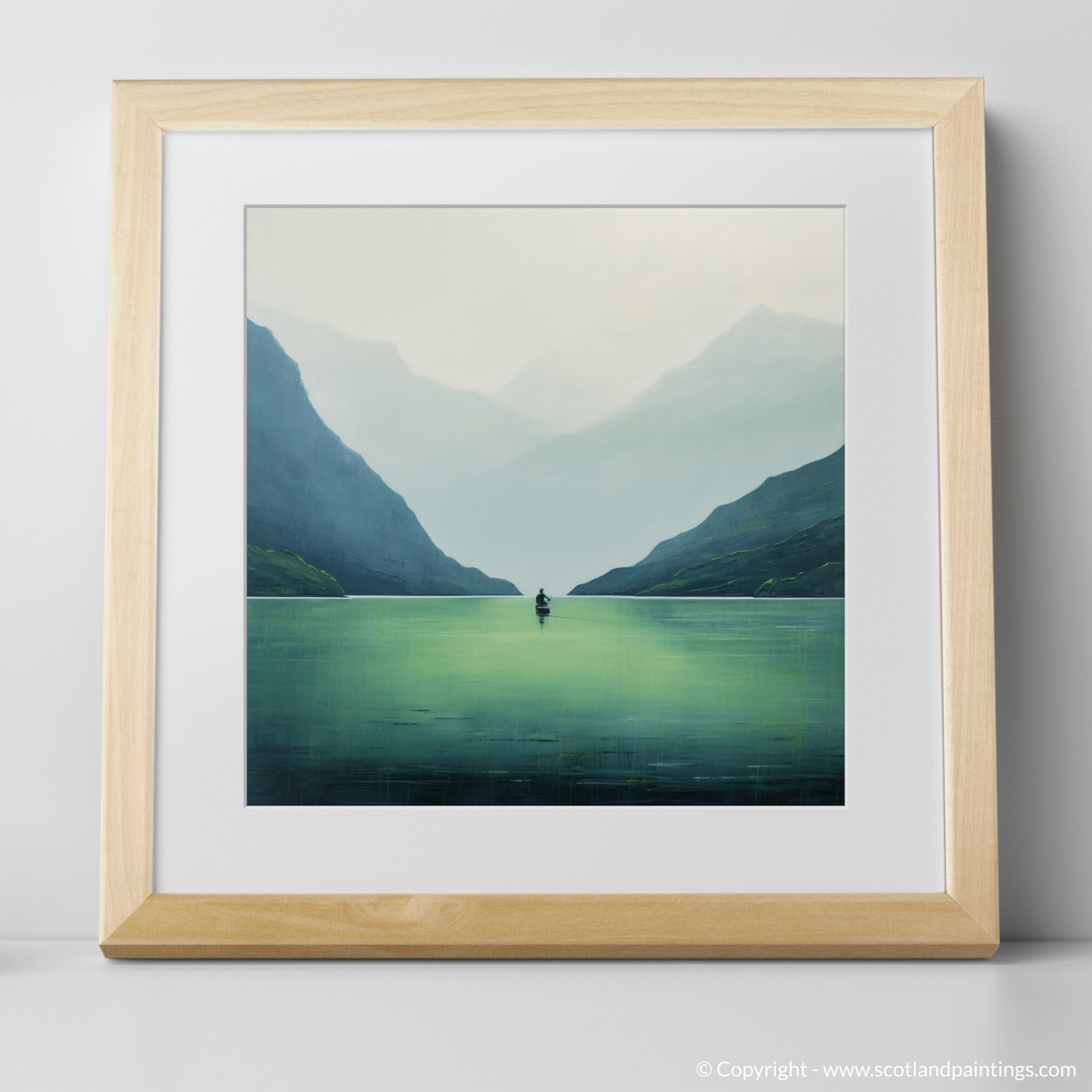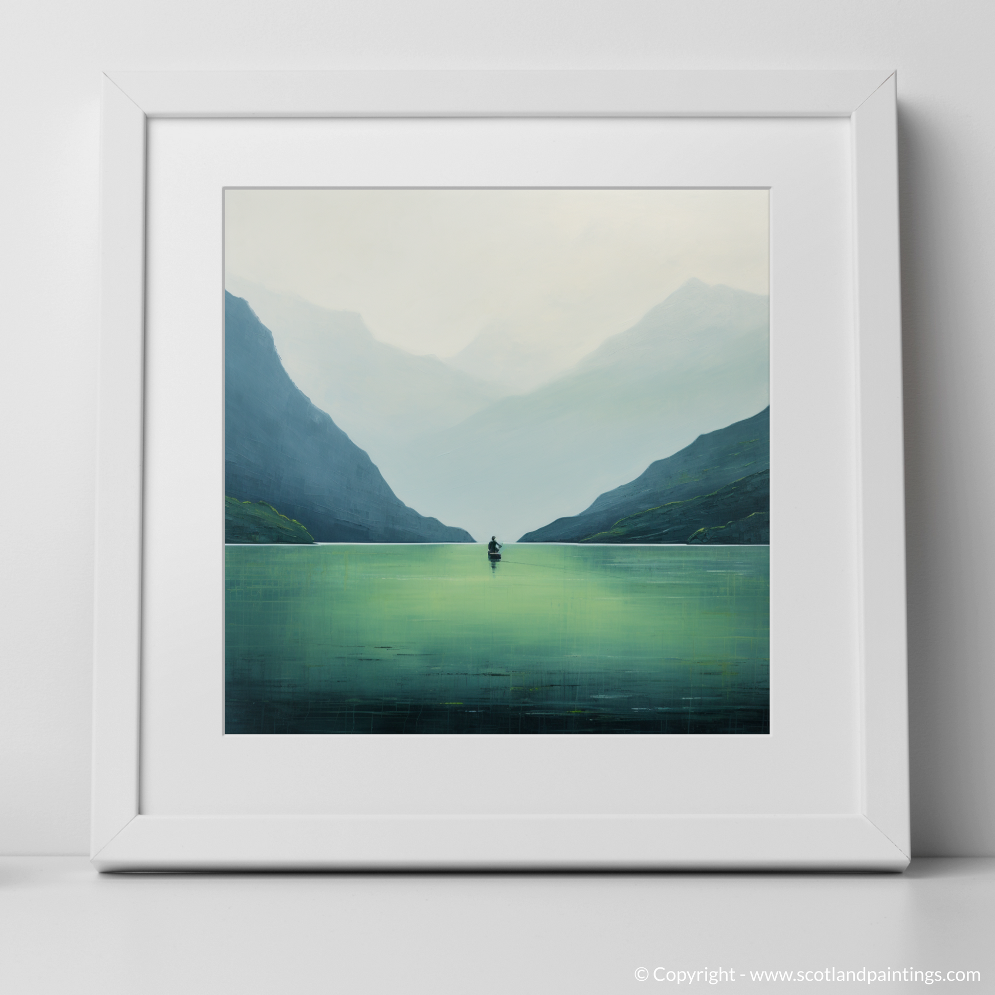 Immerse yourself in the serene symphony of nature with this evocative print. Capturing a moment of tranquility, the scene unfolds on the tranquil waters of Loch Arkaig, as a solitary figure engages in the contemplative pastime of fly fishing. This composition, grounded in the principles of Minimalism, employs a sparing palette to amplify the sense of vastness and simplicity.
