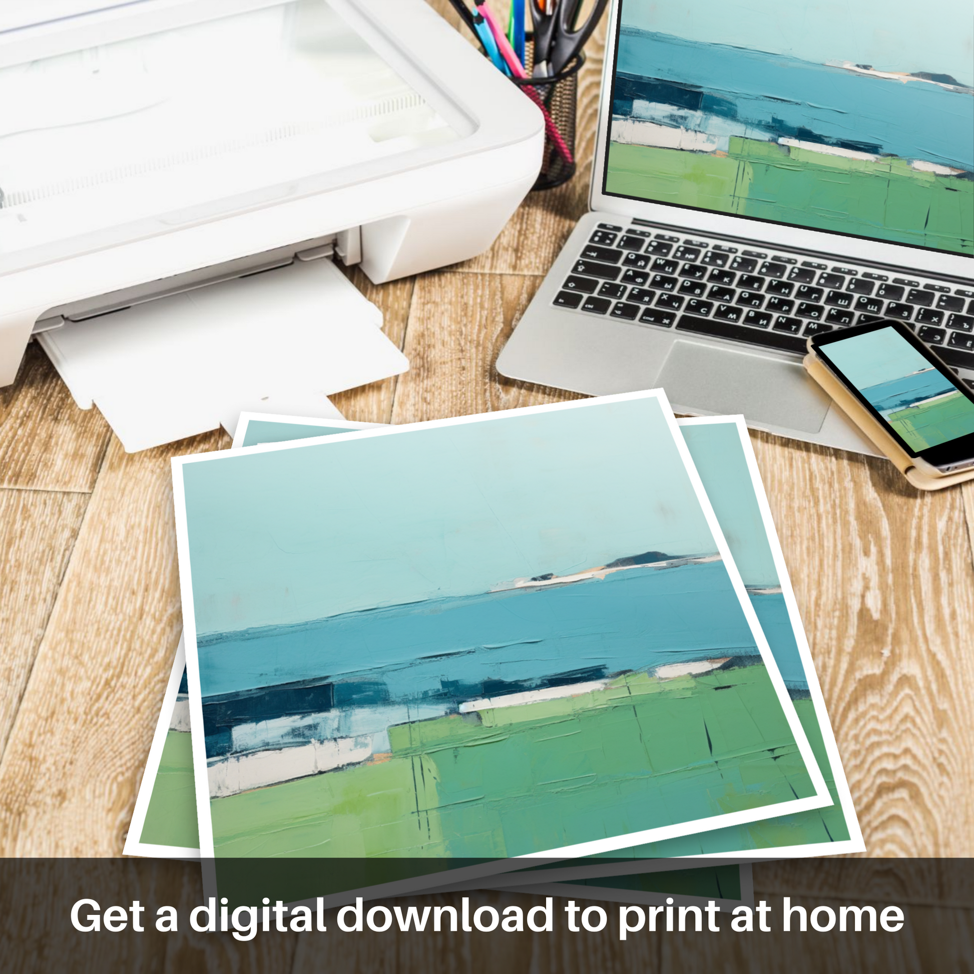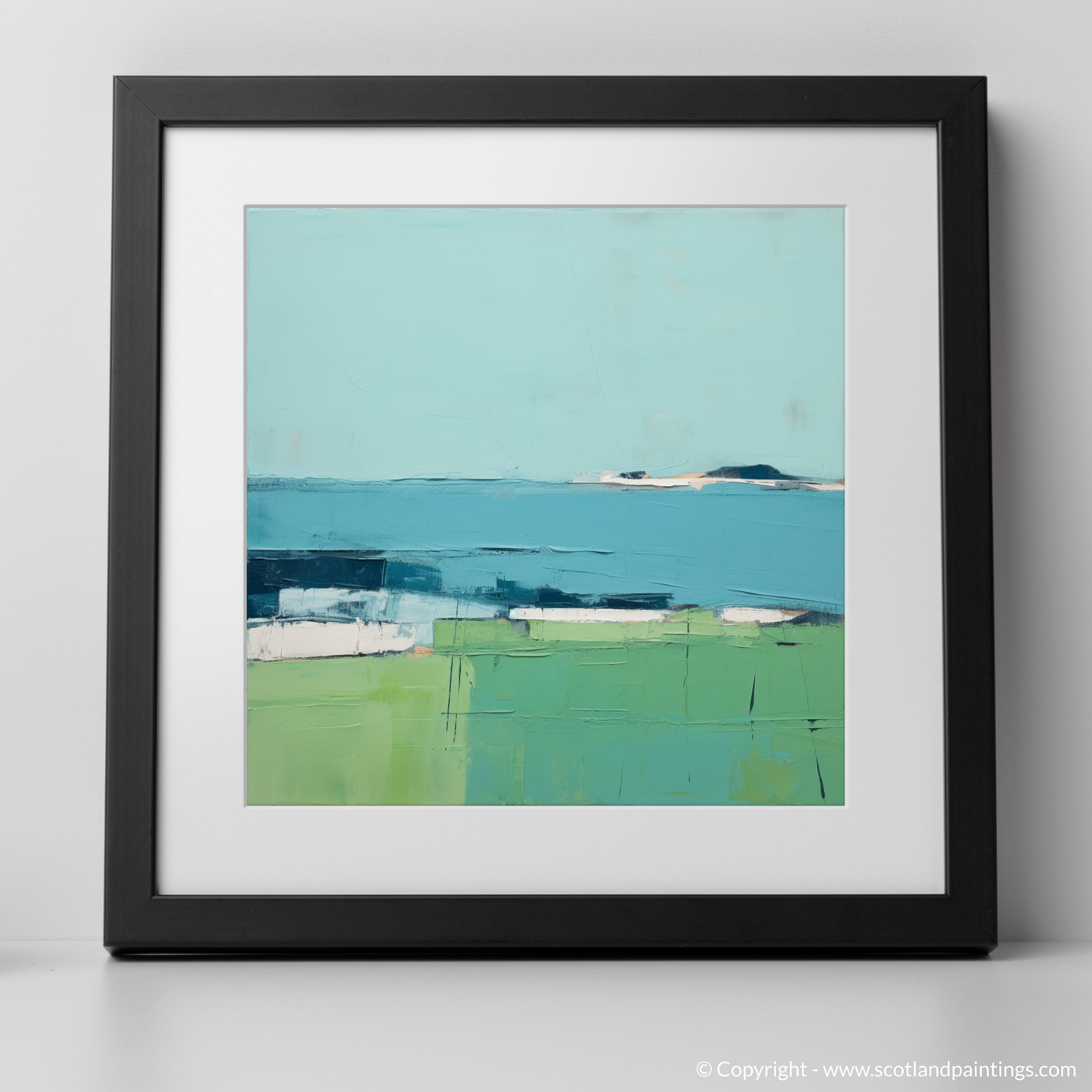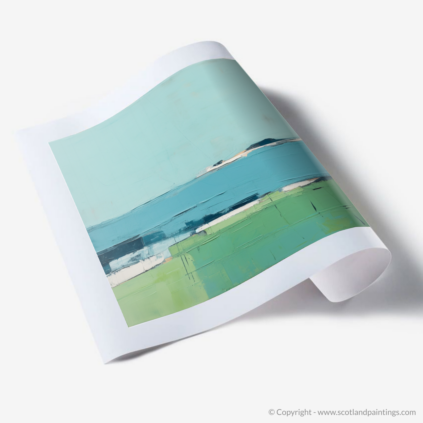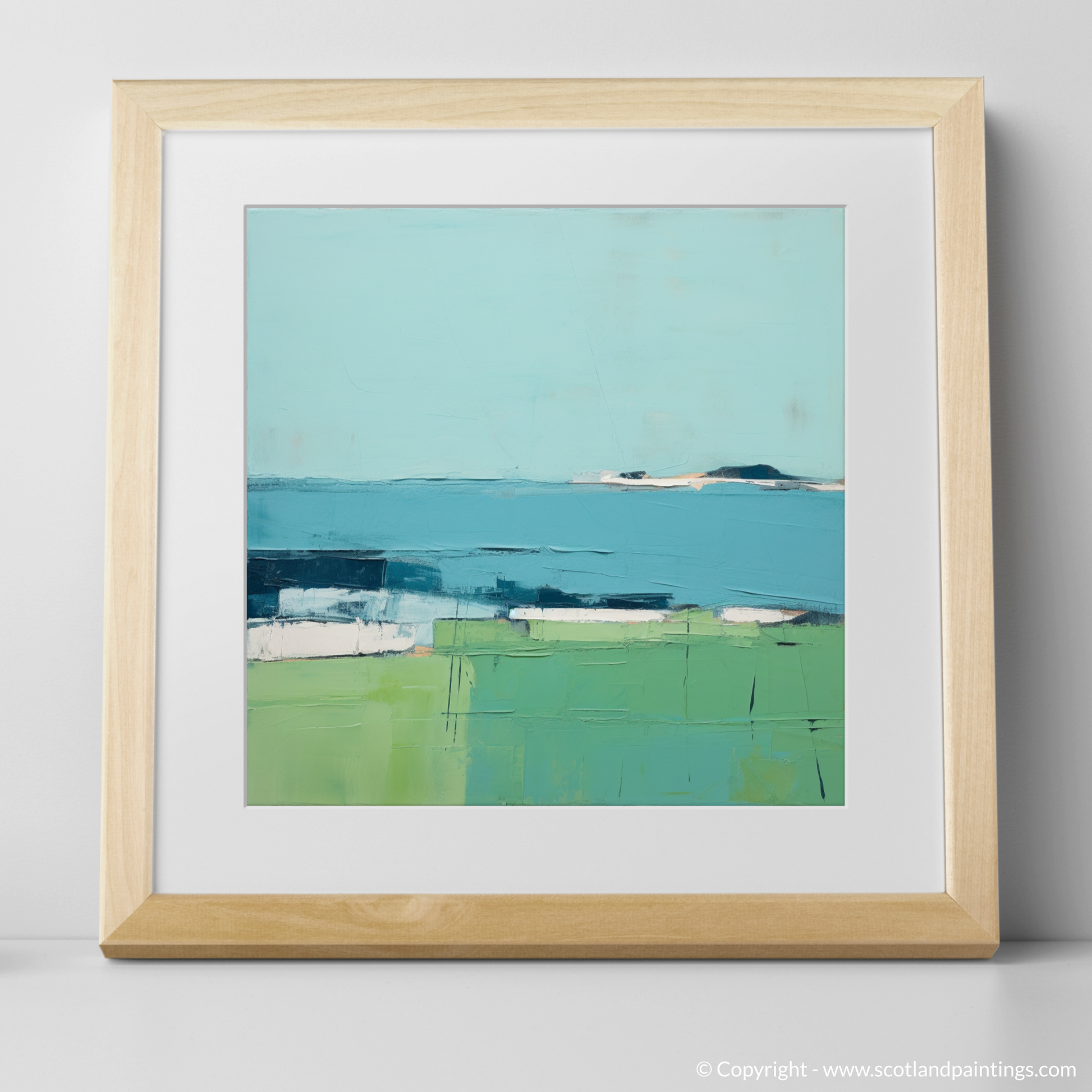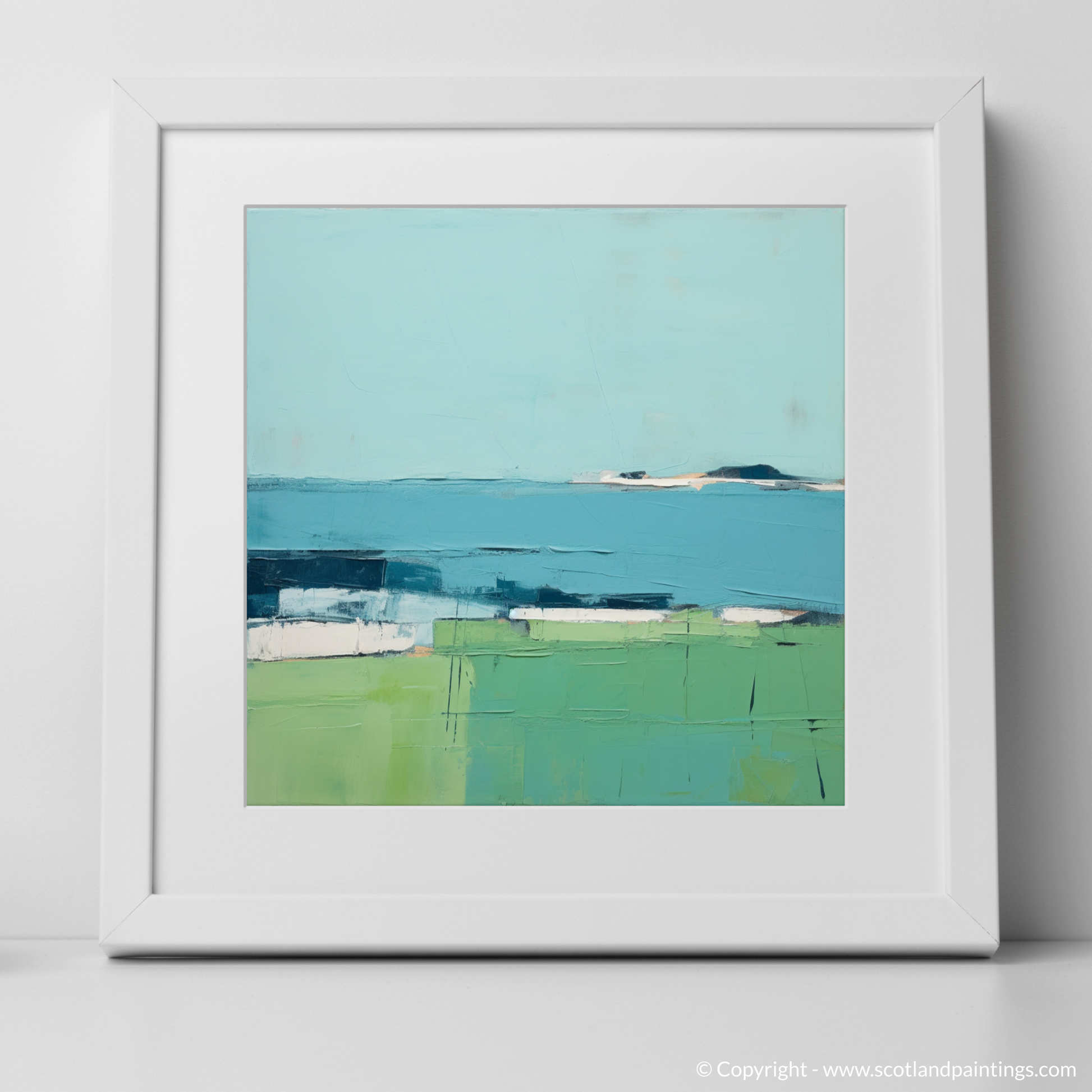 Allow the serene tranquility of the Inner Hebrides to envelop your space with this evocative print inspired by the Isle of Iona. Rendered in a minimalist style, the artwork distills the essence of the landscape into a harmonious composition of colour and form, inviting contemplation and calm.