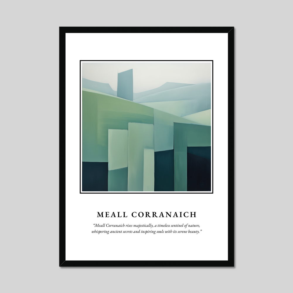 The painting's minimalist interpretation of Meall Corranaich echoes the mountain’s simplicity and silence, inviting viewers to contemplate the essence of nature’s beauty. Whether you’ve trodden its paths before or simply dream of its distant peaks, this framed poster print is a vibrant homage to one of Scotland’s timeless sentinels.