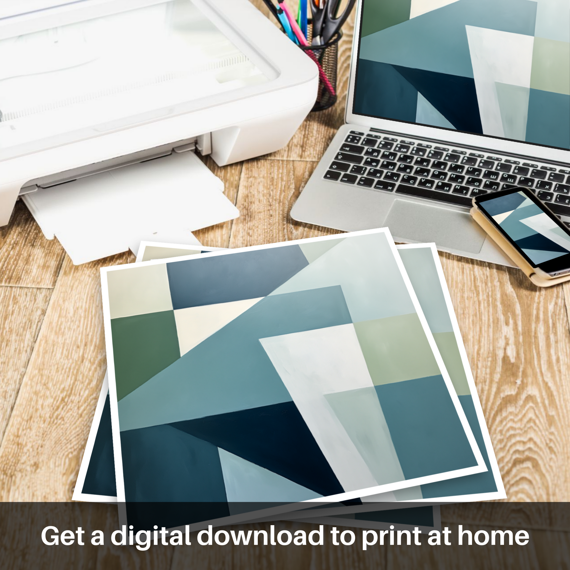 Immerse yourself in the tranquil complexity of this minimalist masterpiece, inspired by the serene landscapes of Glen Moriston. This print embodies the essence of Modern & Minimal, seamlessly blending a harmonious palette with striking geometric abstraction.