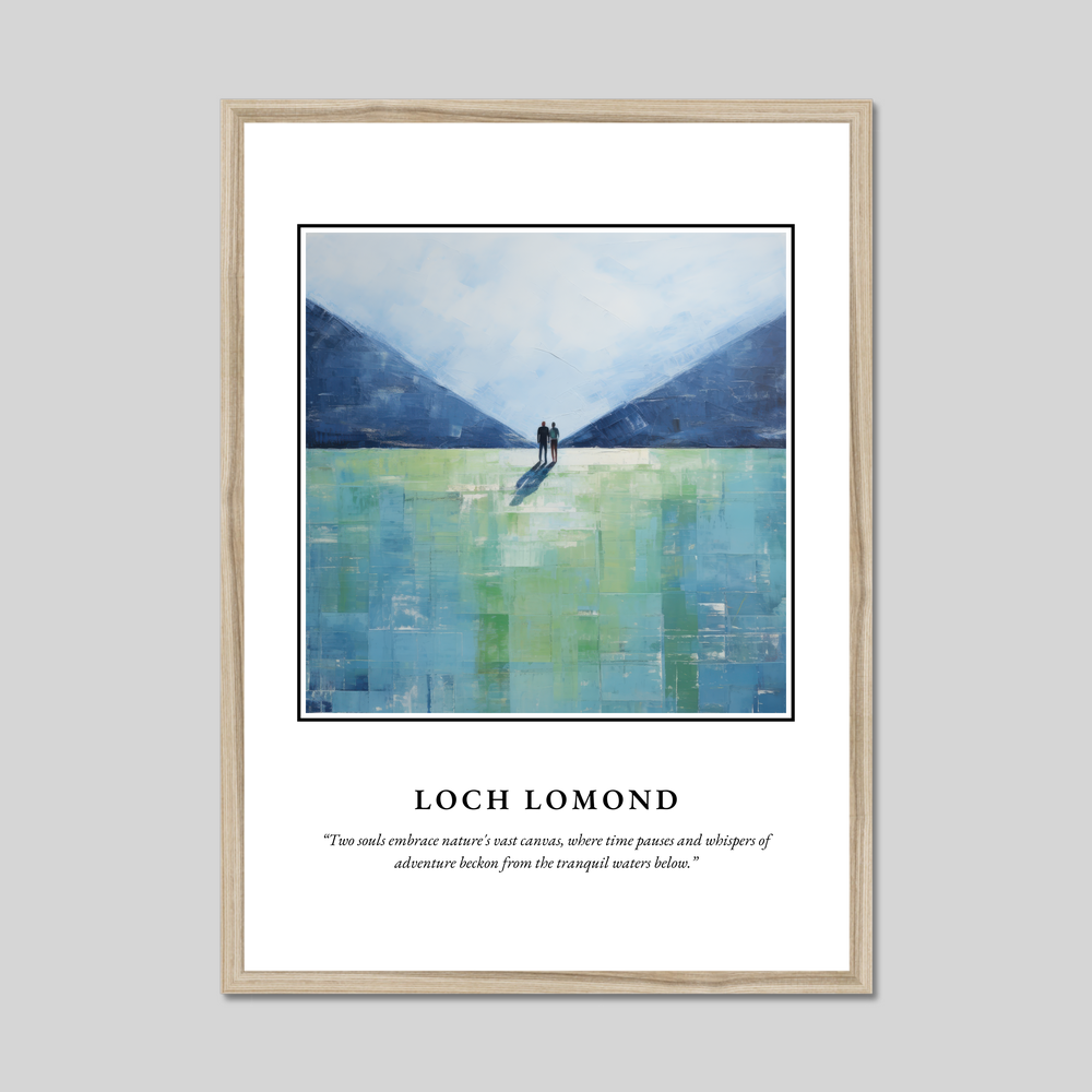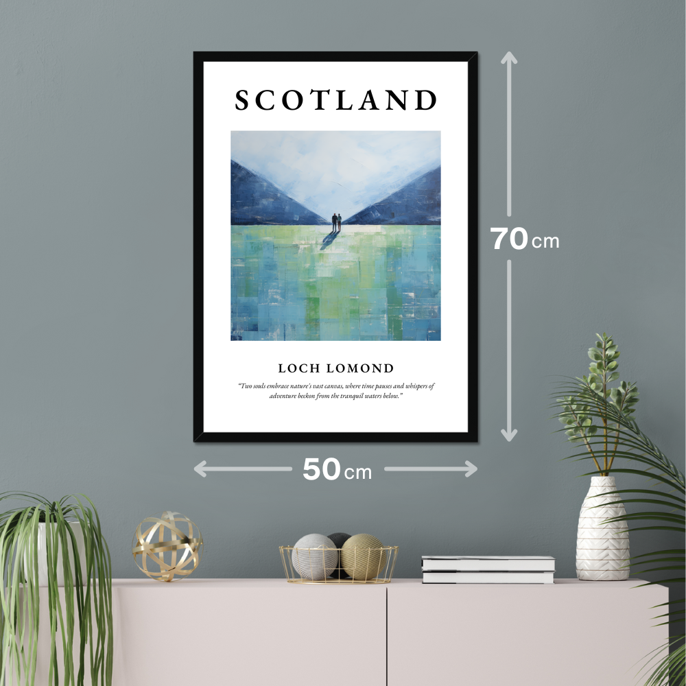 Immerse yourself in the tranquil beauty of Scotland with our captivating framed poster print, featuring a minimalist depiction of Loch Lomond. At an impressive 50cm x 70cm, this striking artwork becomes the centrepiece of any room, offering expansive visual appeal without the hefty price tag.
