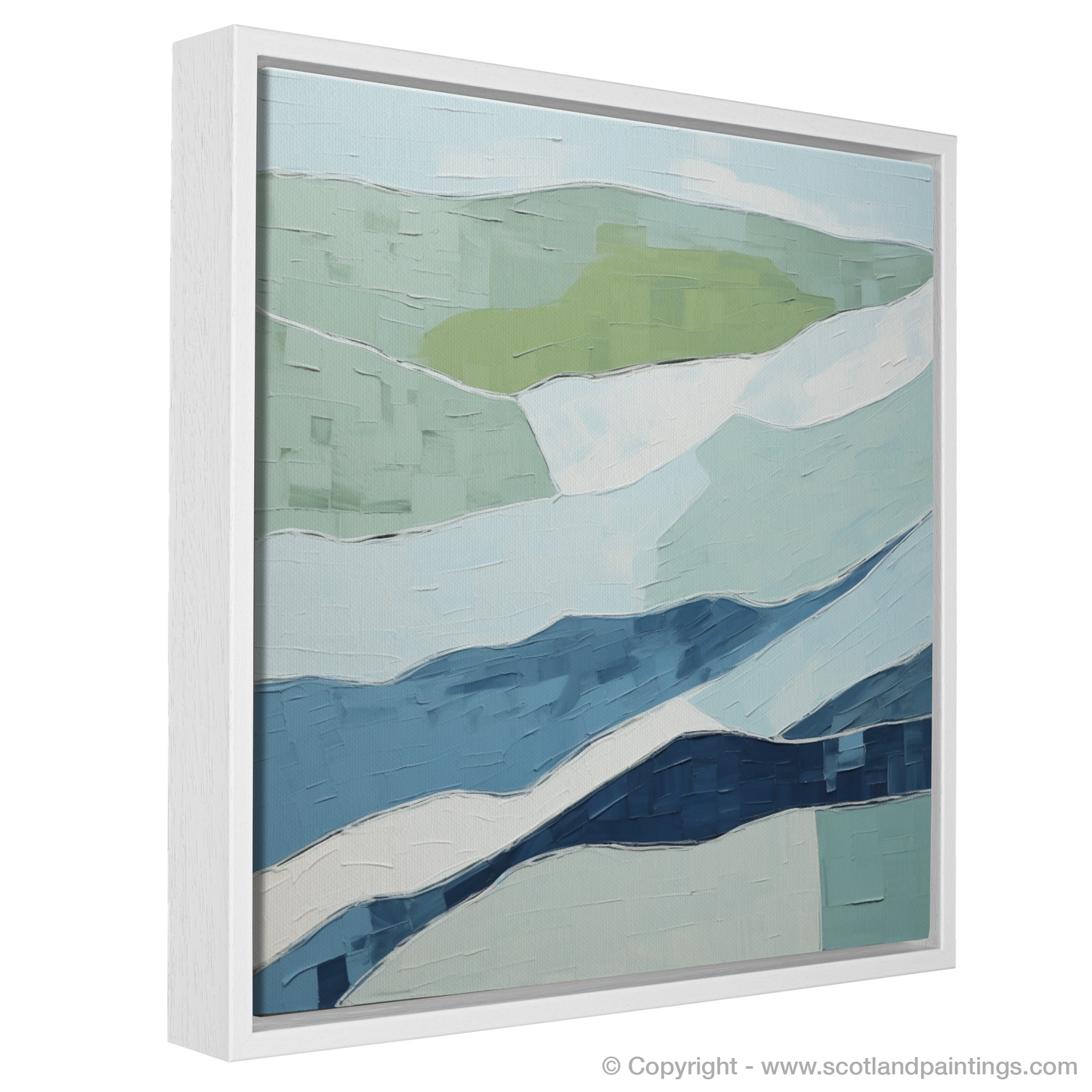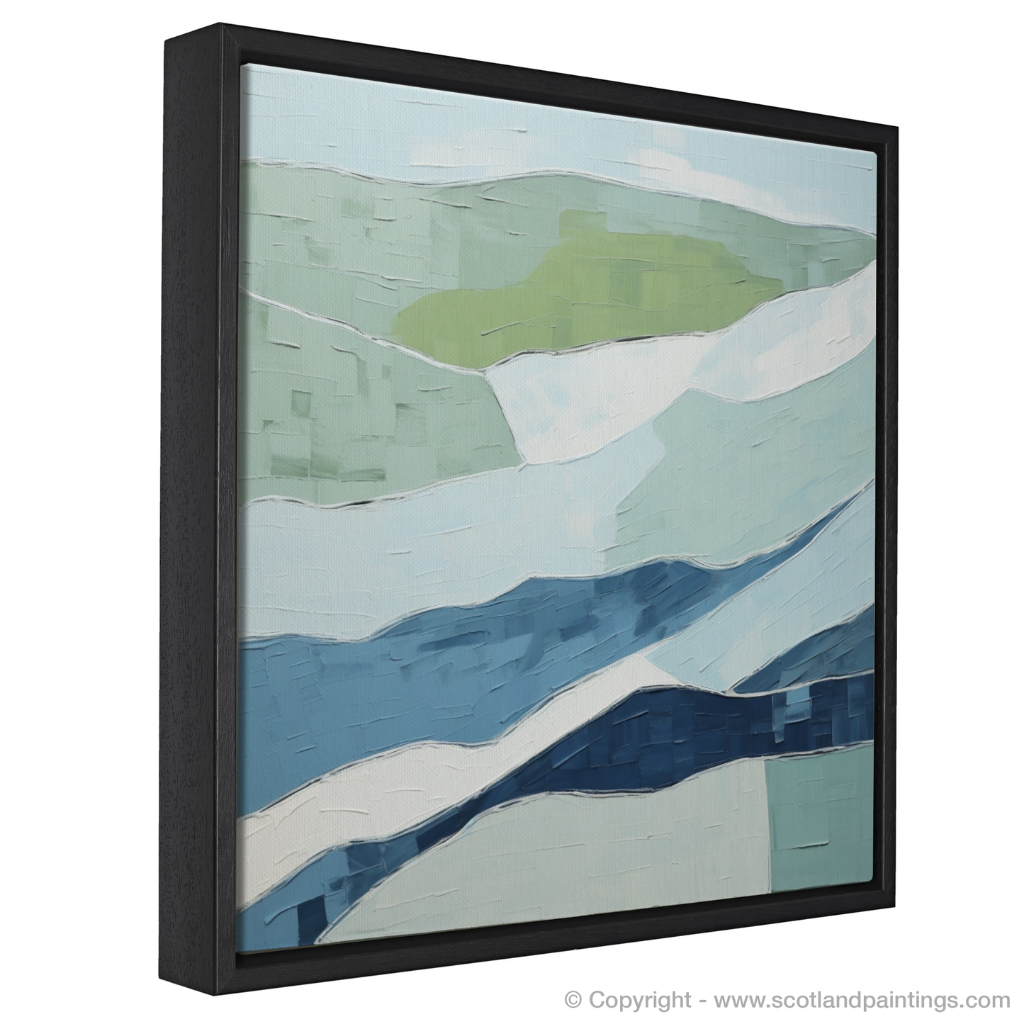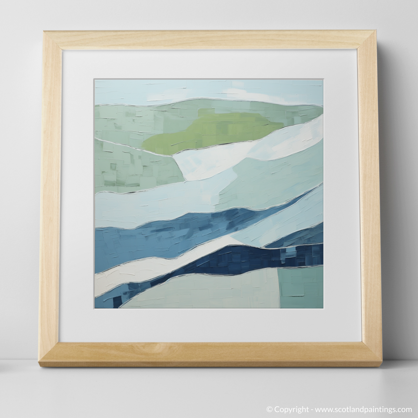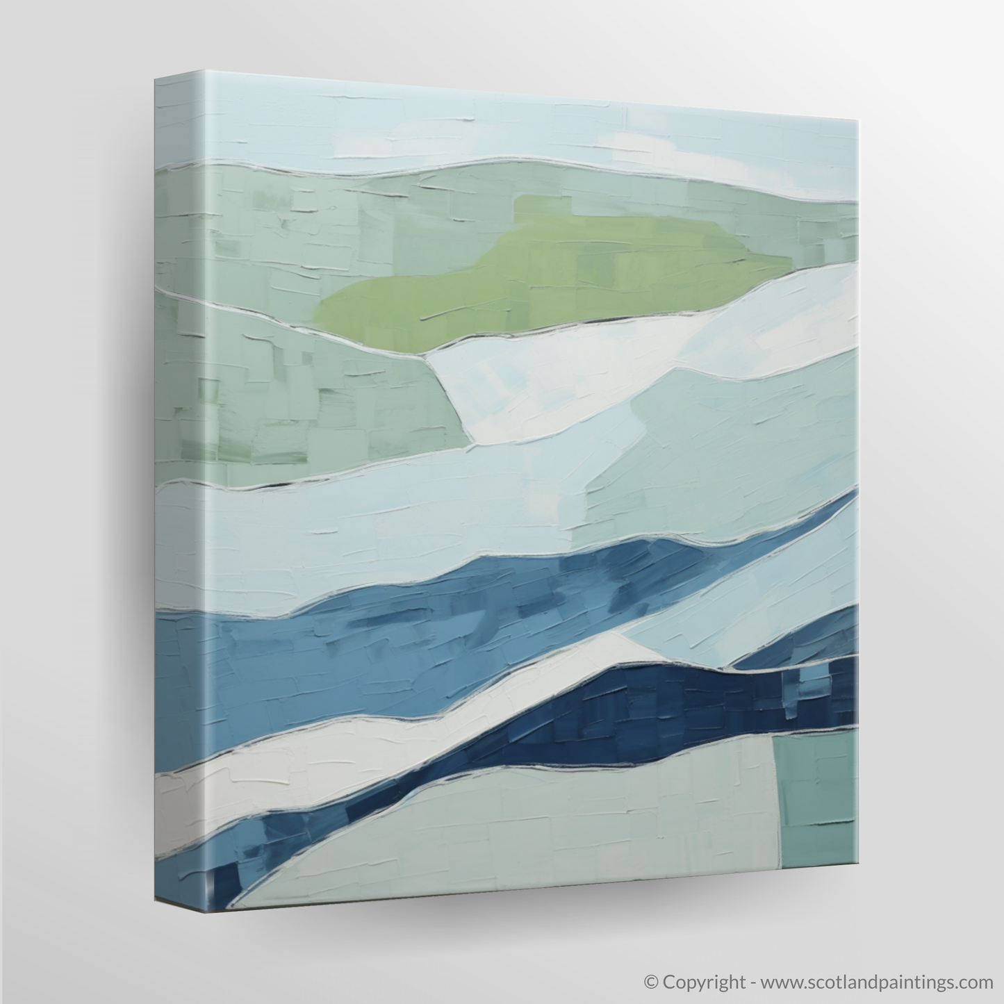Abstract elements suggest the layered textures of the landscape, from the gentle undulations of the nearby hills to the distant, faint silhouettes of the Scottish highlands. The tactile quality imparted by thick applications of paint adds a dimensional richness, inviting the viewer to a tactile experience, as though you could reach out and skim the surface of water or graze the grassy embankments.