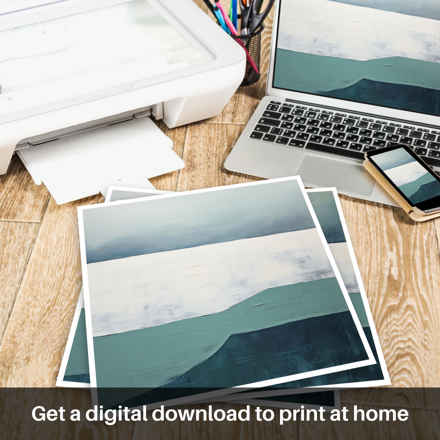 This piece is a study in sophistication and restraint, inviting viewers to contemplate the natural world's fluid boundaries and the interplay of light and colour at the day's end. Whether this print adorns a minimalist's space or adds a touch of modern tranquillity to a vibrant interior, it is sure to evoke the peaceful solitude of a quiet evening by the sea.