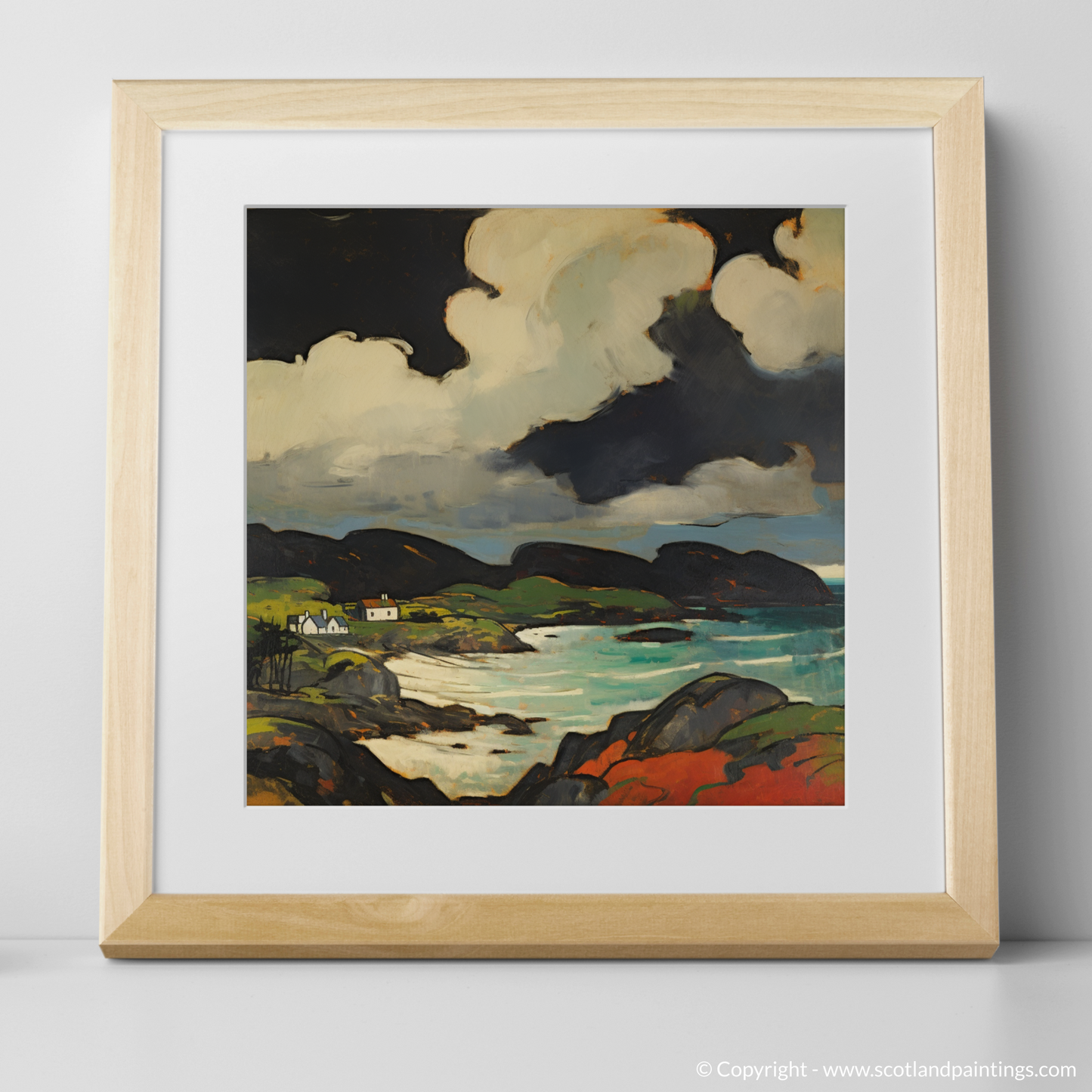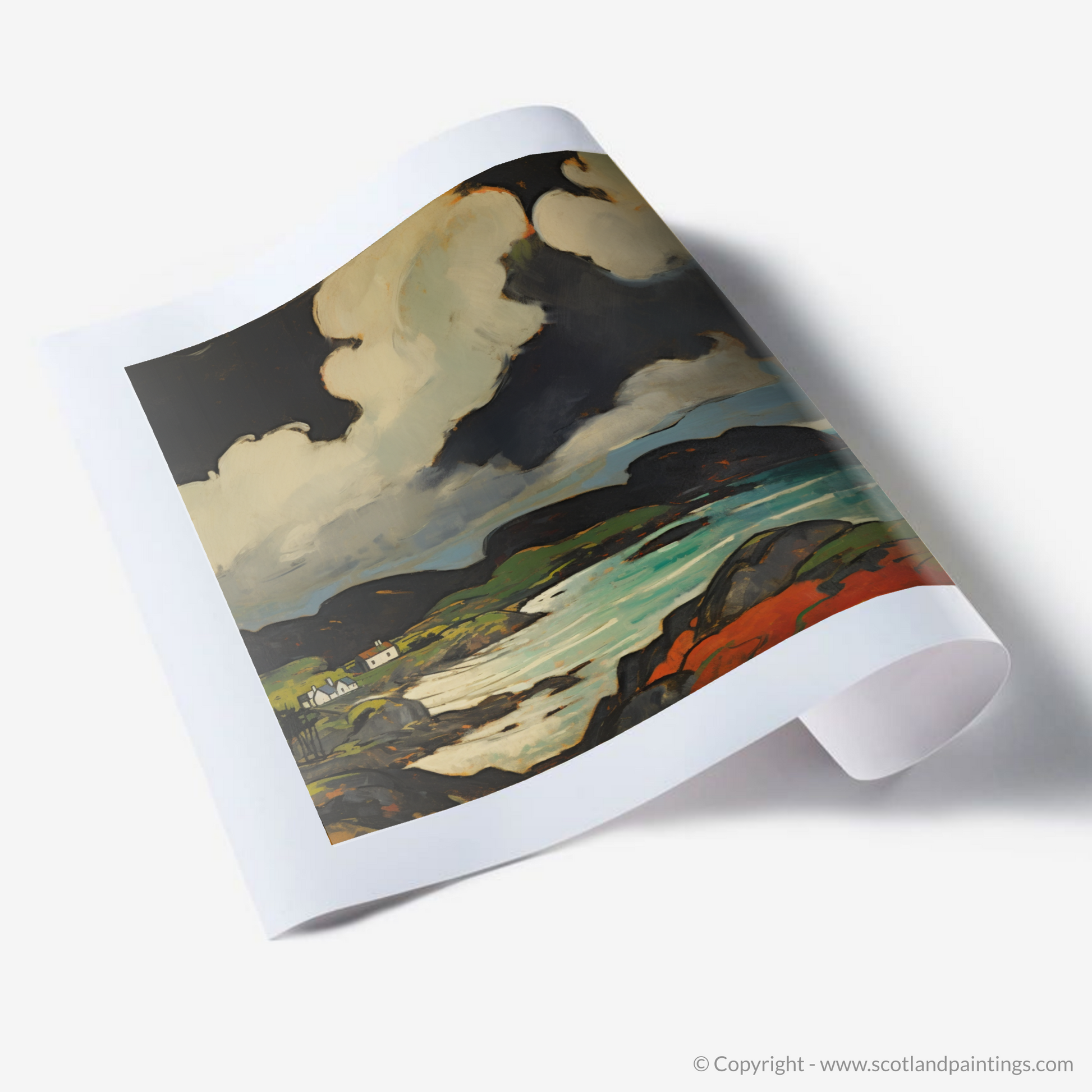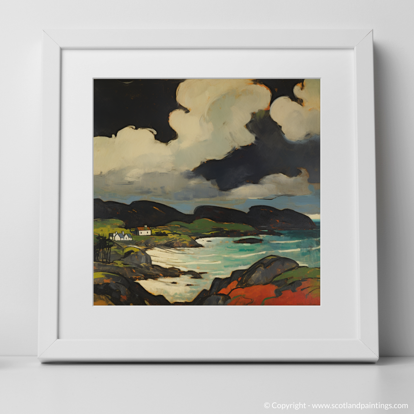 Immerse yourself in the tranquil yet dramatic landscape of Scourie Bay through this evocative minimalist take, part of our 'Modern & Minimal' collection. The captivating print captures the raw beauty of the Scottish coastline, presenting a clash between the serene and the tempestuous.