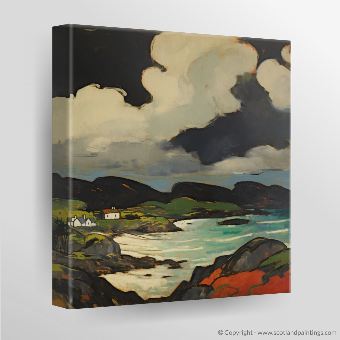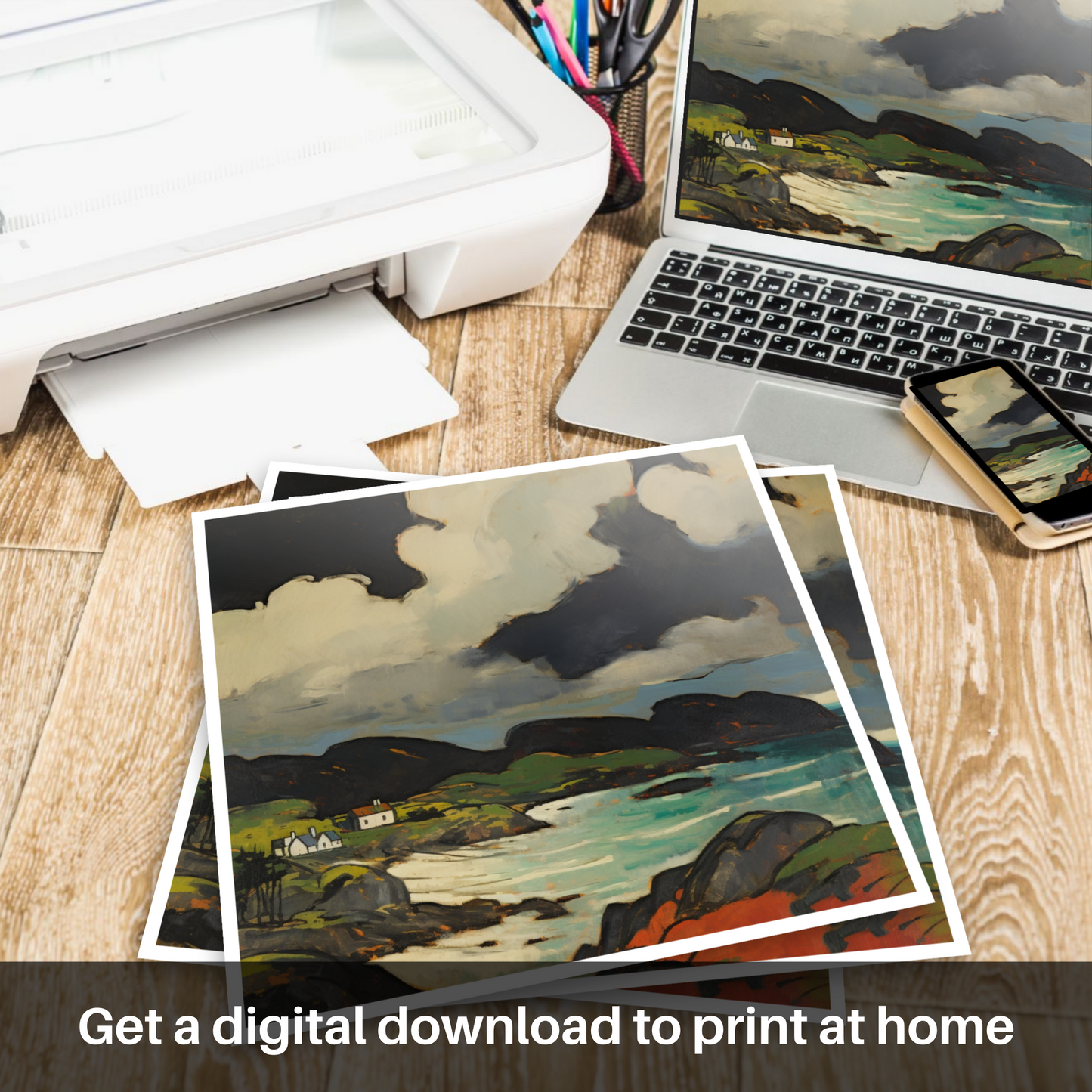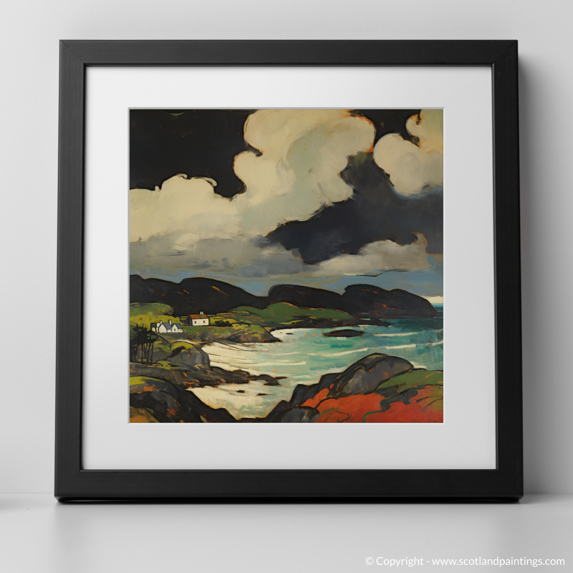 Immerse yourself in the tranquil yet dramatic landscape of Scourie Bay through this evocative minimalist take, part of our 'Modern & Minimal' collection. The captivating print captures the raw beauty of the Scottish coastline, presenting a clash between the serene and the tempestuous.