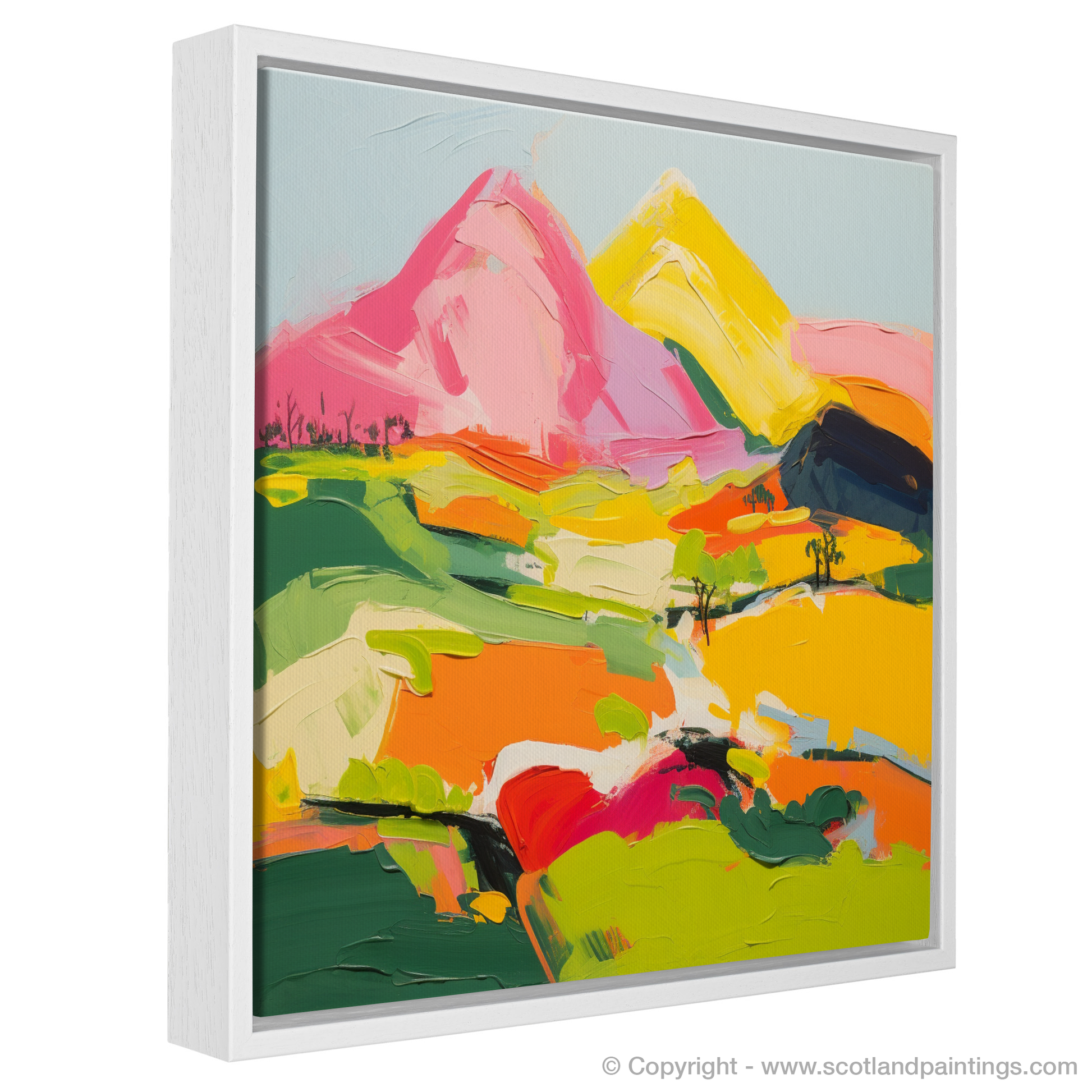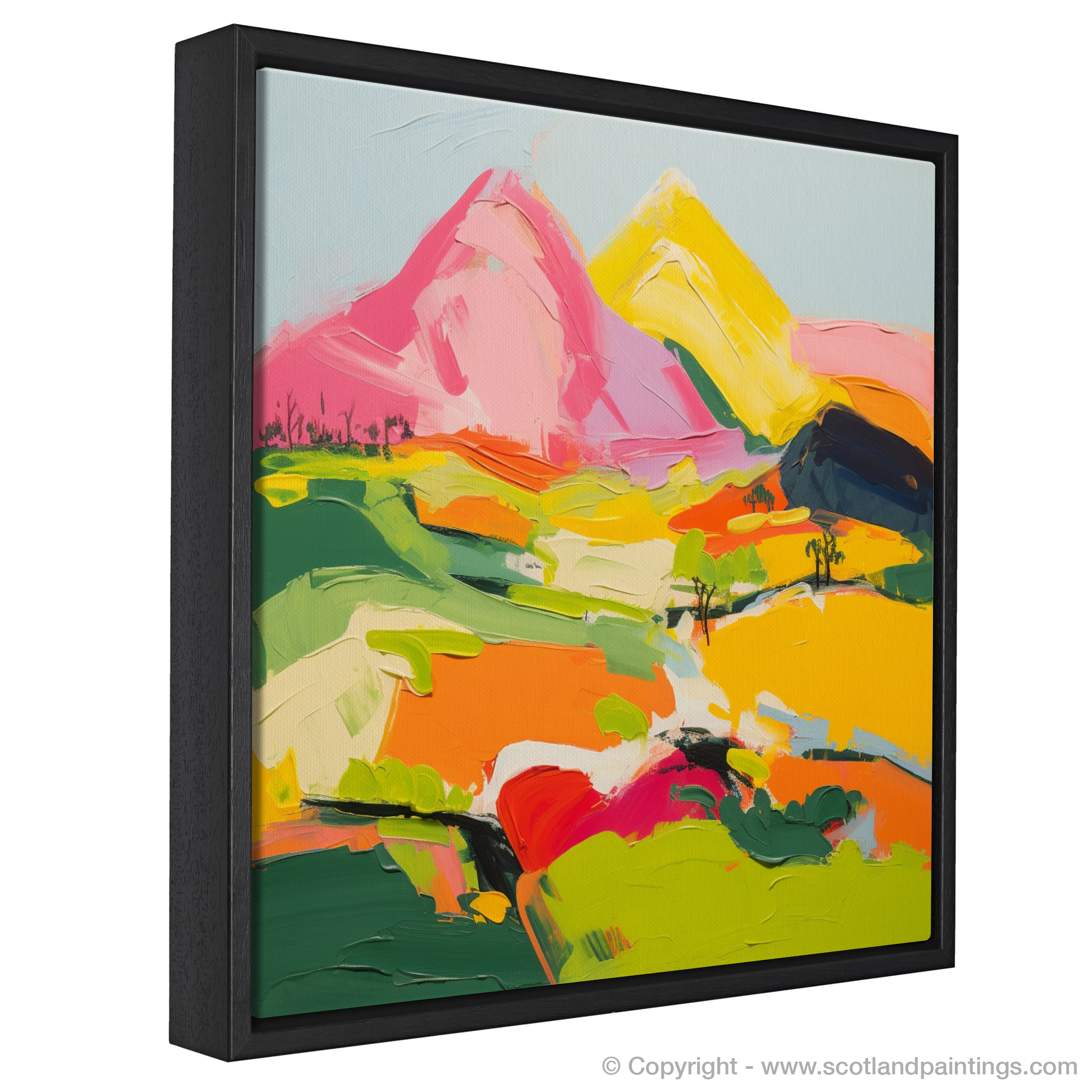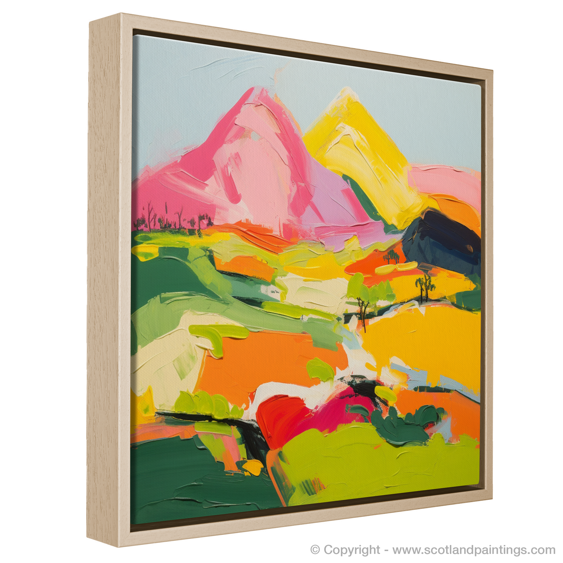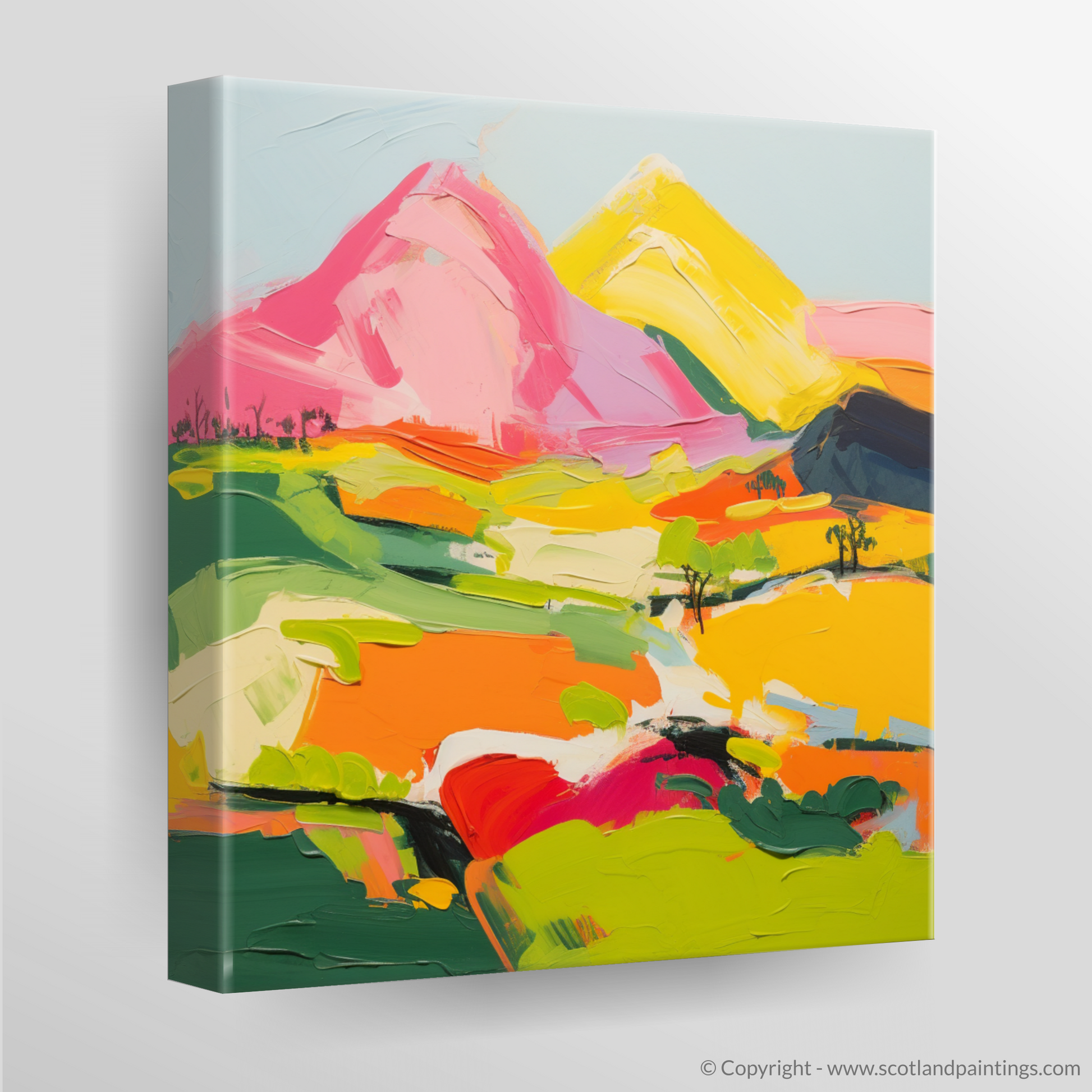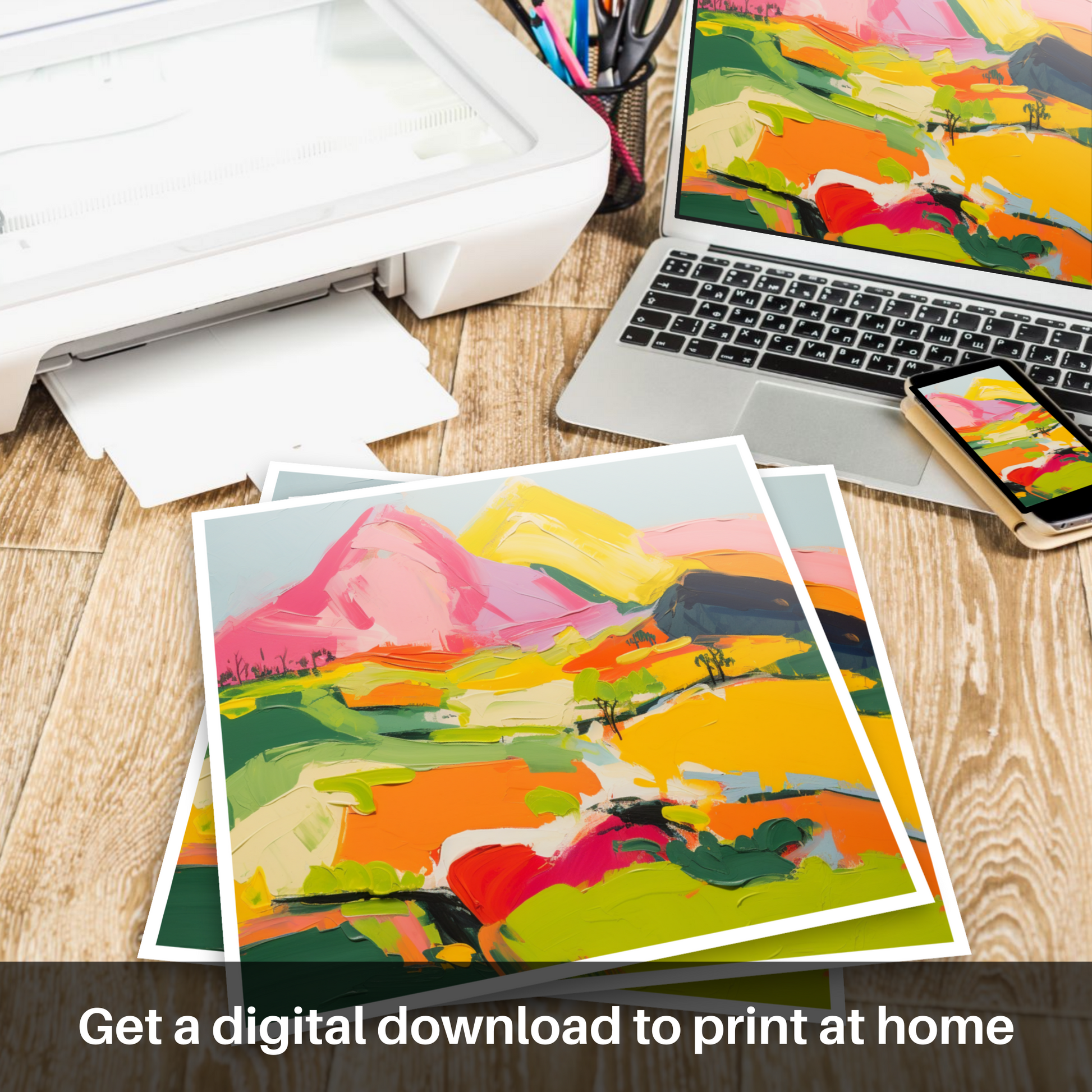 Immerse yourself in the vibrant abstraction of this exuberant piece where the Scottish landscape’s spirit is reimagined through a symphony of bold color and dynamic brushstrokes. Inspired by the majestic Schiehallion, known for its natural grandeur, this print transforms the impressive mountain into a visual feast of shapes and hues.