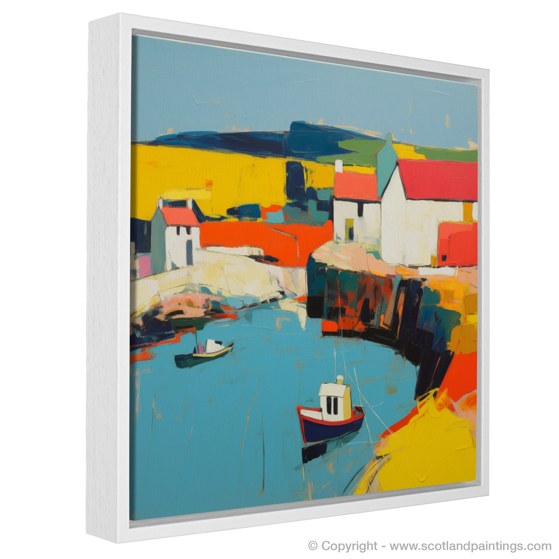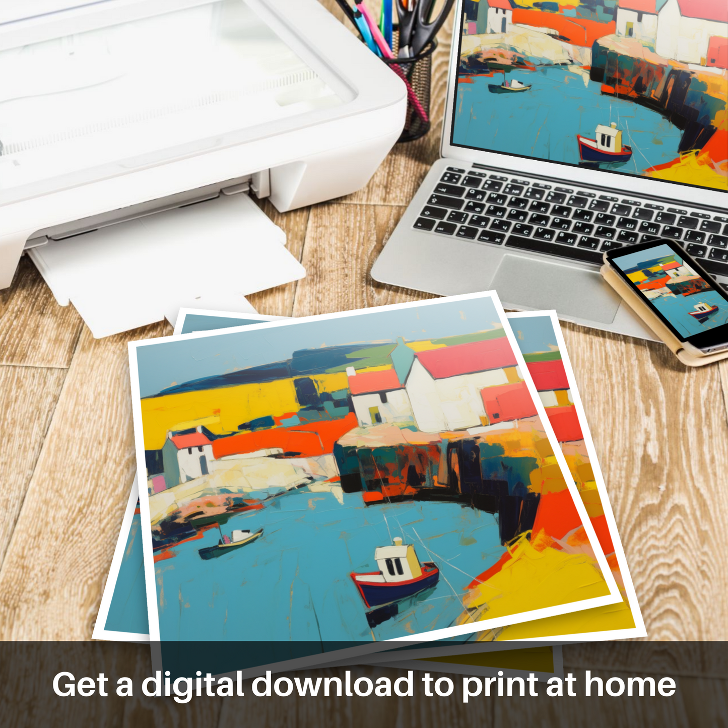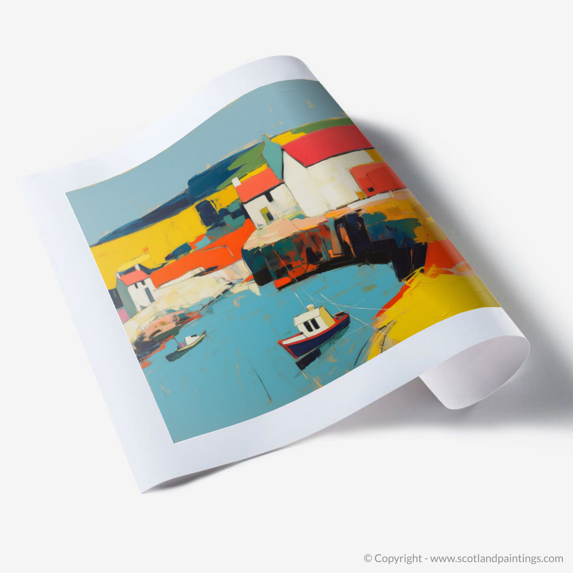 Immerse yourself in a world where the essence of Cove Harbour is reimagined through a vibrant tableau of abstract forms and bold colours. This print invites the imagination to wander through the picturesque beauty of the Scottish Borders with an artistic twist that transcends reality.