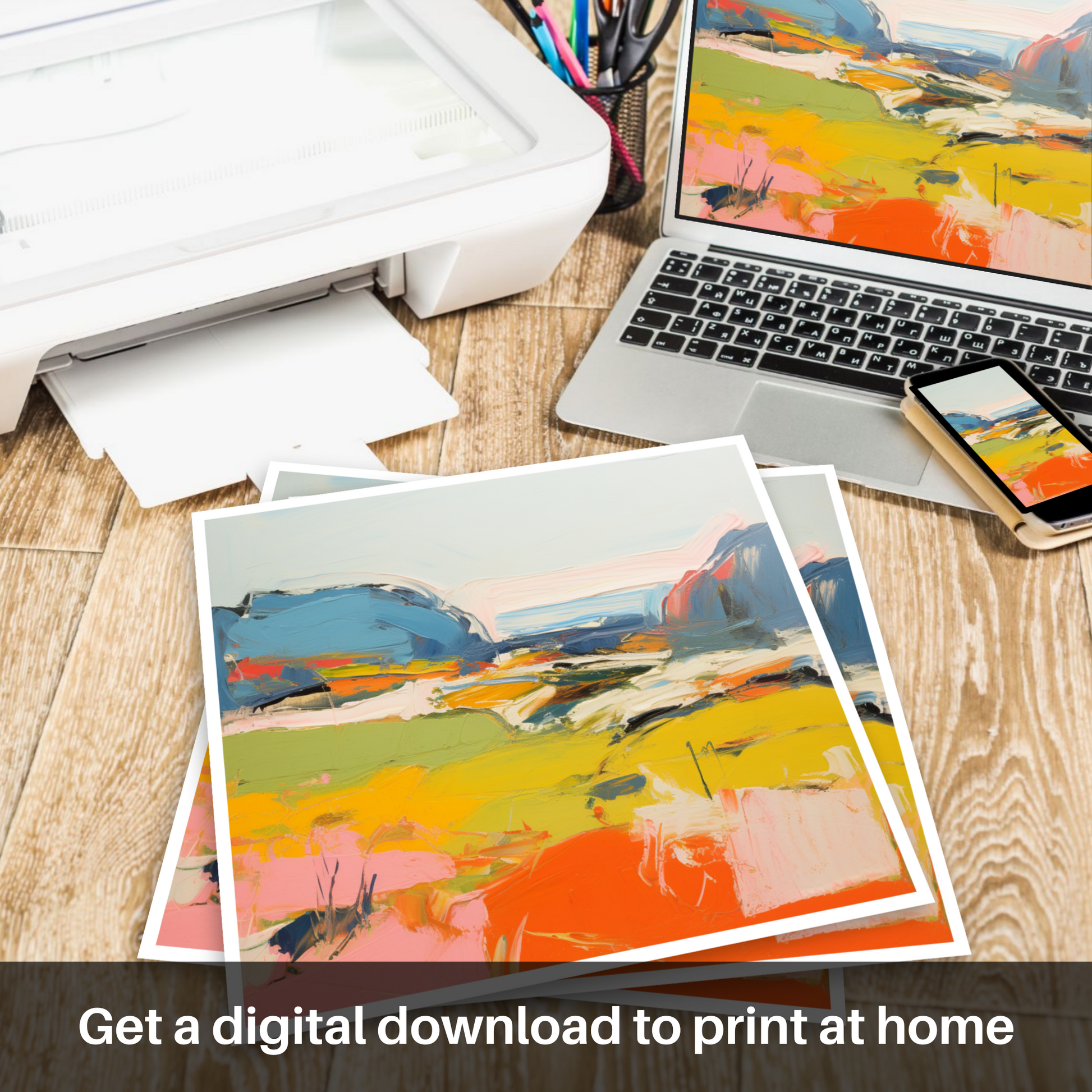 Suitable for those who admire the natural beauty of the highlands and appreciate the allure of abstract art, this print promises to be a statement piece in any setting, igniting conversation and infusing spaces with its audacious palette and emotive composition. Whether you're longing for a piece of the Scottish wilderness or seeking an artwork that stands out with passion and personality, this print will not disappoint.