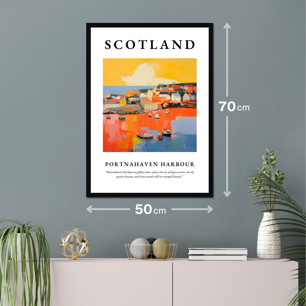 Introduce a splash of vivid colour and a touch of Scottish charm to your home with our striking framed poster print. Measuring a grand 50cm x 70cm, this piece is designed to make a statement, filling your space with the vibrant allure of Portnahaven Harbour. Choose from sleek black, crisp white, or a warm natural wood-effect frame to perfectly complement your décor.