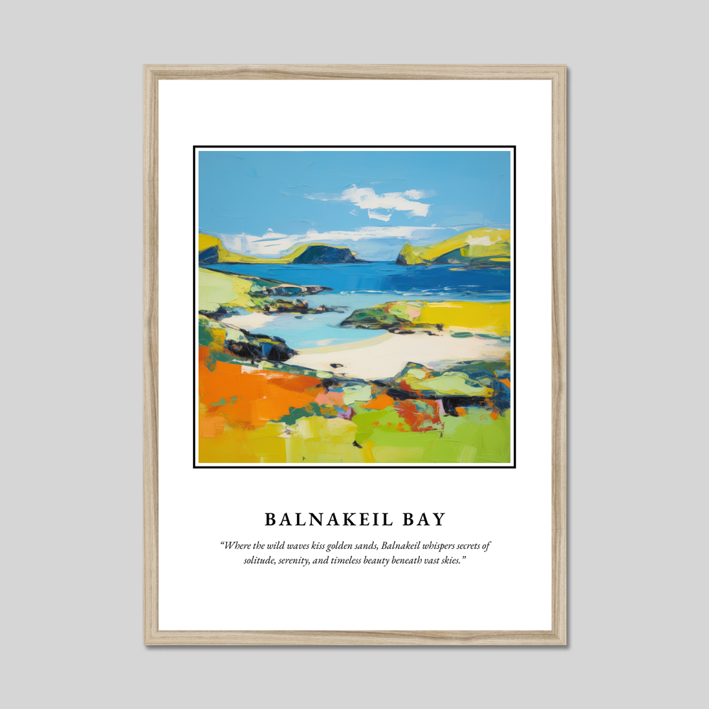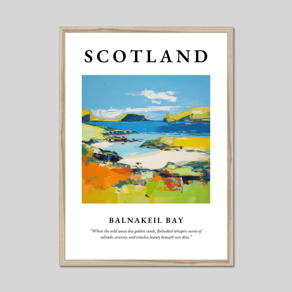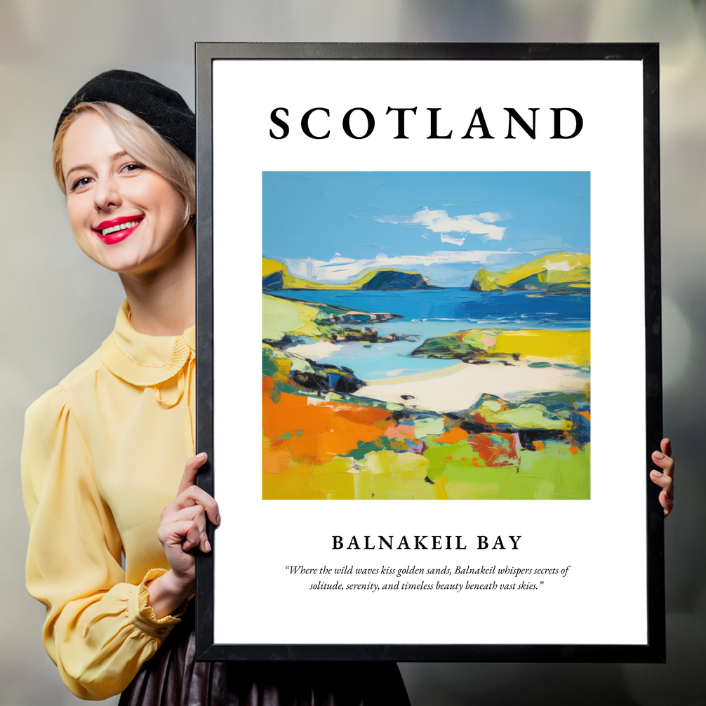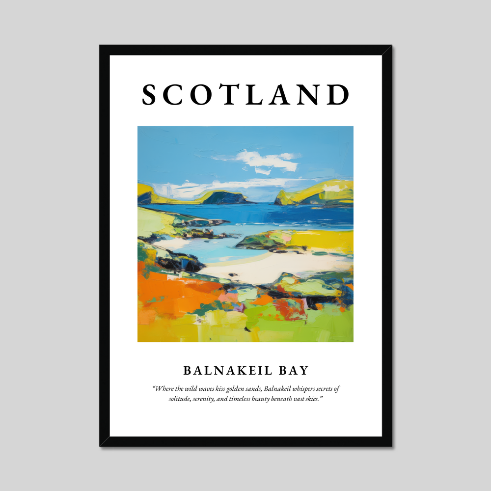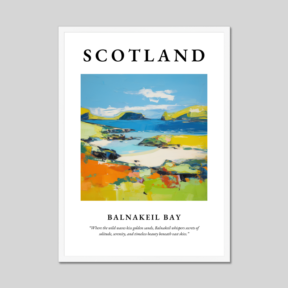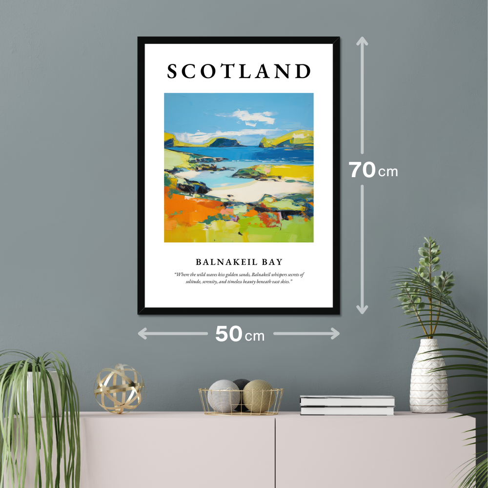 Illuminate your space with the exquisite allure of Scotland, portrayed in our striking framed poster print. Measuring an impressive 50cm x 70cm, this stunning artwork captures the dramatic essence of Balnakeil Bay in vivid abstract style. With the word “SCOTLAND” emblazoned at the top in bold lettering, this piece makes a grand statement, allowing you to celebrate a land of rugged beauty and timeless charm.