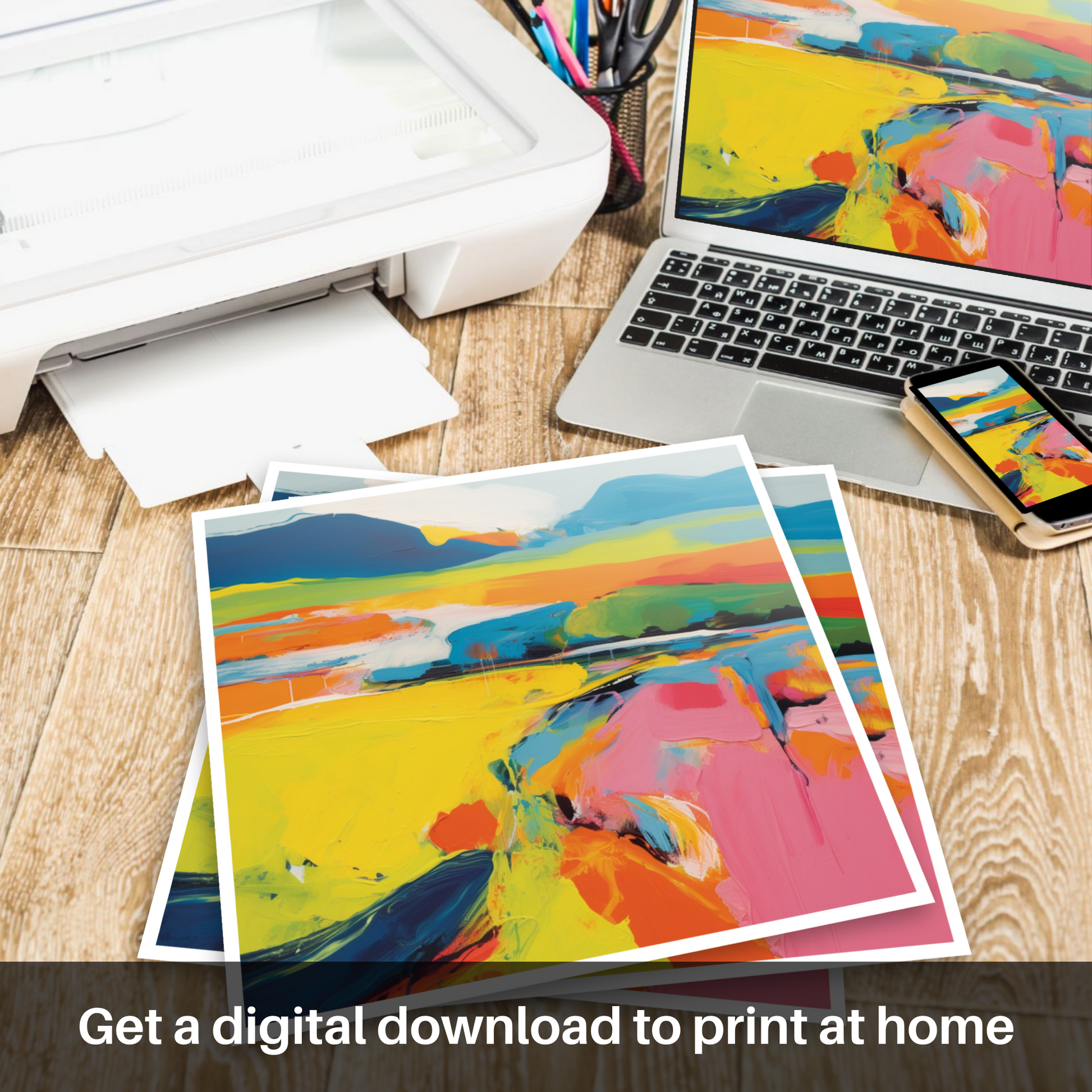 This piece is a testament to the abstract form, liberating the River Clyde from the confines of literal representation and instead celebrating its essence through radiant colour and spirited composition. A perfect statement for any space, this print will undoubtedly become a conversation starter, appealing to lovers of both modern art and the timeless beauty of Scotland's landscapes.