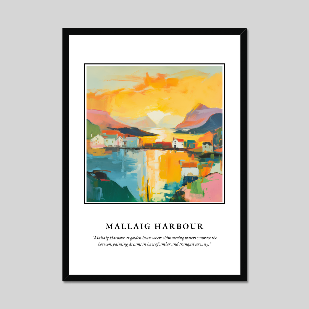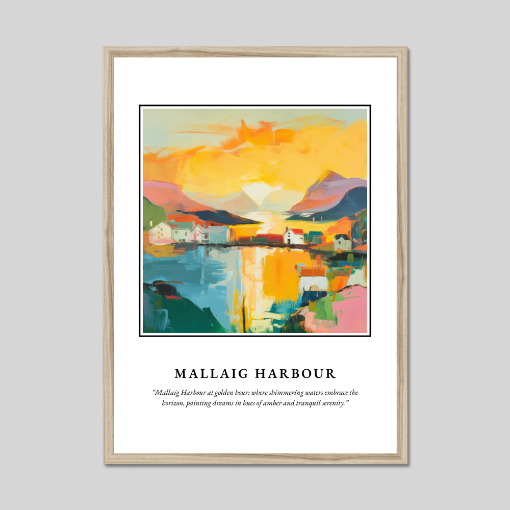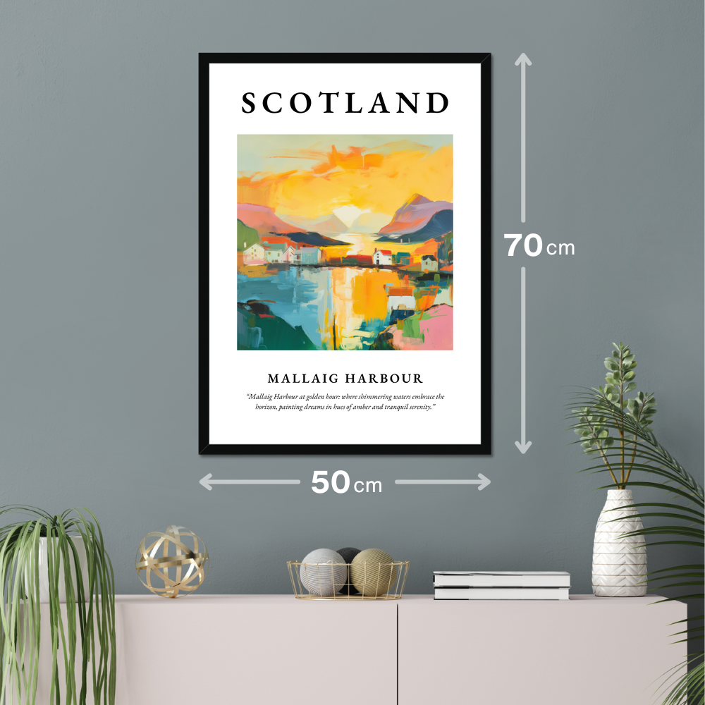 Experience the captivating beauty of Scotland with our stunning framed poster print, measuring an impressive 50cm x 70cm. Perfect for art lovers and Scotland admirers alike, this piece showcases the enchanting abstract depiction of Mallaig Harbour. Instantly transform your space with this large, affordable artwork available in black, white, or natural wood-effect frames, allowing you to find the perfect match for your home décor.