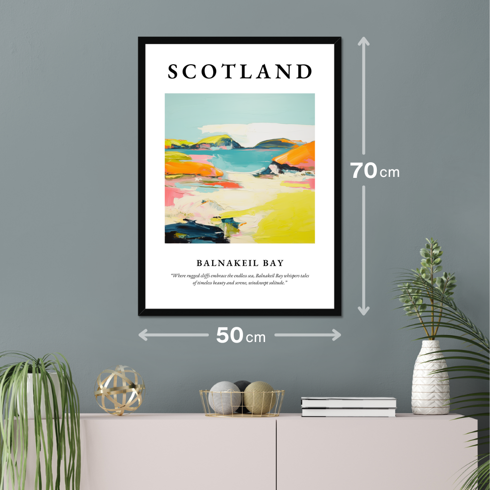 Introducing an elegantly framed, large-scale poster print that brings the essence of Scotland’s stunning landscape into your home. Measuring a generous 50cm x 70cm, this eye-catching artwork combines bold typographic design with the enthralling beauty of Balnakeil Bay captured in an abstract style. Available in your choice of black, white, or a natural wood-effect frame, this piece is designed to complement any interior while offering a cost-effective way to transform a large wall space.