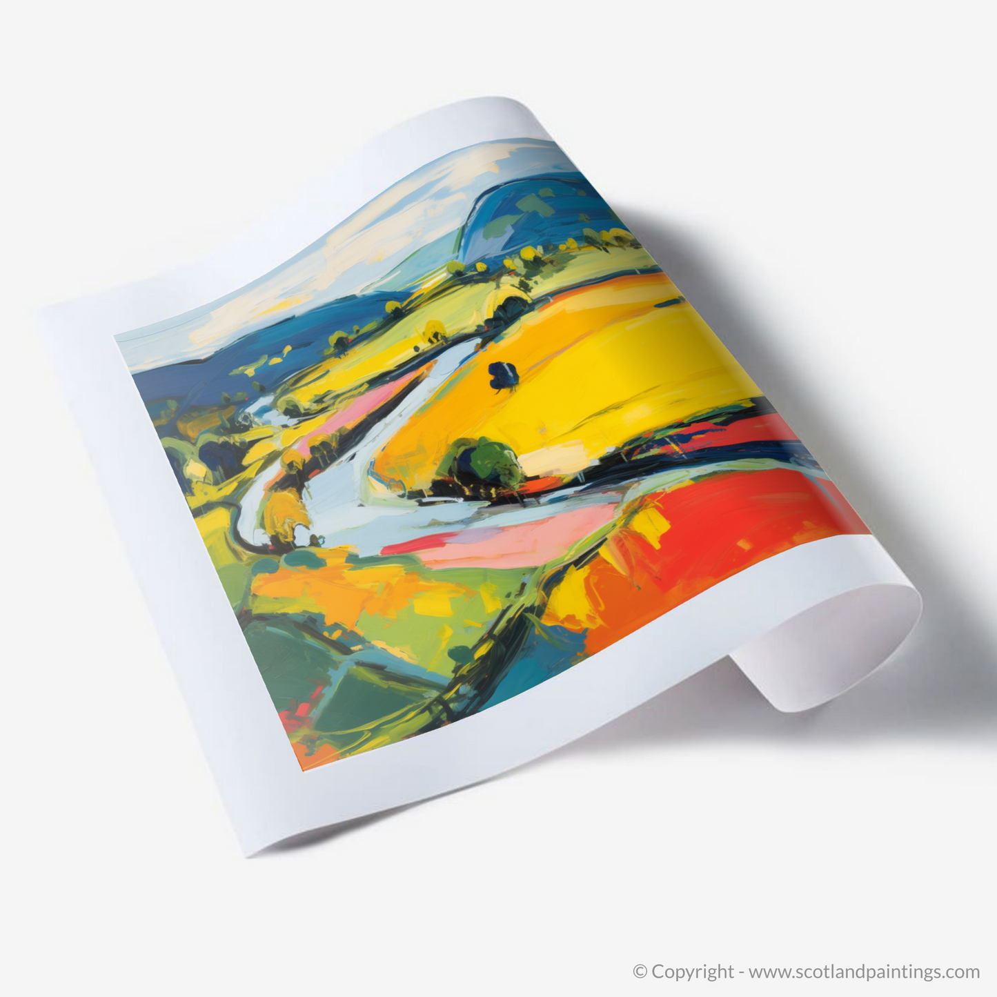 In this print, the subtle interplay between light and shade is cast aside for a more immediate and sensorial dialogue with the landscape, inviting observers to experience the Scottish countryside through a lens that is at once both intense and playful. It is an abstract vision that transcends literal representation, offering instead a feast for the imagination—a piece that will continually reveal new facets and moods with every viewing.
