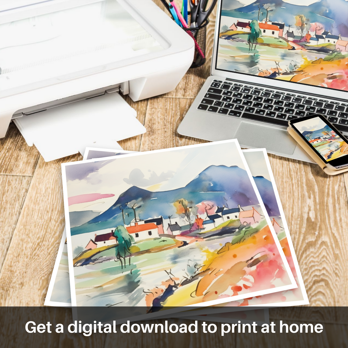 This piece brings forth a bold, contemporary interpretation that will resonate with art lovers and dreamers alike, offering a unique and timeless take on the traditional Scottish panorama. Whether hung in your living space, study, or hallway, this print promises to be a captivating focal point that stirs the imagination and invites contemplation.