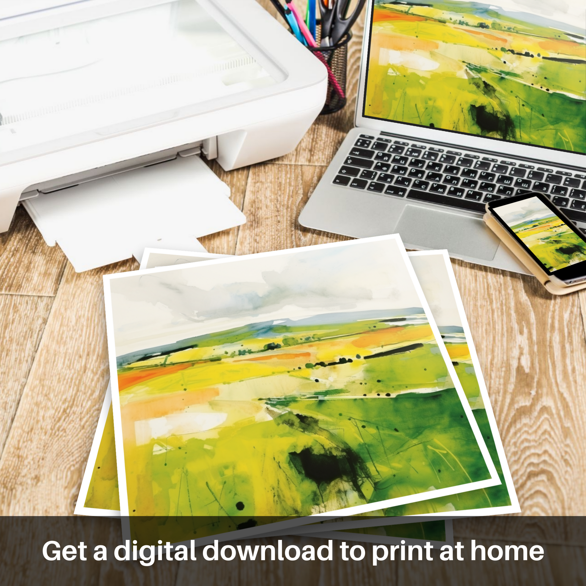 Immerse yourself in the verdant allure of the Scottish countryside with this abstract homage to Glenesk, Angus. Capturing the essence of a summer blooming amidst rolling hills, this print exudes a vibrant, almost palpable energy that entices the viewer to dive into an exhilarating exploration of colour and form.