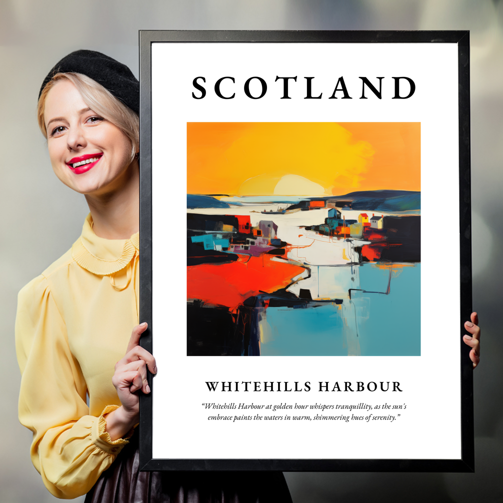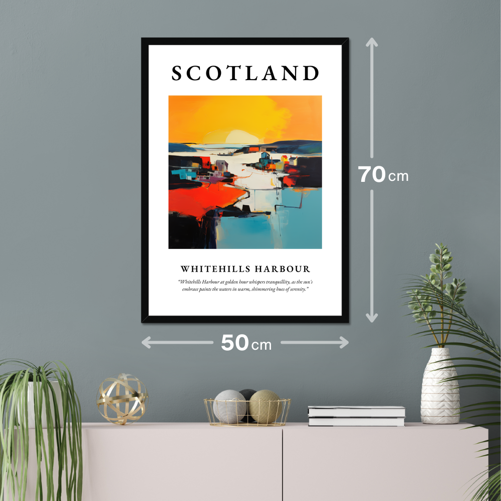 Whether you have fond memories of a visit to Whitehills or simply wish to bring a touch of Scottish coastline into your home, this framed poster is a perfect choice. Let it transport you to the gentle embrace of the harbour, where time seems to pause amidst the golden glow of sunset, and serenity washes over like the soothing waters of the North Sea.