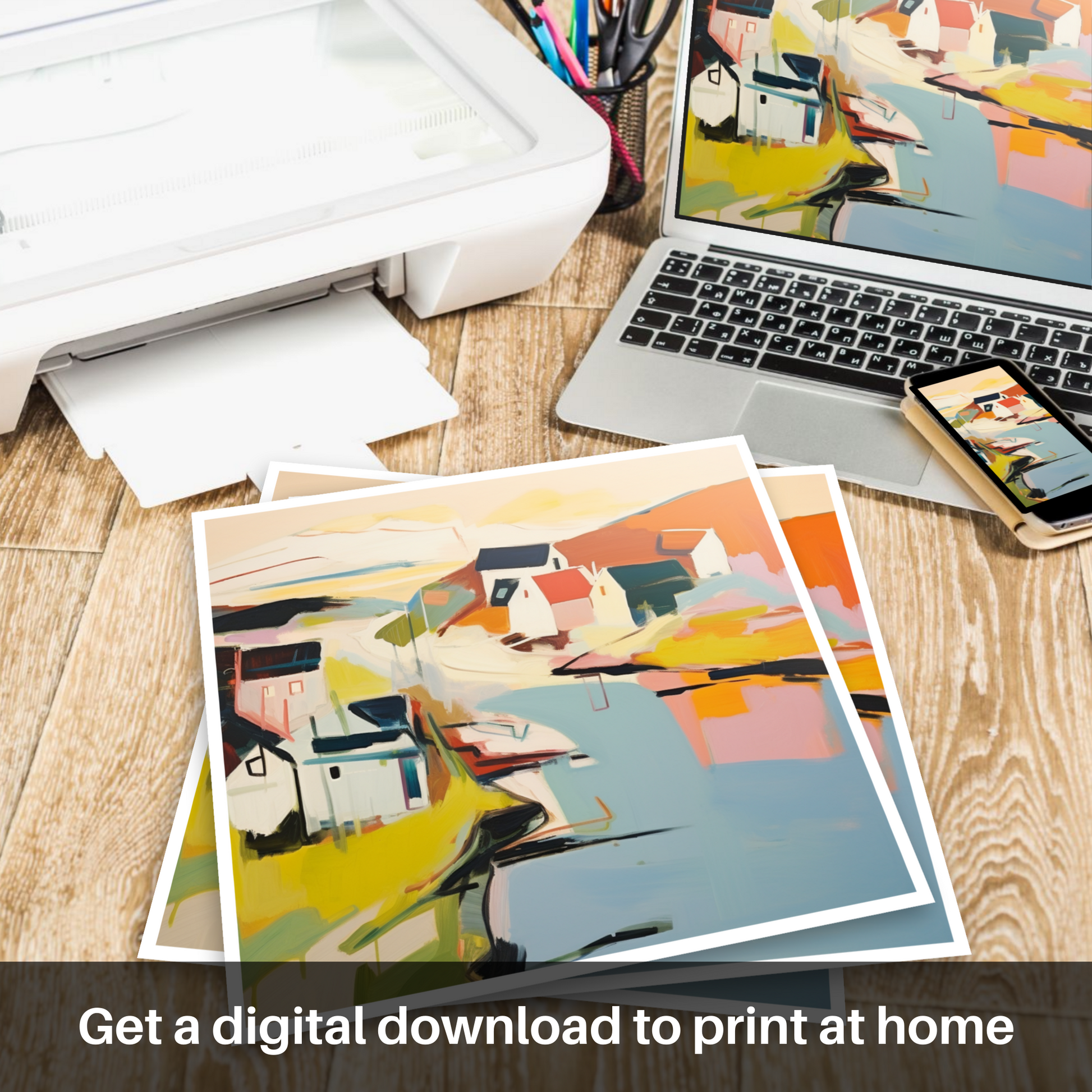 Rich in texture, the print is a testament to the timeless allure of coastal landscapes, reimagined through a contemporary abstract lens. It encapsulates a moment forever paused in time, offering a window to serene reflection that harmonises beautifully with a multitude of interior decor styles. This print is a veritable centrepiece, adding an evocative and vibrant touch to any room it graces.
