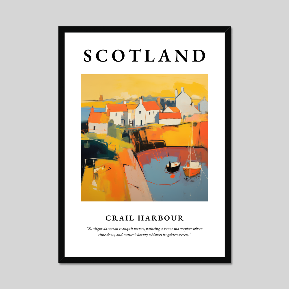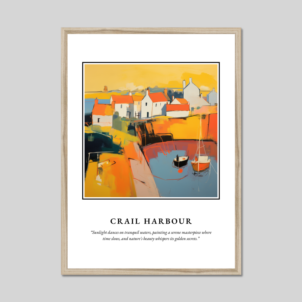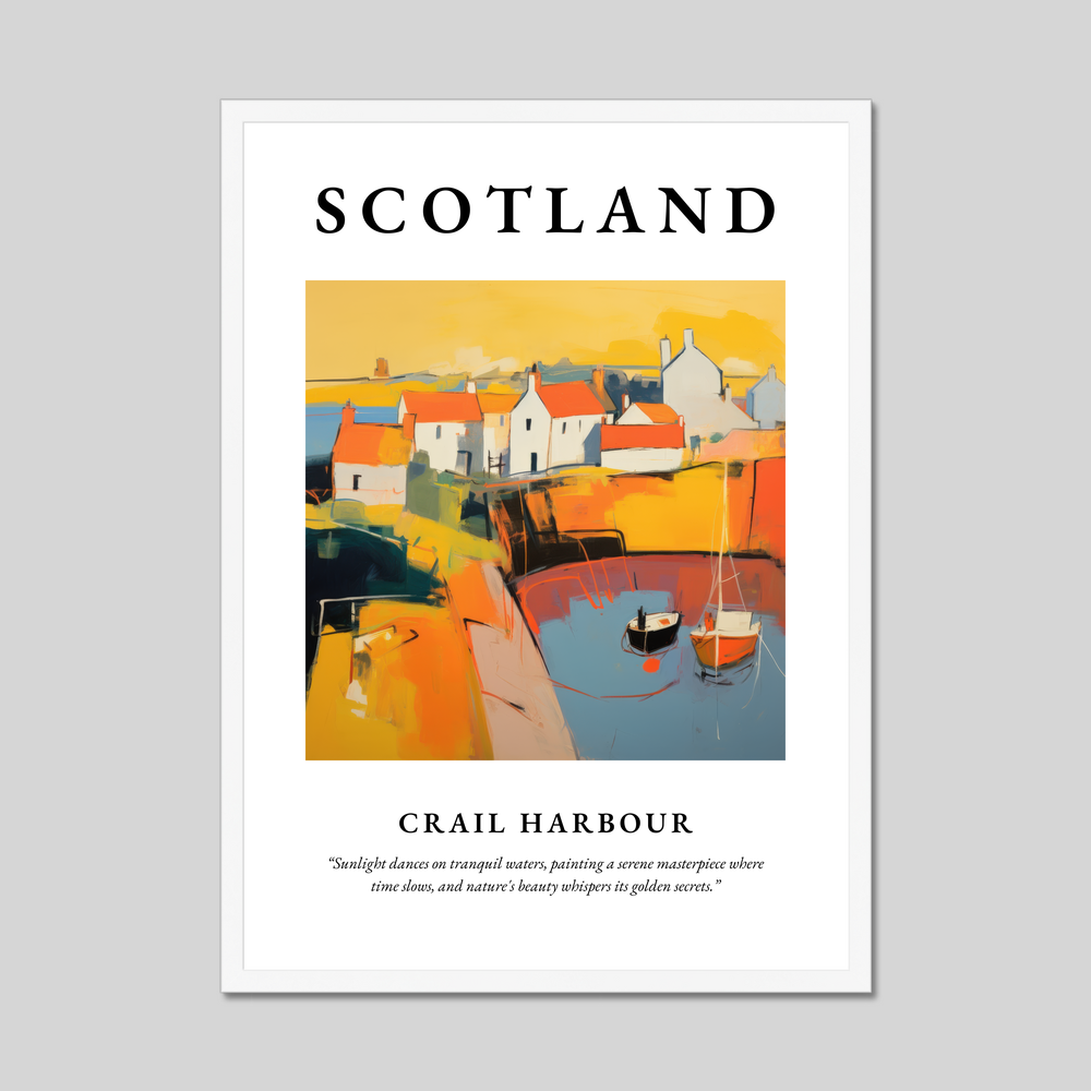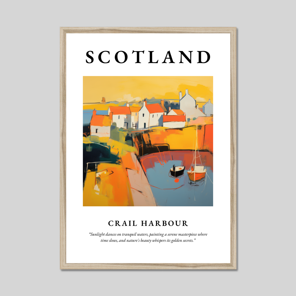 Transform your living space with a striking addition from our "Abstract" collection, an homage to the serene charm of Crail Harbour. This framed poster print, measuring an impressive 50cm x 70cm, features the bold lettering of "SCOTLAND" seated above an abstract interpretation of Crail Harbour. The allure of this piece lies in its vibrant palette and surreal composition, capturing the harbour’s essence in a symphony of colours and shapes that leap off the page, inviting viewers into a world where sunlight dances on tranquil waters and time itself seems to slow. Below the artwork, the quote adds depth, gently reminding us of the serene beauty and timeless whispers of nature.
