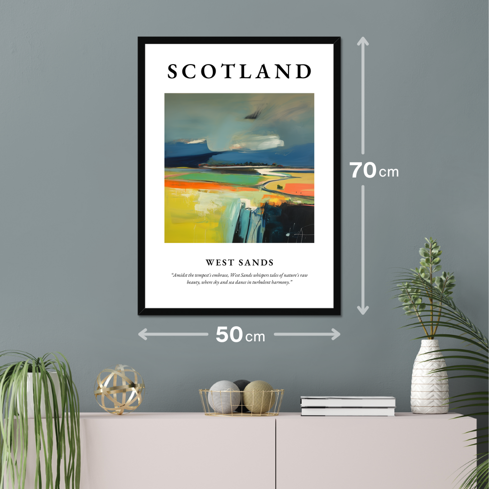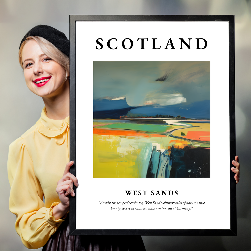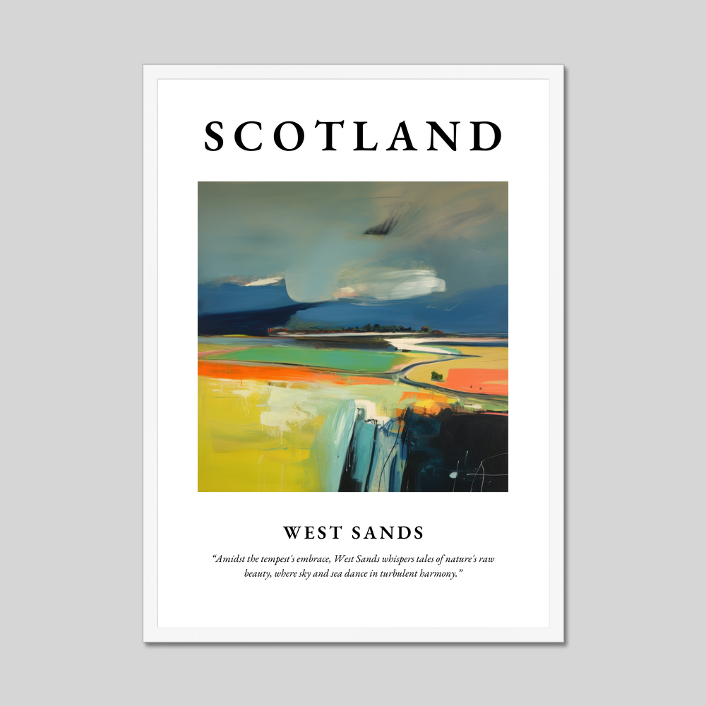Whether West Sands holds fond memories from your travels or excites the artistic spirit within you, this poster is a compelling choice that covers a large wall area without breaking the bank. Let the essence of Scotland's natural elegance fill your home, reminding you of the enchanting tales whispered by seas and skies every day.