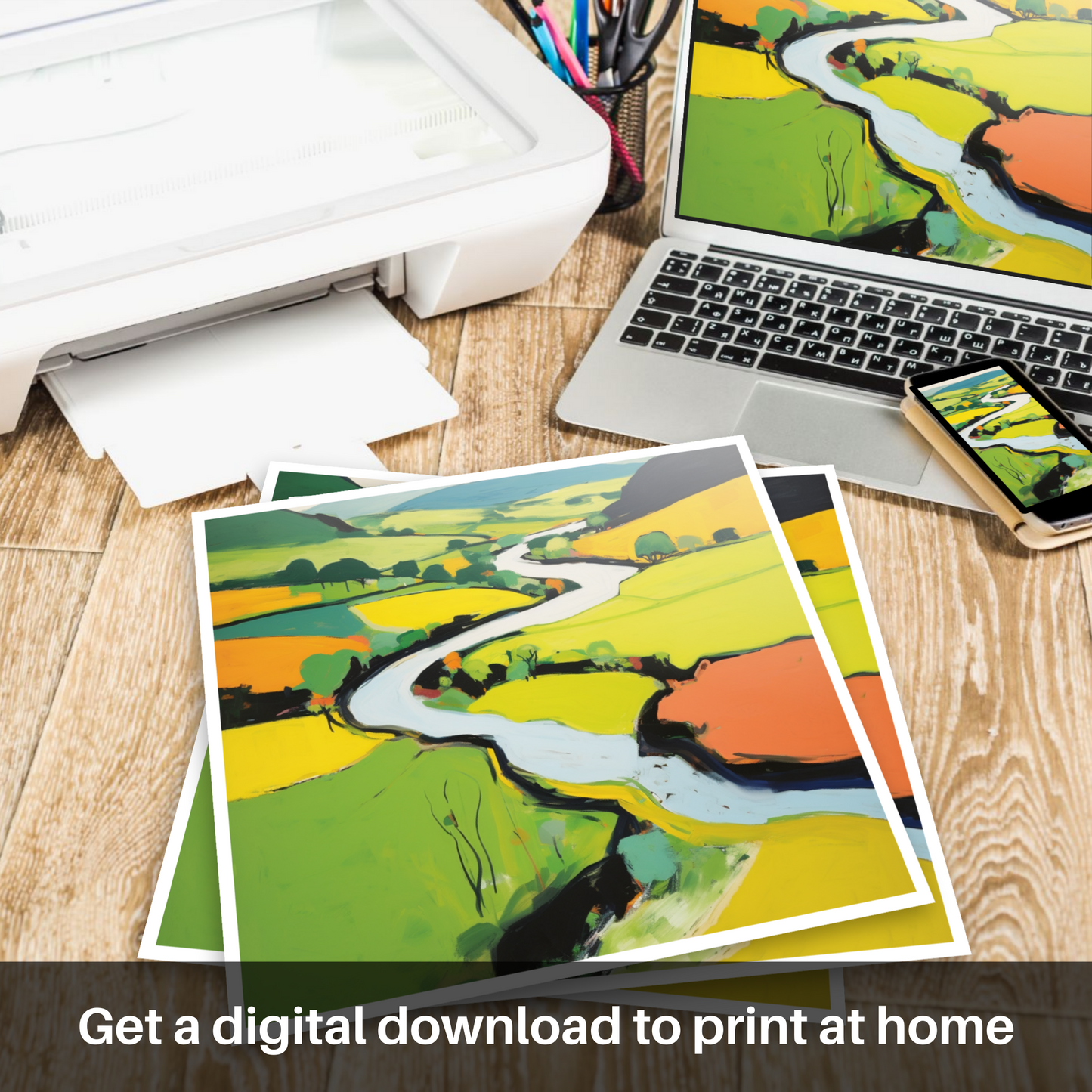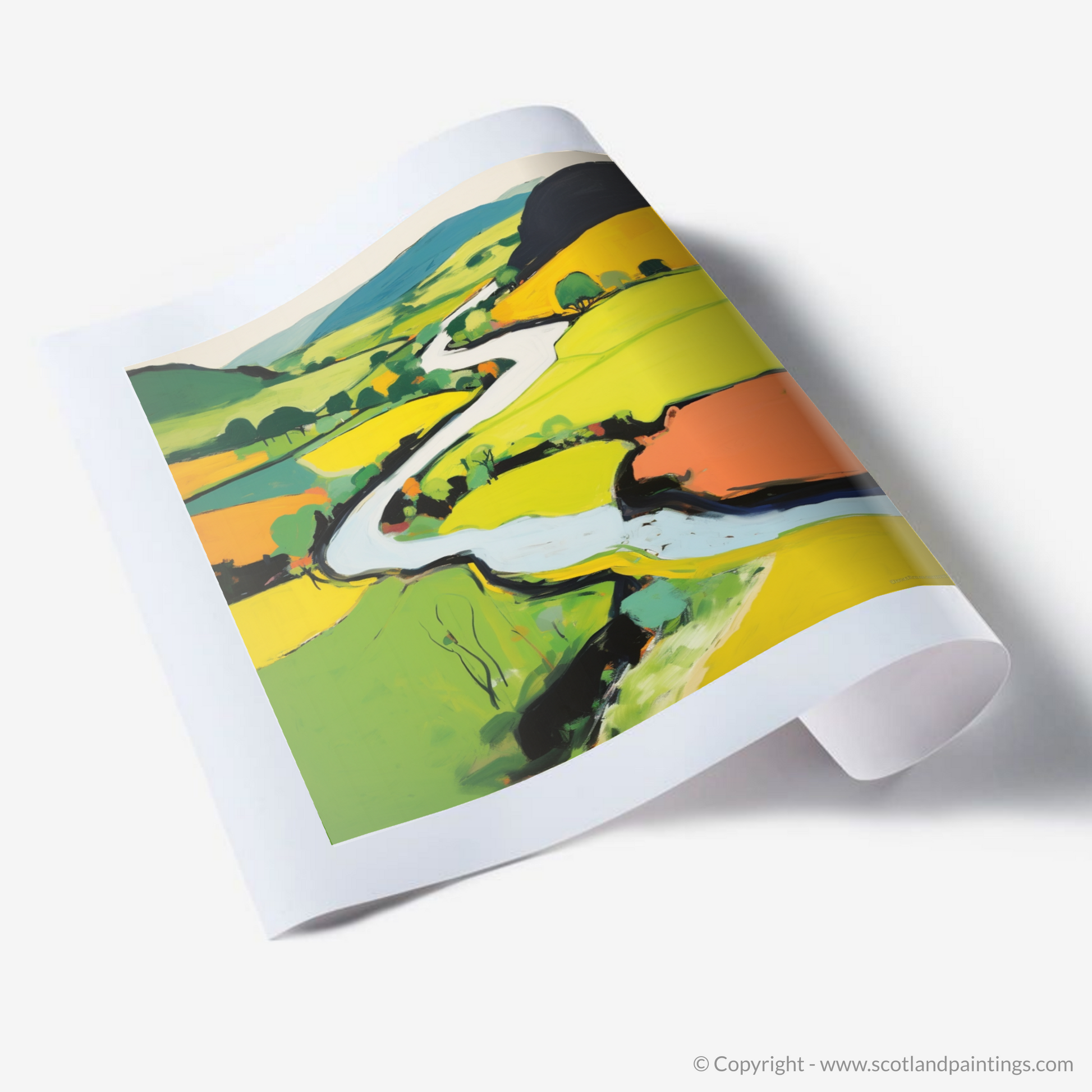Immerse your senses in the verdant vista of the River Tweed, captured through the lens of abstraction in this striking print. A celebration of both form and colour, the artwork offers a fresh interpretation of the Scottish Borders, where the flowing river weaves a sinuous path through the landscape.