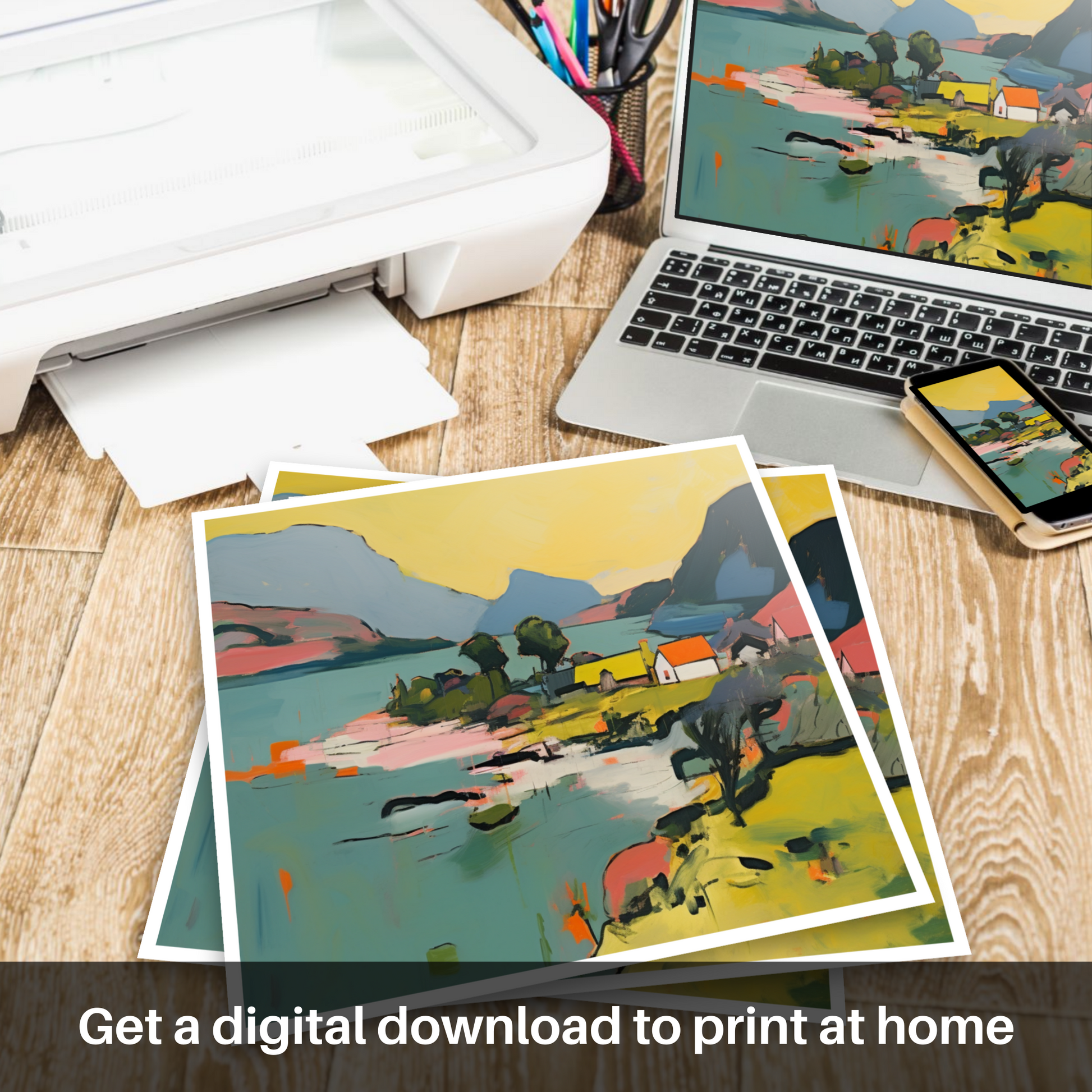 A piece that is at once a nod to the untouched beauty of the Scottish landscape and an avant-garde twist on traditional scenery, this print is an ideal accent for anyone with a penchant for contemporary aesthetics and an appreciation for the wild, rugged terrains of Scotland. It is a tribute to the landscapes that inspire reverie and artistic innovation, inviting viewers to experience Plockton through an abstract lens that teases the imagination and kindles a sense of wonder.