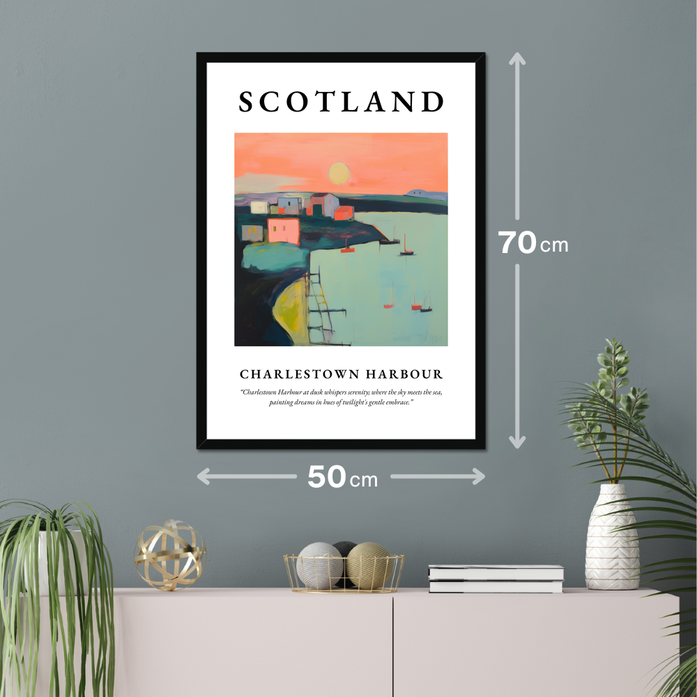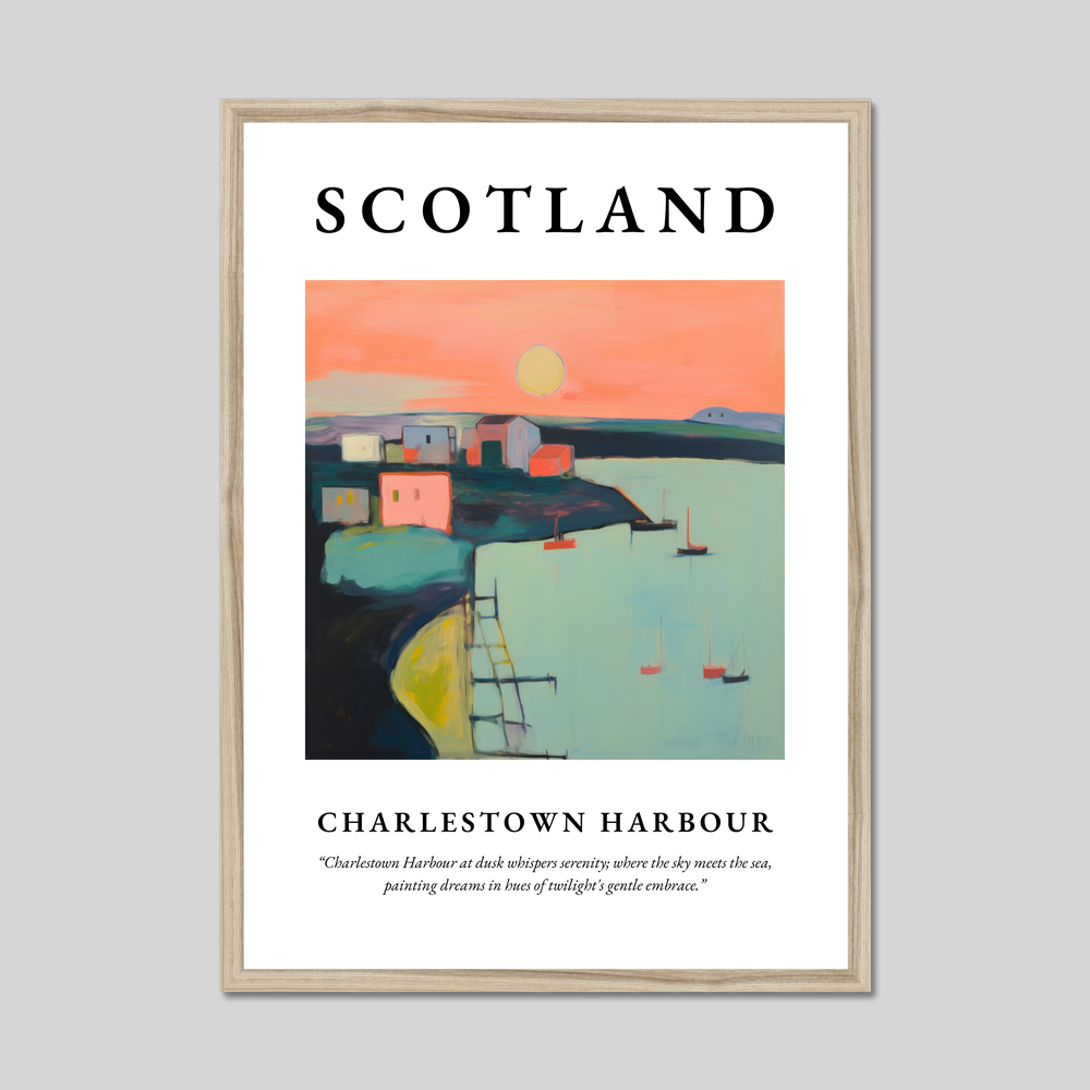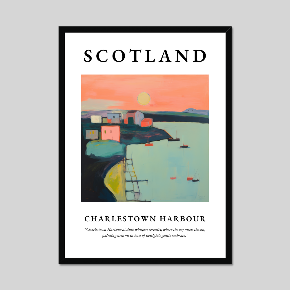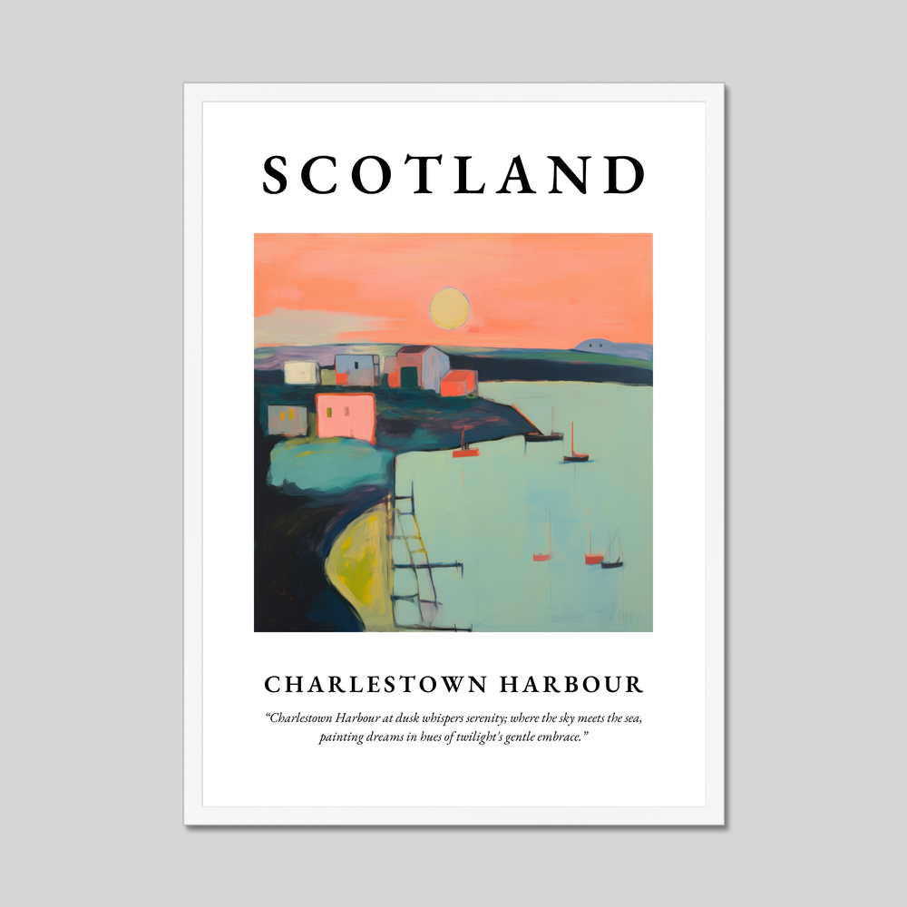 Below the painting, the words “Charlestown Harbour at dusk whispers serenity; where the sky meets the sea, painting dreams in hues of twilight's gentle embrace.” evoke the tranquillity and timeless beauty of this enchanting location. Whether you have a personal connection to Charlestown Harbour, are an art lover drawn to its abstract charm, or simply admire the serene beauty of Scotland’s landscapes, this print is sure to captivate.