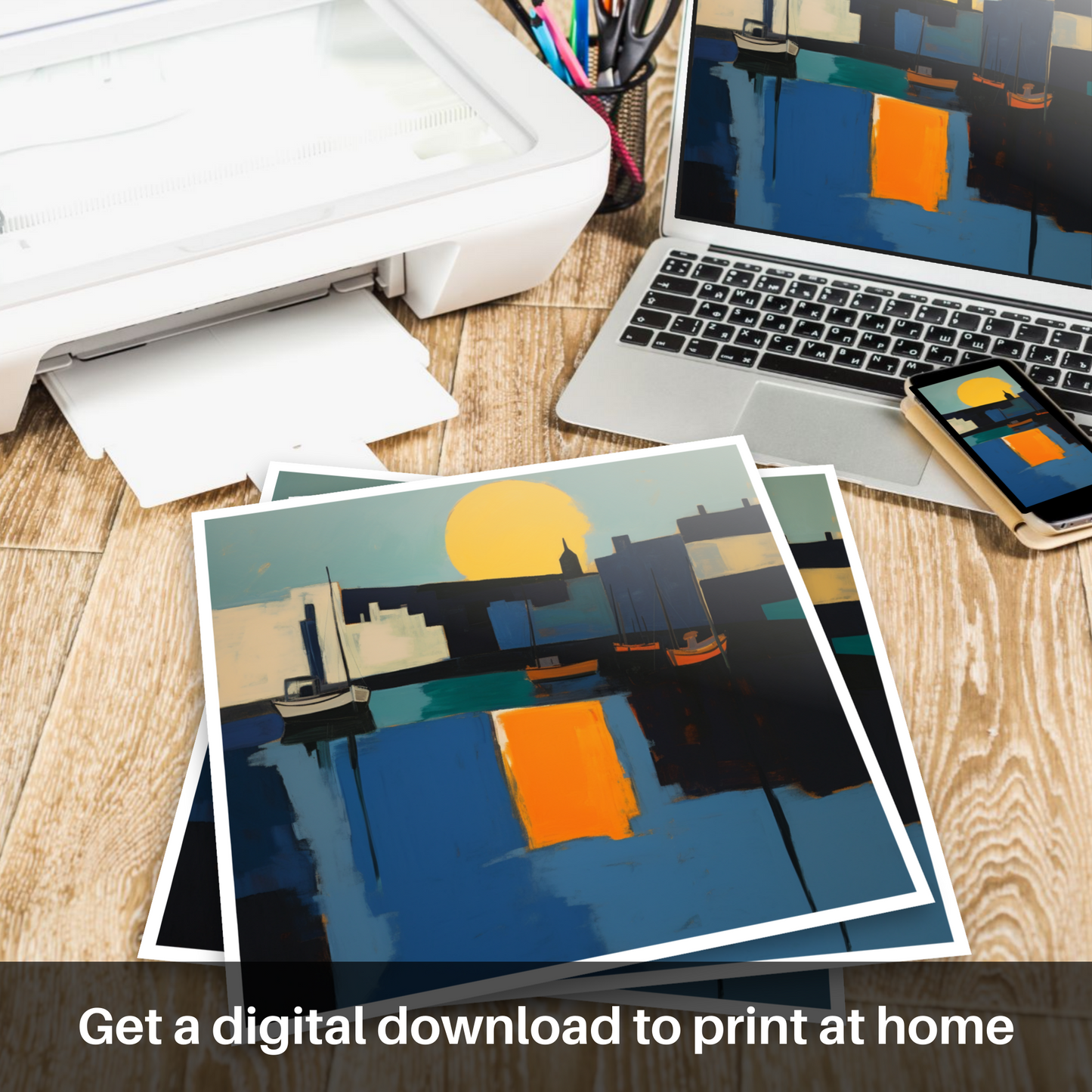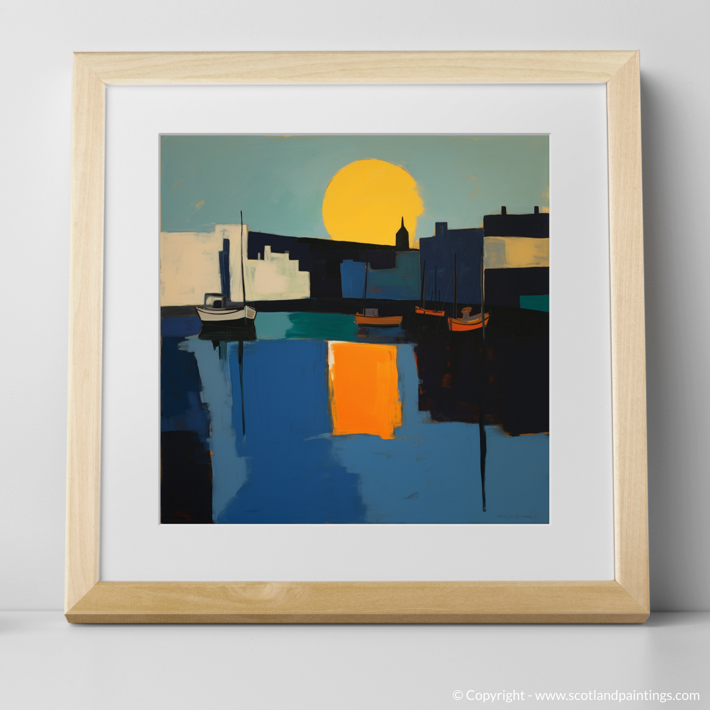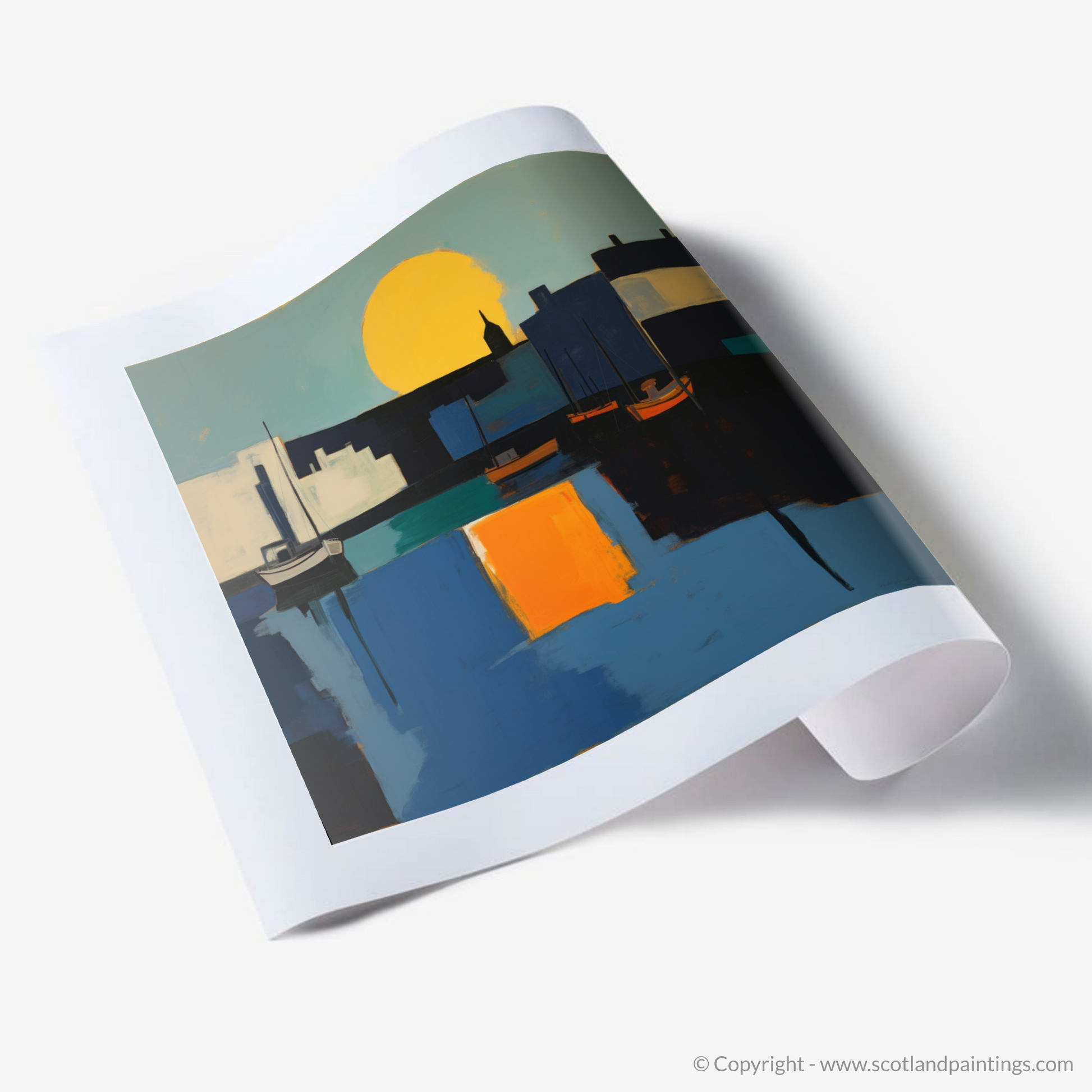 Immerse yourself in the serene abstraction of Charlestown Harbour, captured at the enchanting hour of dusk. This evocative piece combines bold blocks of colour with subtly nuanced shades, conveying the tranquil atmosphere of the harbour as day gives way to night.