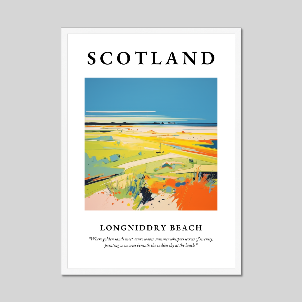 Whether you've walked its shores, dream of visiting, or simply wish to bring a piece of Scottish serenity into your home, this poster is a celebration of the magic that is Longniddry Beach. Embrace the artful interpretation of nature’s beauty and let it transform your living space into a canvas of peace and artistic splendour.