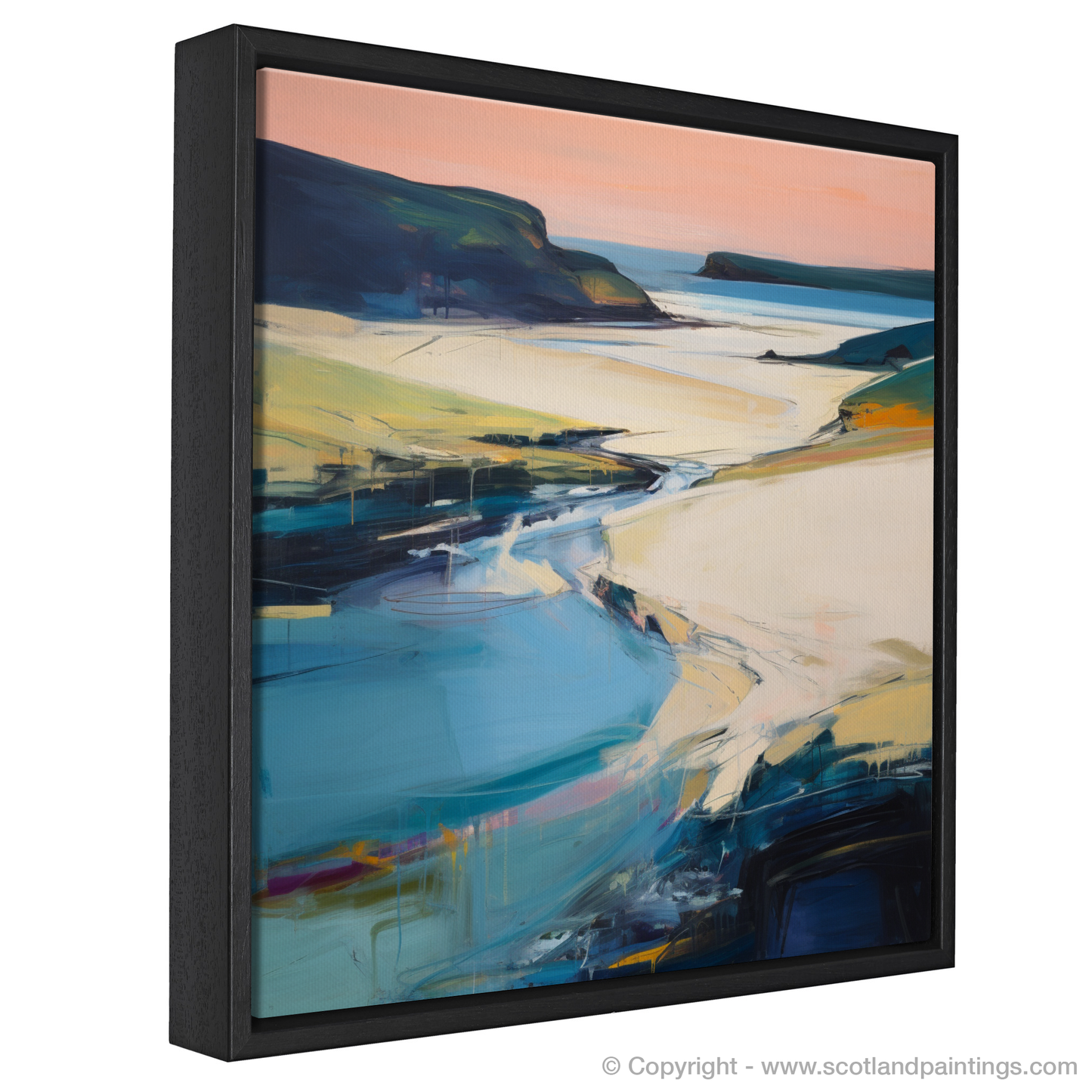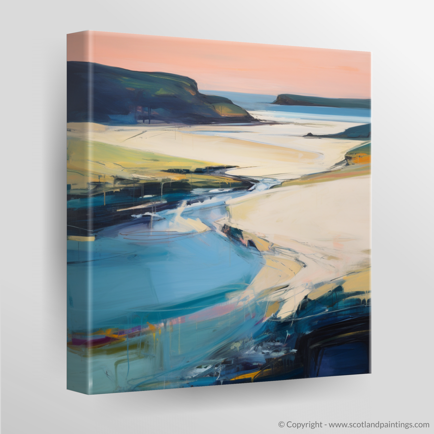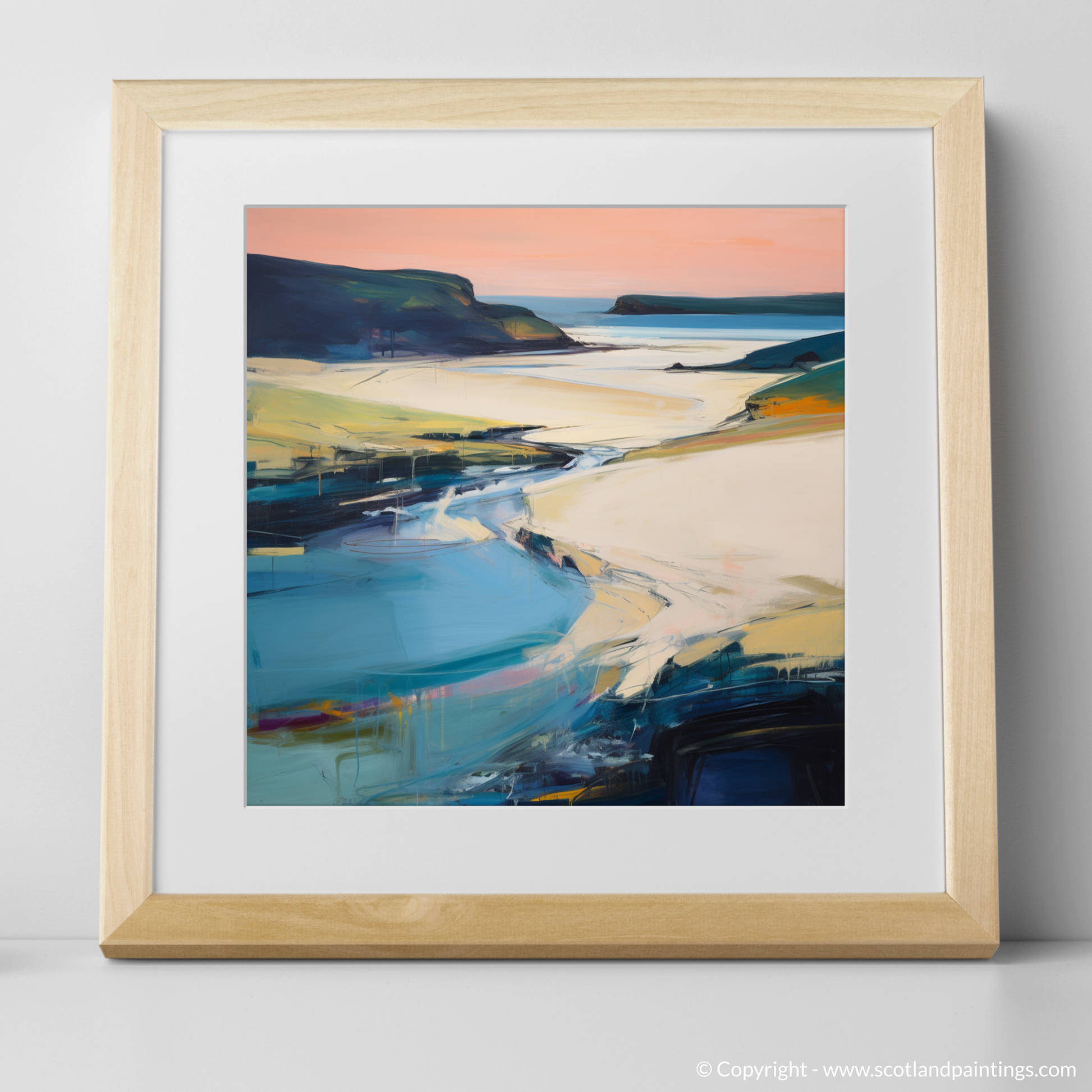 Immersed in the sublime tranquillity of Scotland's natural grandeur, this evocative print captures the ethereal essence of Sandwood Bay as the day's last light fades. Swathes of bold, impasto strokes sweep across the canvas, emulating the sweeping sands and gentle tide.