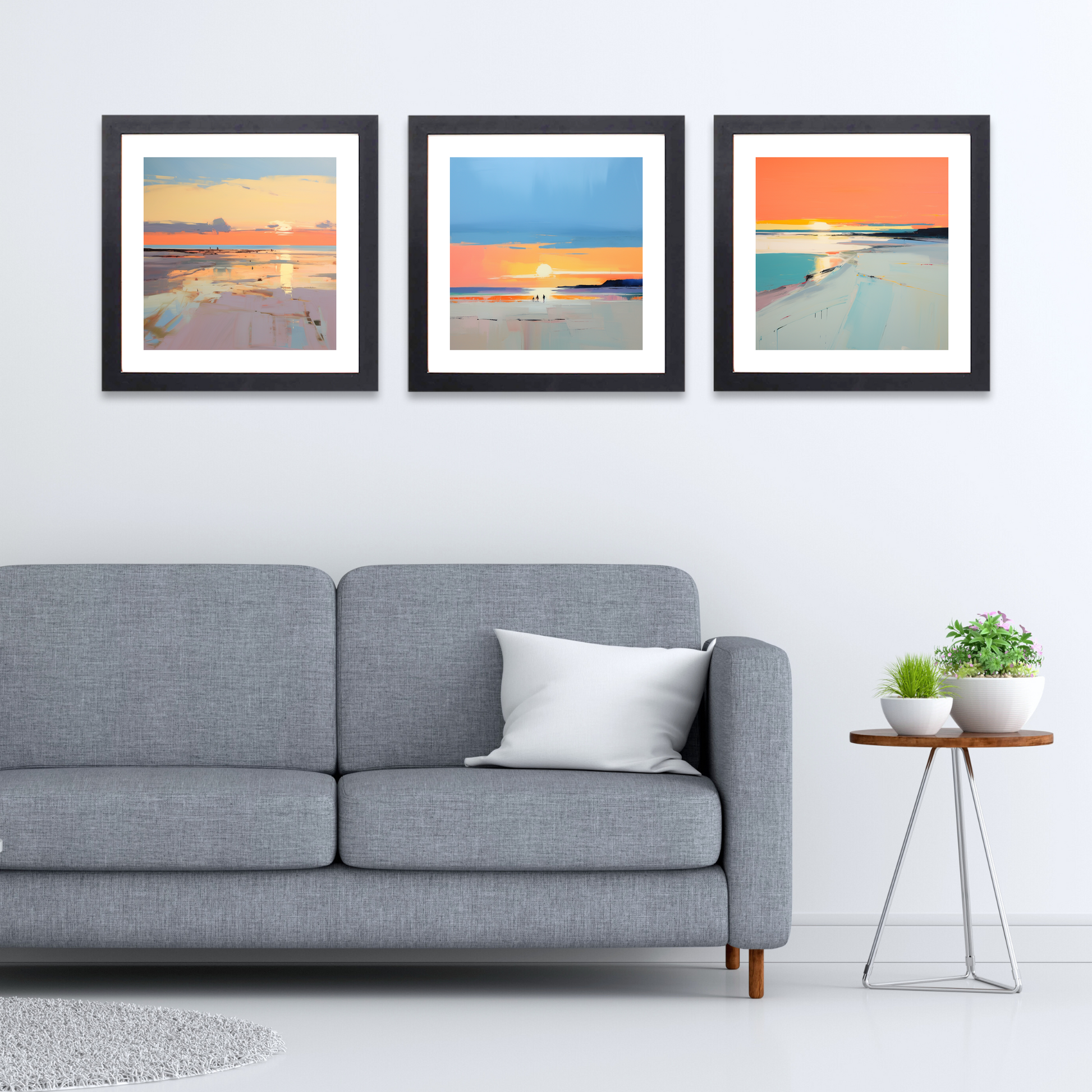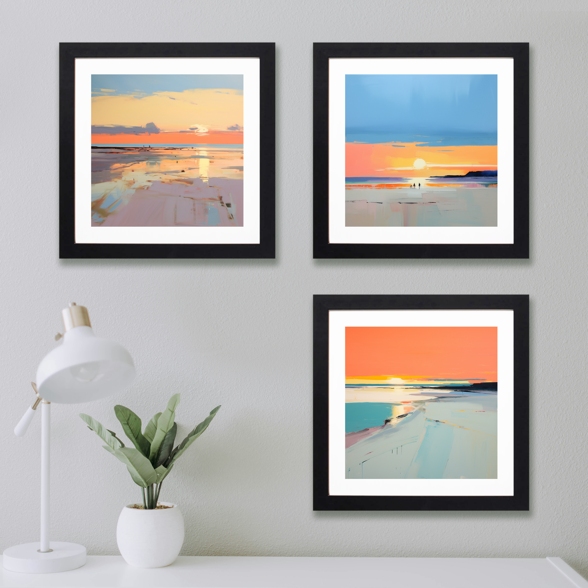 Immerse yourself in the tranquil beauty of Longniddry Beach with this exquisite set of three framed prints, part of our exclusive Scottish Beaches collection. Capturing the serene allure of a Scottish sunset, each print eloquently showcases the breathtaking interplay of colours that dance across the horizon as the day gracefully transitions into night. This stunning series embodies peace, calm, and natural splendour, inviting you to bring the enchanting Scottish coastline into your home.