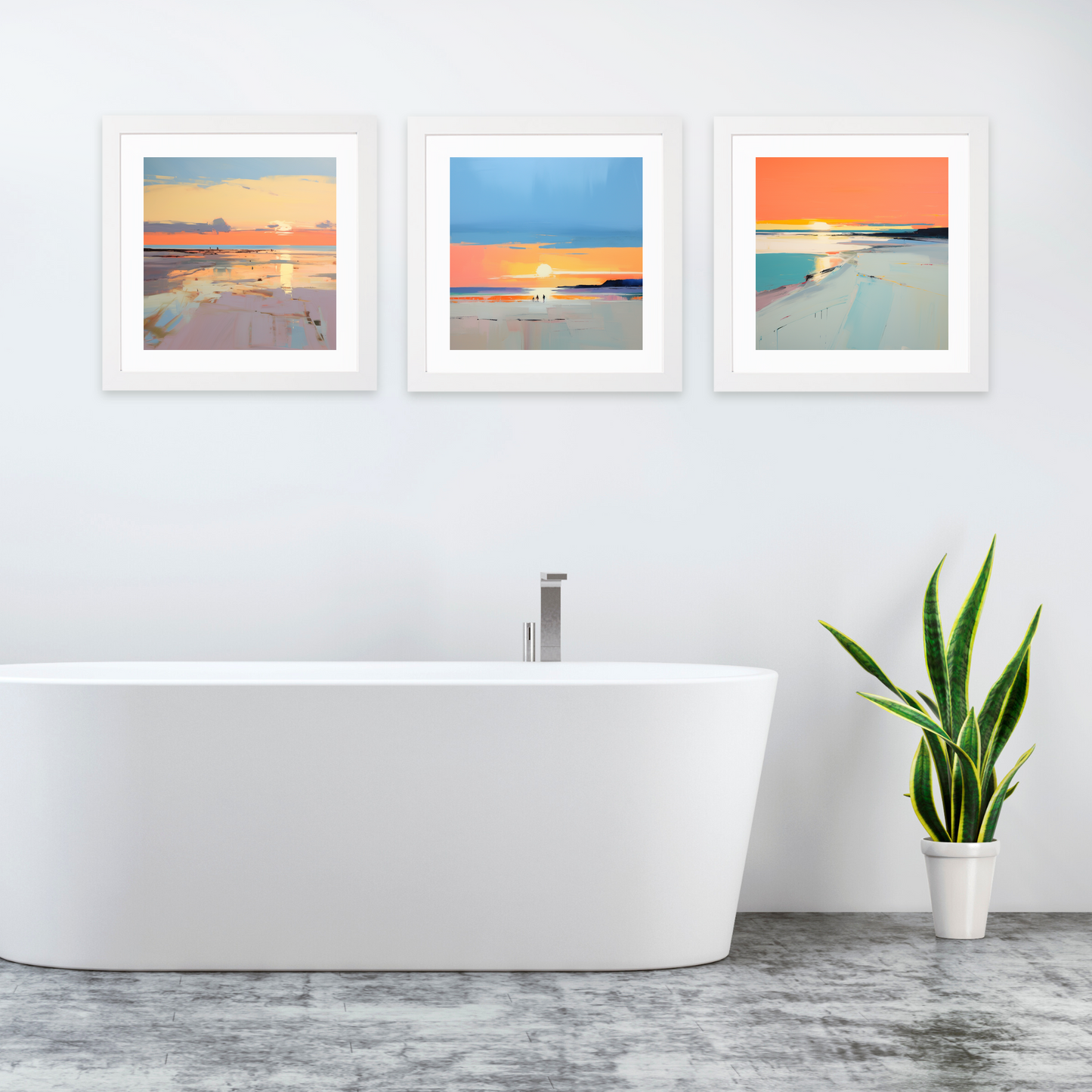 Embrace a touch of Scotland's serene coastal charm by adding this timeless set to your home. Longniddry Beach's twilight magic is now ready to illuminate your living spaces, each glance at the artwork a gentle reminder of nature's effortless elegance.