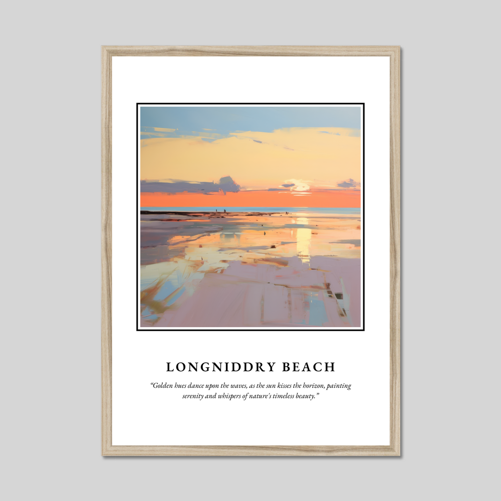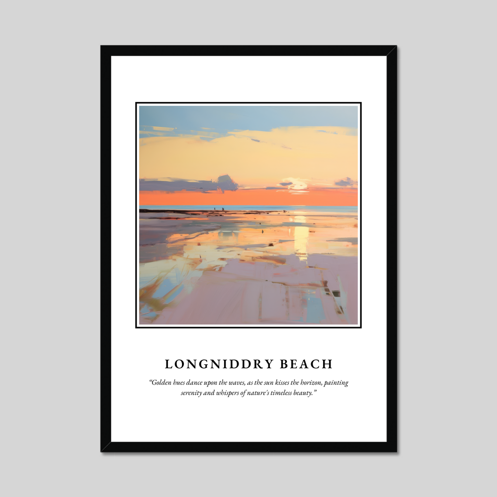 Longniddry Beach, located on the spectacular East Lothian coastline, offers a blend of unspoilt natural beauty and peaceful isolation. Famed for its stunning sunsets and long, sandy stretches, it serves as a perfect retreat for nature lovers and adventurers alike. Whether you've strolled along its shores or dreamt of its gentle waves, the artwork captures the intimate dance of light and water that has drawn visitors for generations.