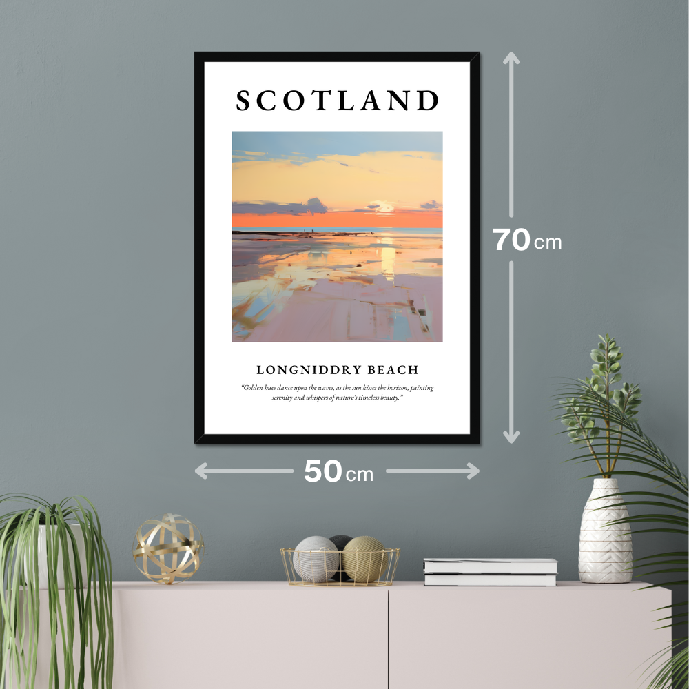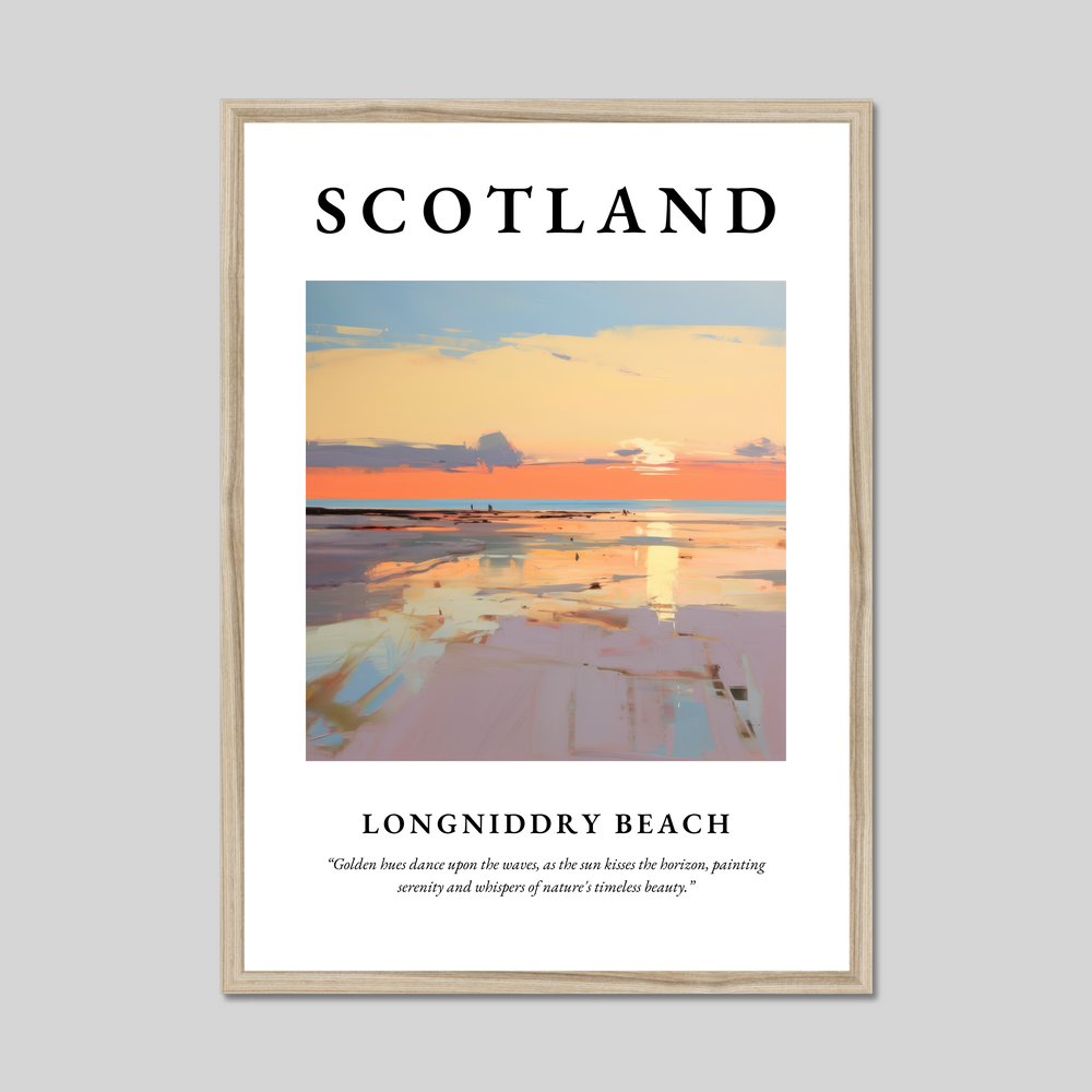 Transform your space with a touch of Scotland’s captivating beauty through our stunning framed poster print, where art meets the serene landscape of Longniddry Beach. Measuring a generous 50cm x 70cm, this large wall piece is an affordable way to fill your room with elegance and inspiration. Choose from three stylish frames—classic black, crisp white, or a natural wood-effect that complements any decor style, showcasing the contemporary artwork within.