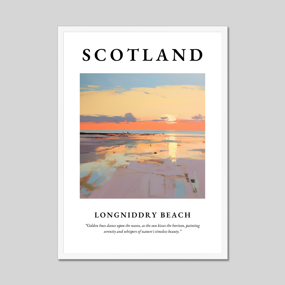 Our poster is not merely a depiction but an invitation—a call to immerse in the tranquil charm of Longniddry Beach, to relish its golden hues and embrace the whispers of its timeless allure. Ideal for art enthusiasts, those with a love for contemporary style, or anyone with cherished ties to Scotland, this piece promises to bring a slice of Scottish paradise into your home.