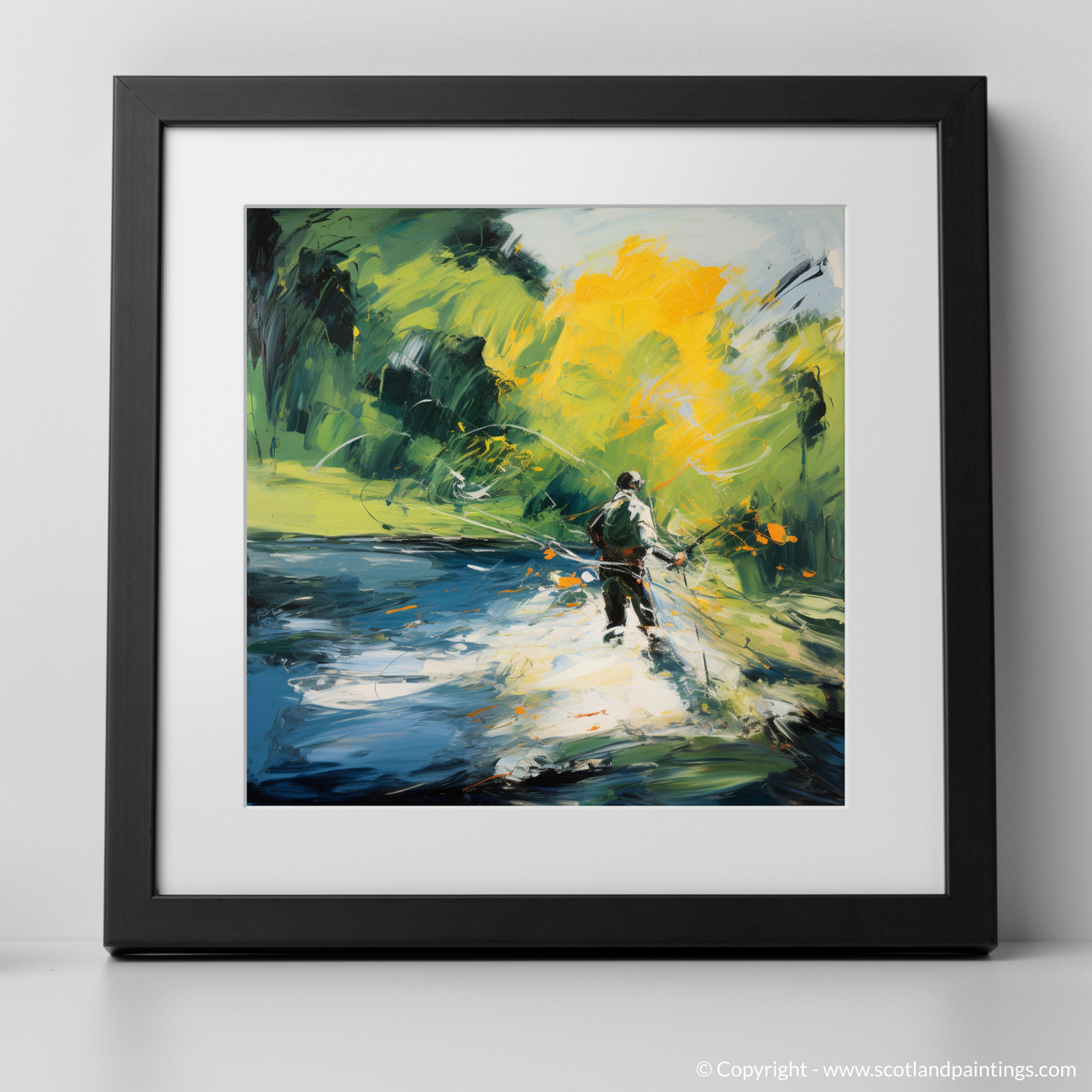 This print unites the spontaneity of Abstract Expressionism with the serene majesty of Scotland's outdoors, embodying the spirit of tranquility and the thrilling rush of the catch. It is a sensory feast, offering a window to a secluded moment where man and nature converse in silent understanding. Ideal for connoisseurs of fine art and lovers of nature, this piece radiates the elusive essence of a serene Scottish escape, encapsulated within the vibrant echoes of expressive paint strokes.