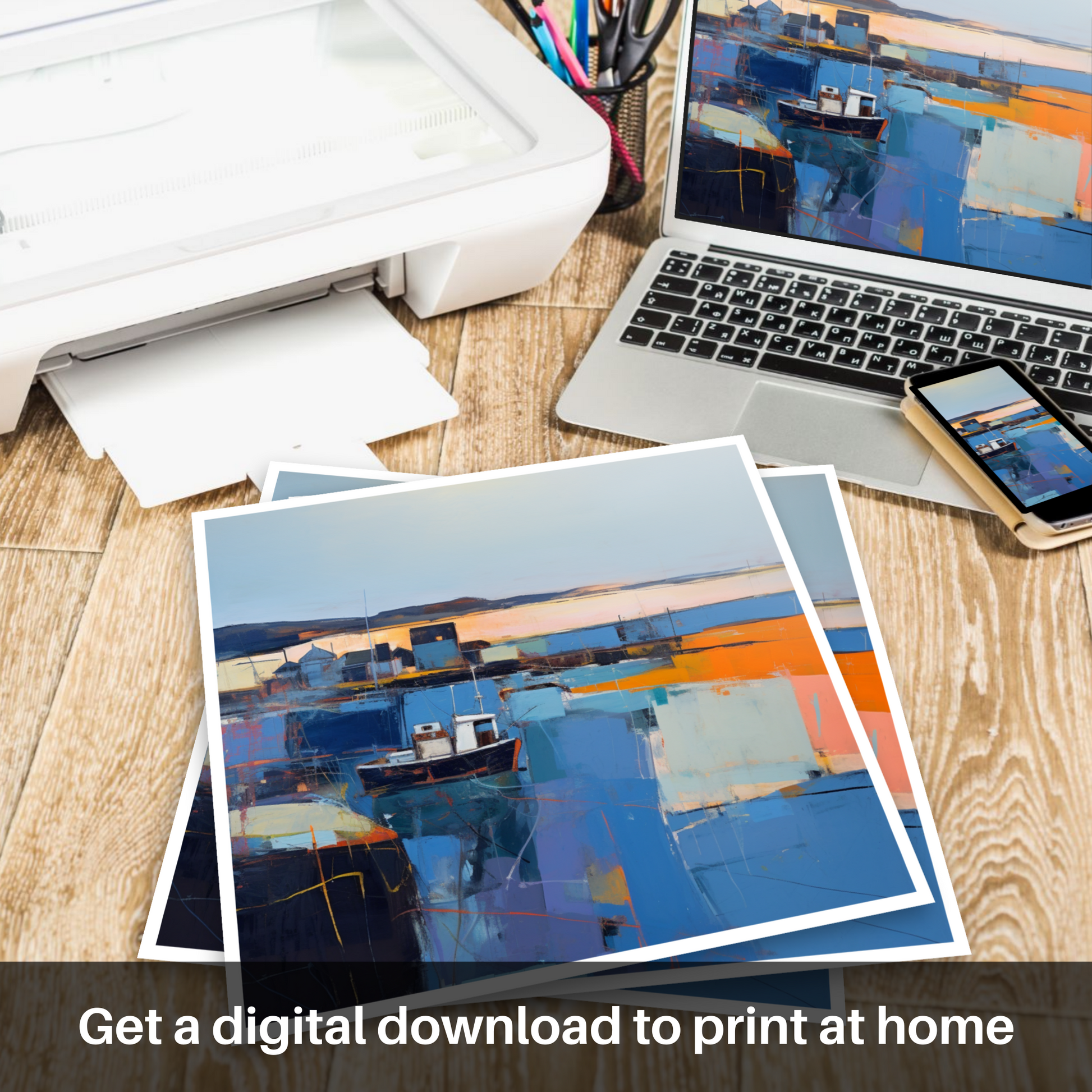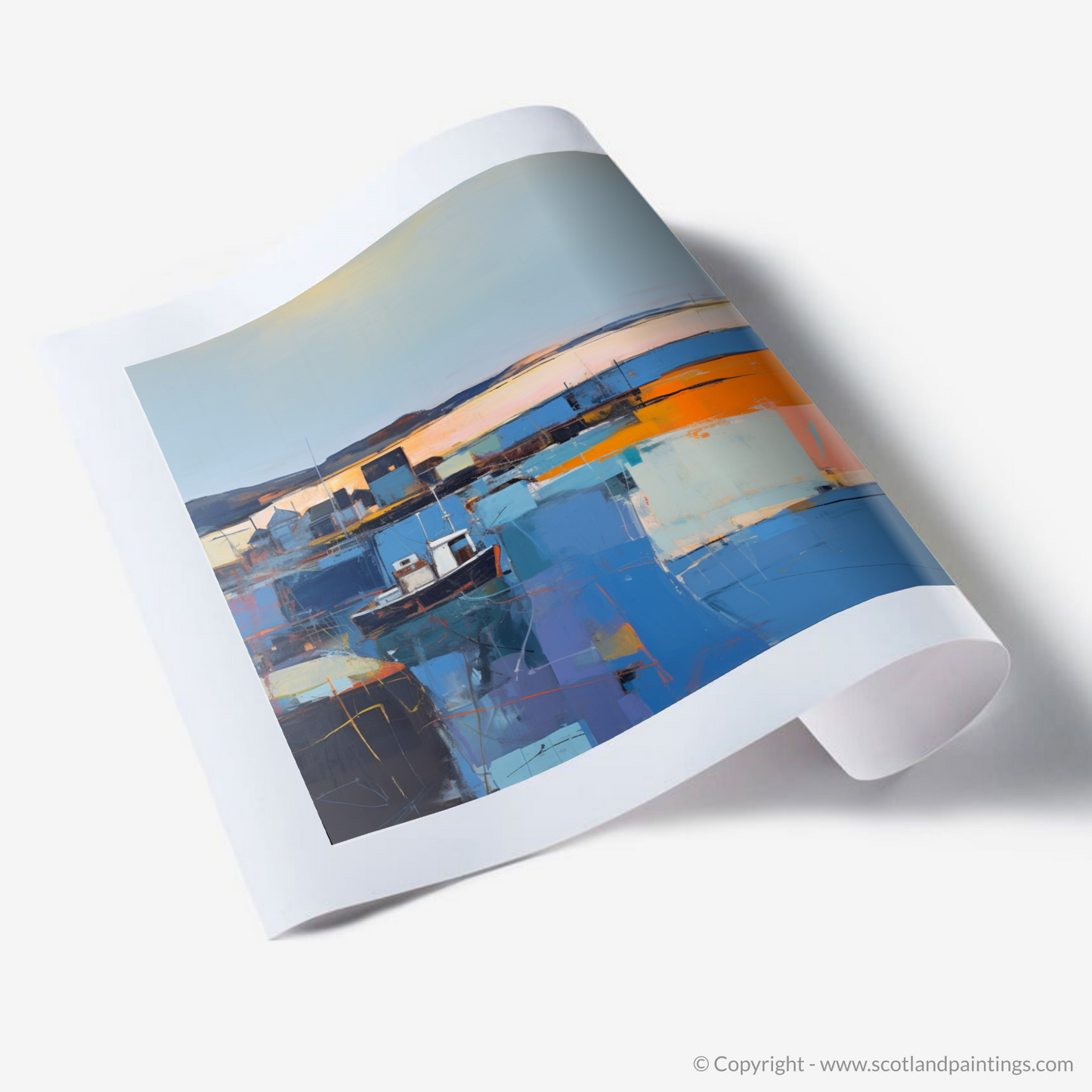 This stunning print, a part of the 'Scottish Harbours' collection, brings a modern and emotive perspective to any space, allowing viewers to ponder the timeless allure of Scotland's coastal heritage fused with the artistic spirit of abstraction. Displaying this piece on your wall is not just about adding artistic flair, but also about carrying a piece of Scotland's evocative landscape into your home.