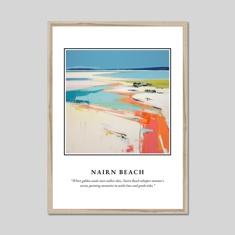 The serenity of the painting is perfectly encapsulated in the quote below: “Where golden sands meet endless skies, Nairn Beach whispers summer's secrets, painting memories in sunlit hues and gentle tides.” This poster is part of our "Scotland in Summer" collection, offering an ideal keepsake for those who have cherished memories of this enchanting place or simply appreciate fine art.