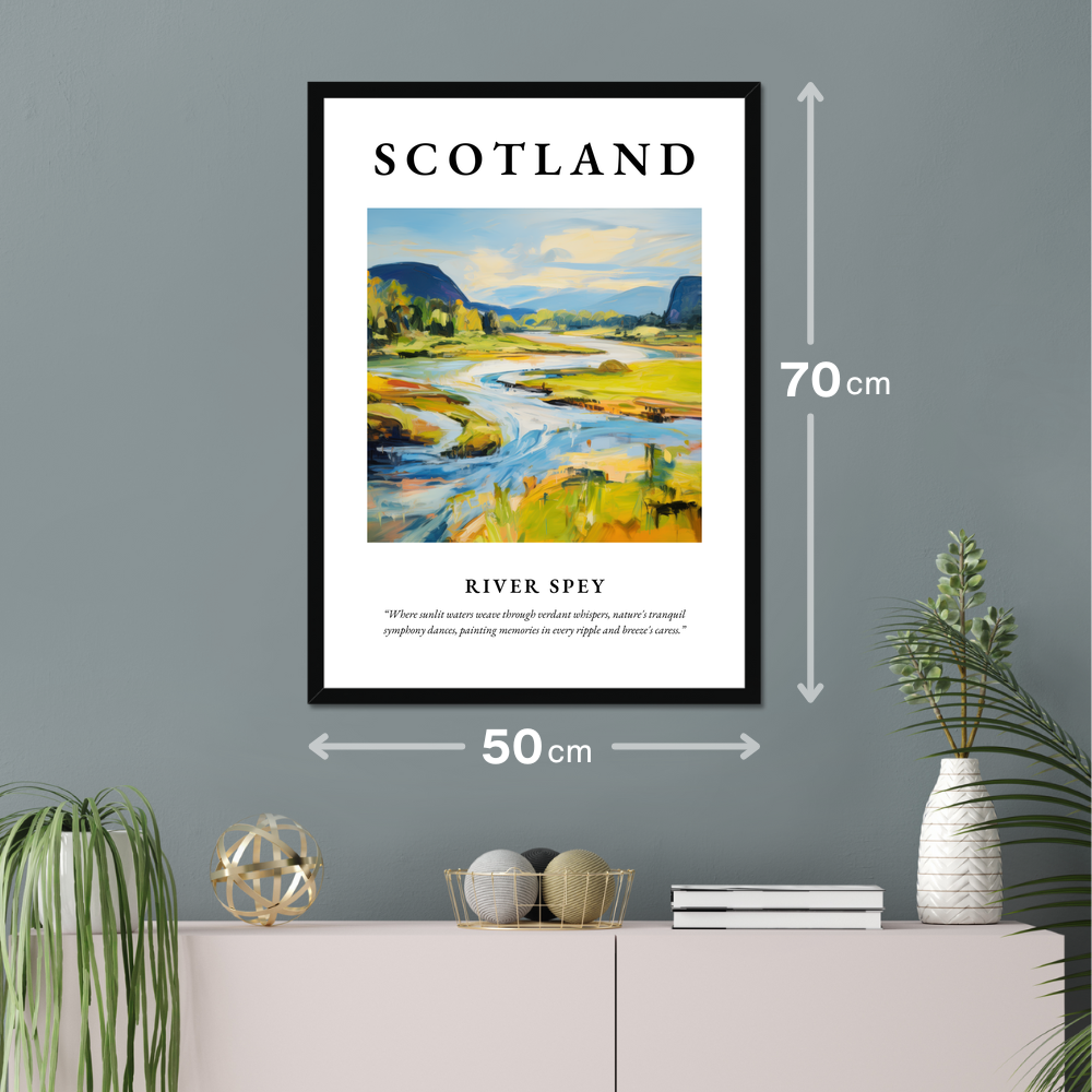 Indulge your senses with our exquisite framed poster print capturing the serene beauty of the River Spey, the centrepiece of our “Scotland in Summer” collection. At an impressive 50cm x 70cm, this large-format art print gracefully covers a vast wall area, providing a striking visual impact without stretching your budget. Whether you prefer the sleek sophistication of black, the clean simplicity of white, or the rustic charm of a natural wood-effect frame, this piece will seamlessly complement any decor style.