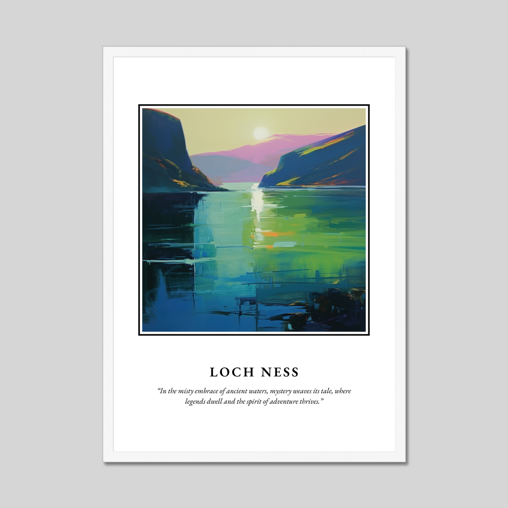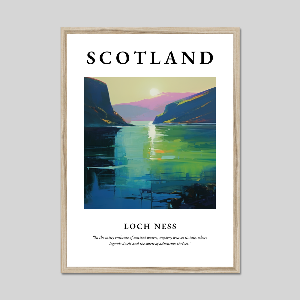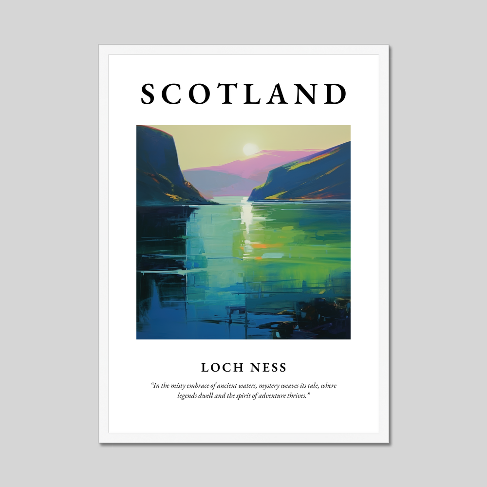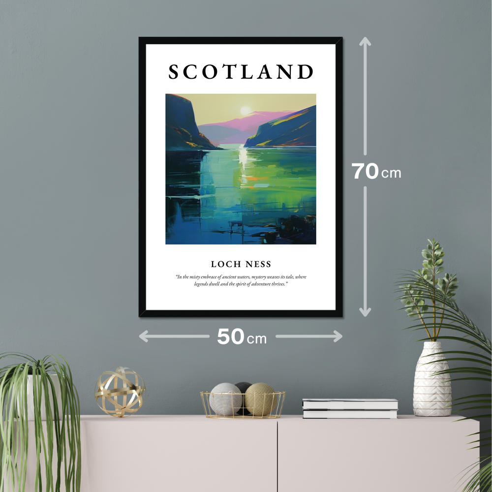 Immerse yourself in the allure of Scotland with our breathtaking framed poster print featuring the famed Loch Ness. Measuring an impressive 50cm x 70cm, this sleek, contemporary masterpiece is a perfect addition to any large wall, creating an expansive visual experience without breaking the bank. Choose from options of black, white, or natural wood-effect frames to complement your decor and let the mystique of the Highlands fill your home.