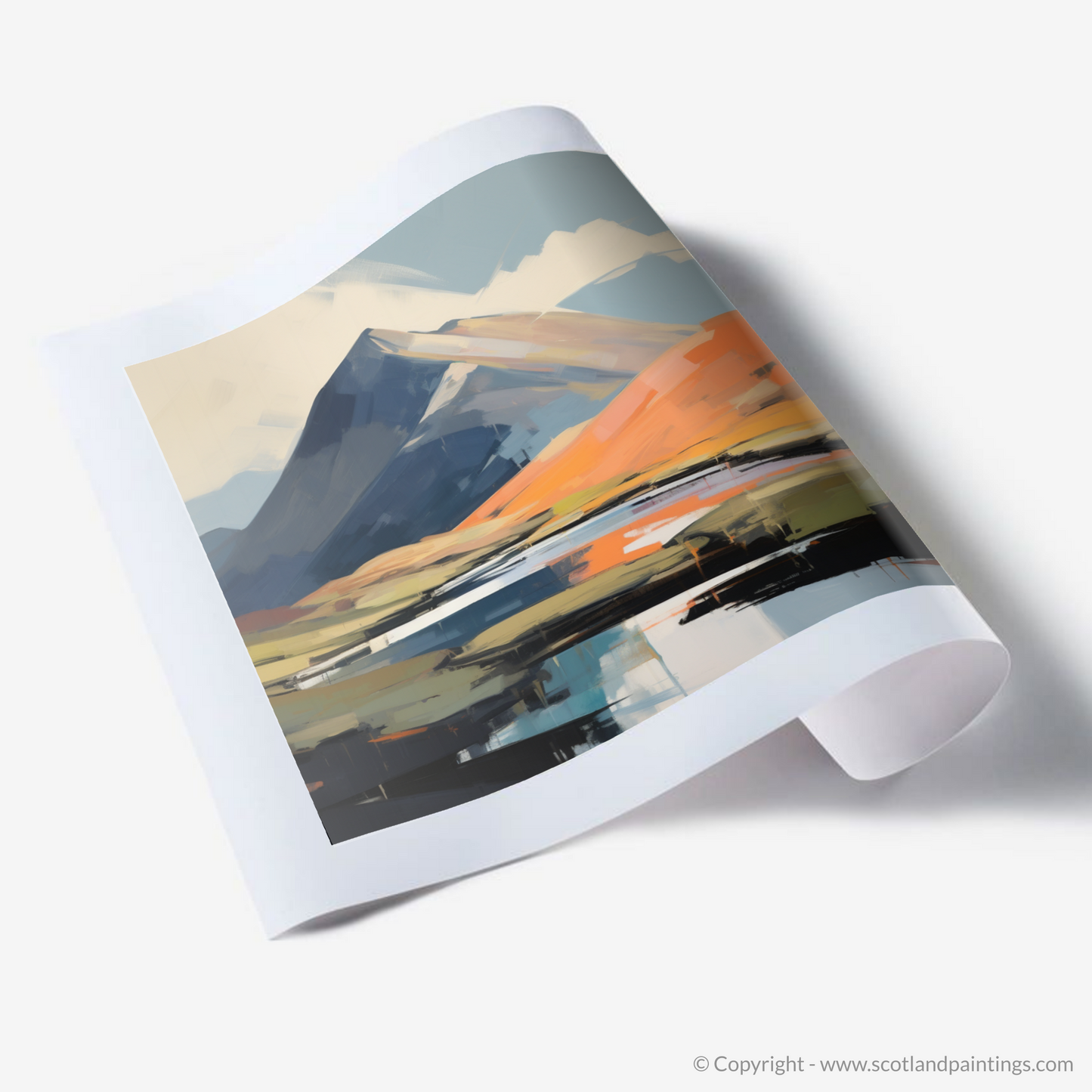 The artistry of this print lies in its ability to marry the timeless allure of the Scottish landscape with a contemporary aesthetic. Bold, confident strokes express the sheer power of nature, while the tactful use of abstraction invites the viewer's imagination to engage with the work. Whether a lover of the Highlands, a connoisseur of contemporary art, or simply in search of a captivating visual experience, this print of Beinn Narnain makes a compelling addition to any collection.
