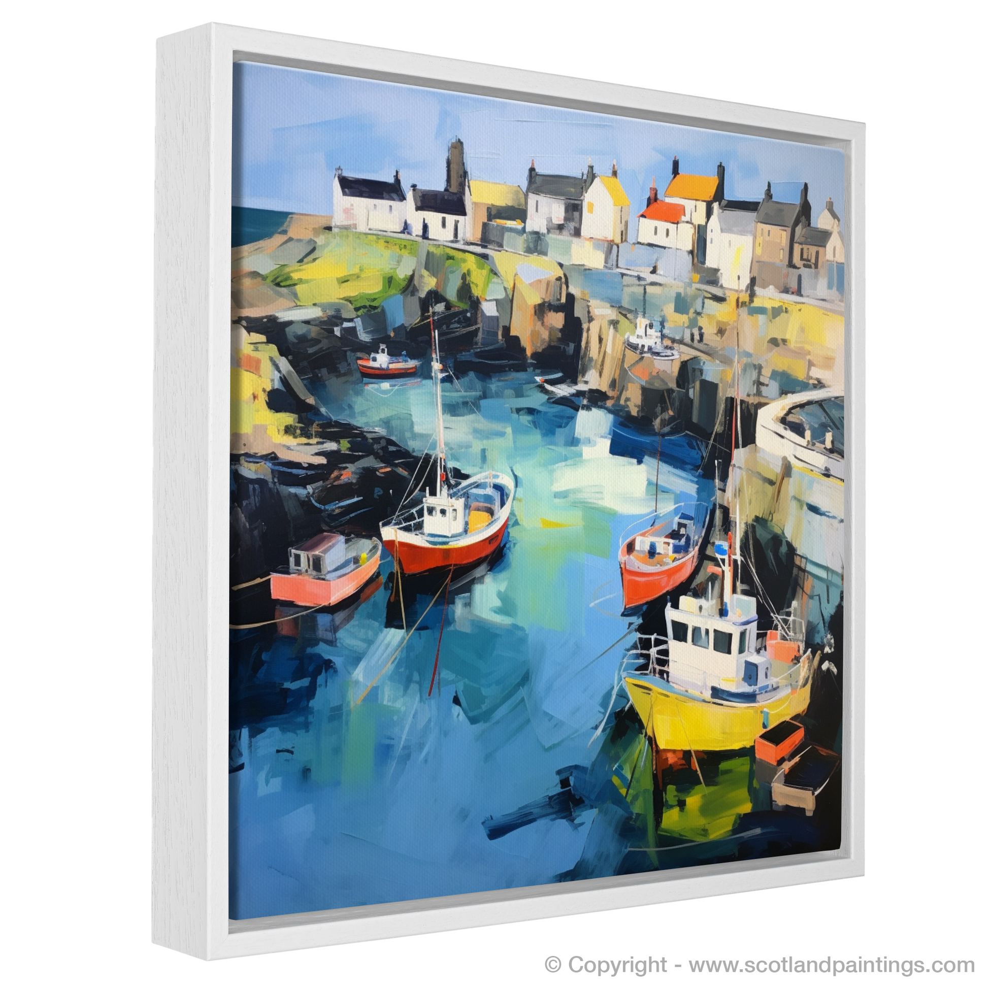 This print, nestled within our 'Scottish Harbours' collection, encapsulates the very essence of the port—a bustling nexus of maritime life, replete with the spirit of the sea. It is an artistic exploration that not only pays homage to the rich hues and dramatic contours of this coastal jewel but also evokes the raw emotions that such a lively harbour invokes. Whether it's the stillness of the early dawn or the bustling activity at noon, this piece offers a timeless narrative, one that will resonate with lovers of seascapes and abstract art alike.