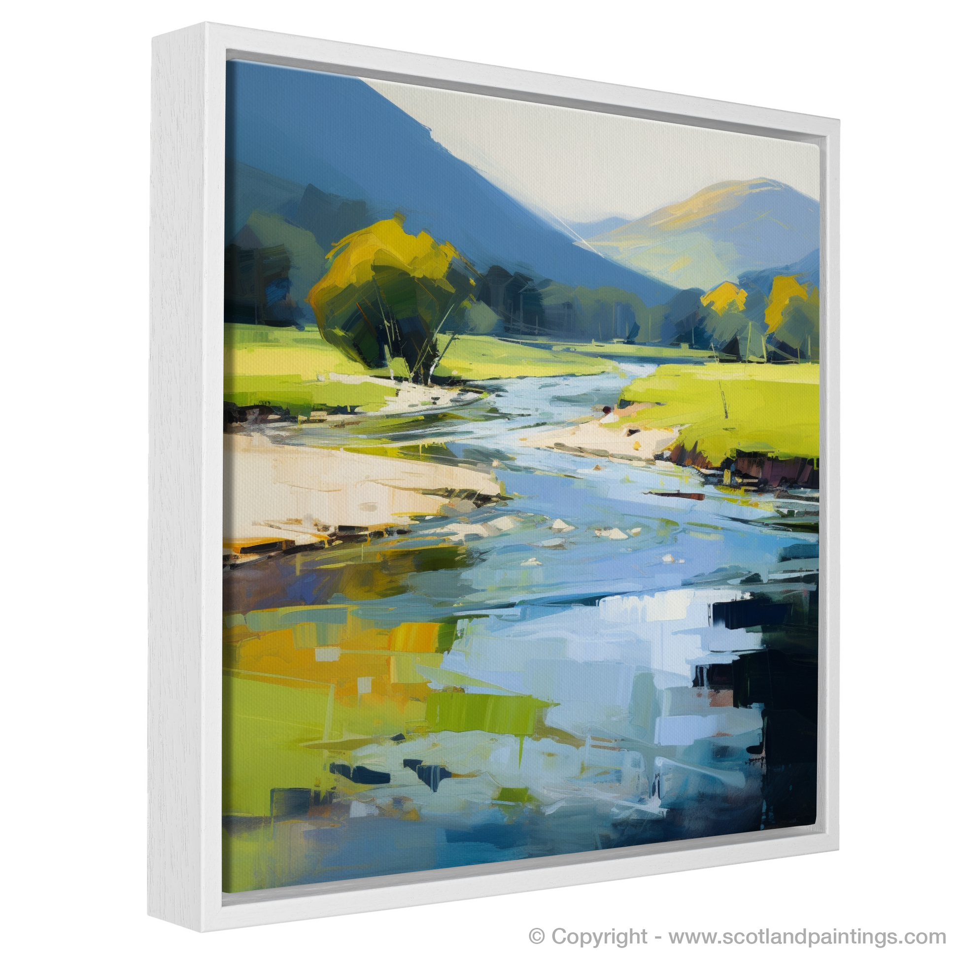 Immersed in a serene blend of luminosity and vibrance, this exquisite print captures the tranquil beauty of the River Orchy bathed in the mellow glow of a summer's day. The quintessential Scottish landscape is reimagined in a symphony of contemporary brushstrokes and a dynamic, refreshing palette, bringing to life the evergreen shadows and sun-dappled verdure of Argyll and Bute's resplendent countryside.