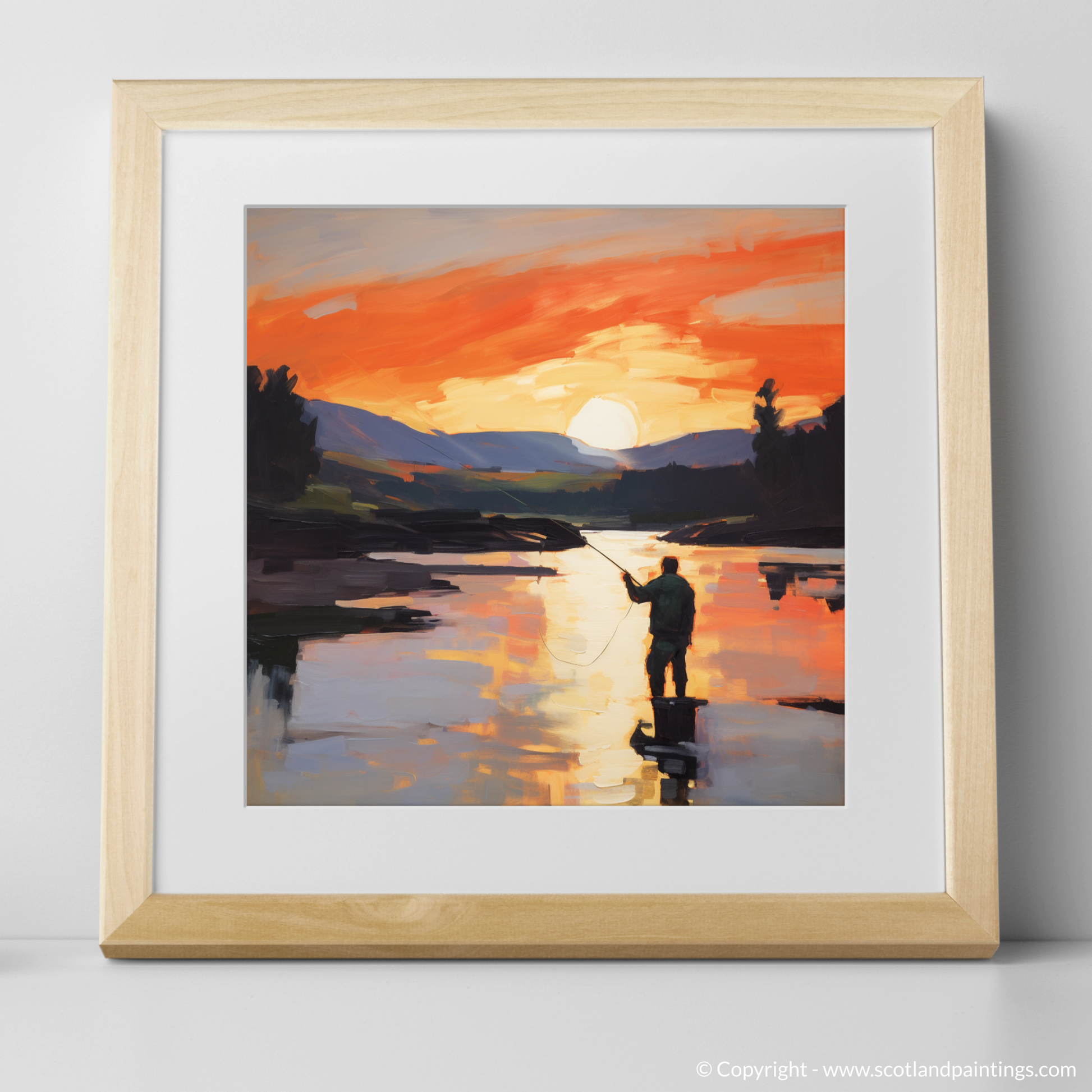 This contemporary tableau is a testament to the serene beauty of Scottish waters at dusk, offering a moment of stillness amid the ever-changing flow of the river. Notice the deliberate strokes that lend a textured feel to the water's surface, suggesting a gentle tide beneath the peaceful exterior. On the horizon, the sky and sun converge in a symphony of colour, bestowing a sense of depth and vastness that stretches well beyond the bounds of the print.