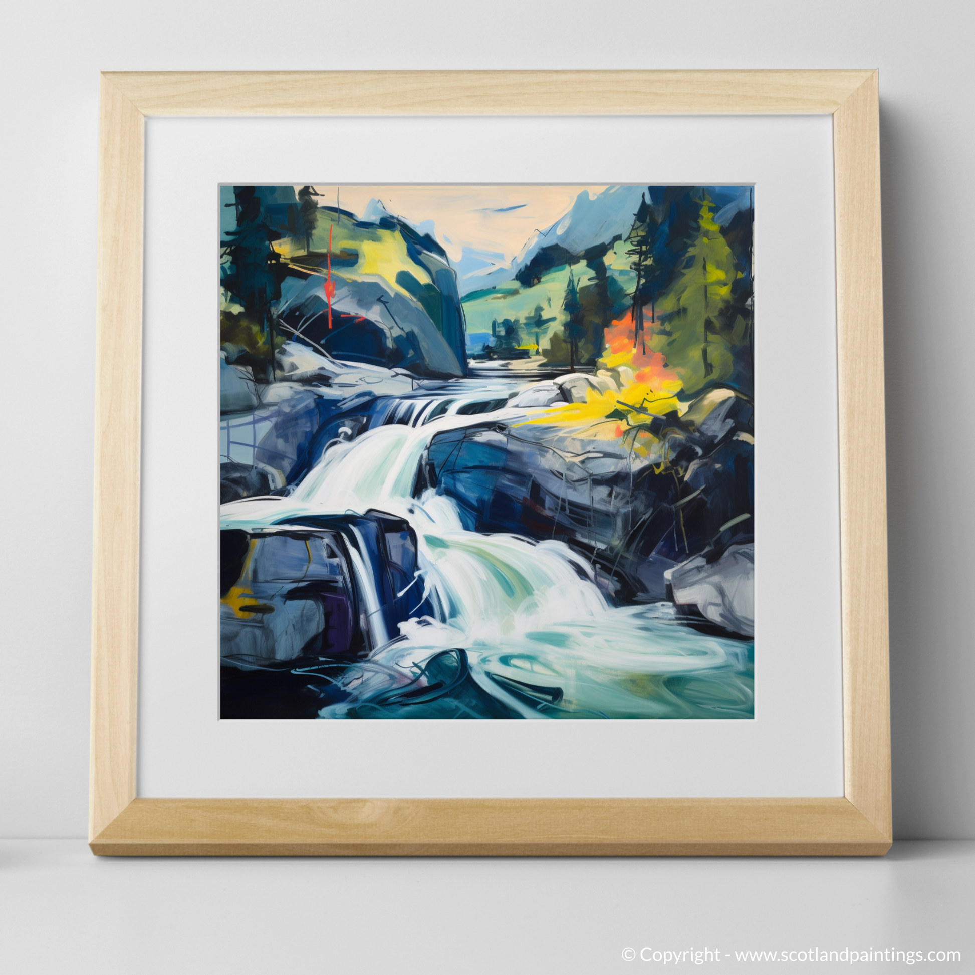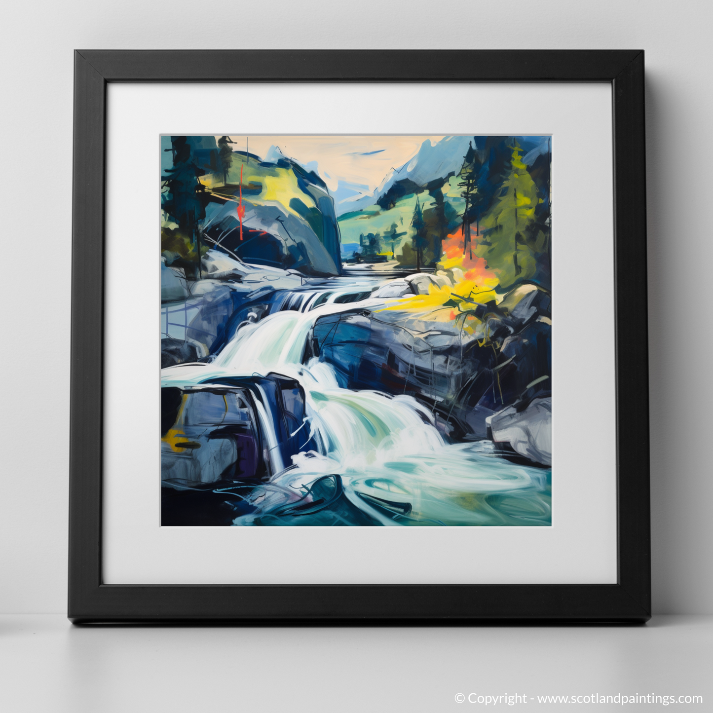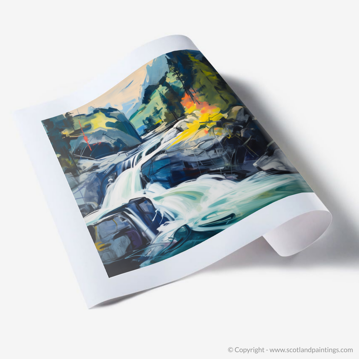 Immerse yourself in the tumultuous beauty of Scotland through this evocative depiction of the Falls of Dochart. This striking piece harnesses the essence of Abstract Expressionism, demonstrating a masterful interplay of form, colour, and motion. The print invites viewers to experience the wild splendour of Scottish Waterfalls, as it captures the vigor and vivacity of tumbling waters crashing over rugged rocks.